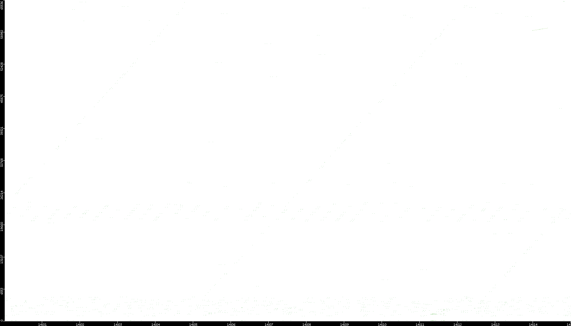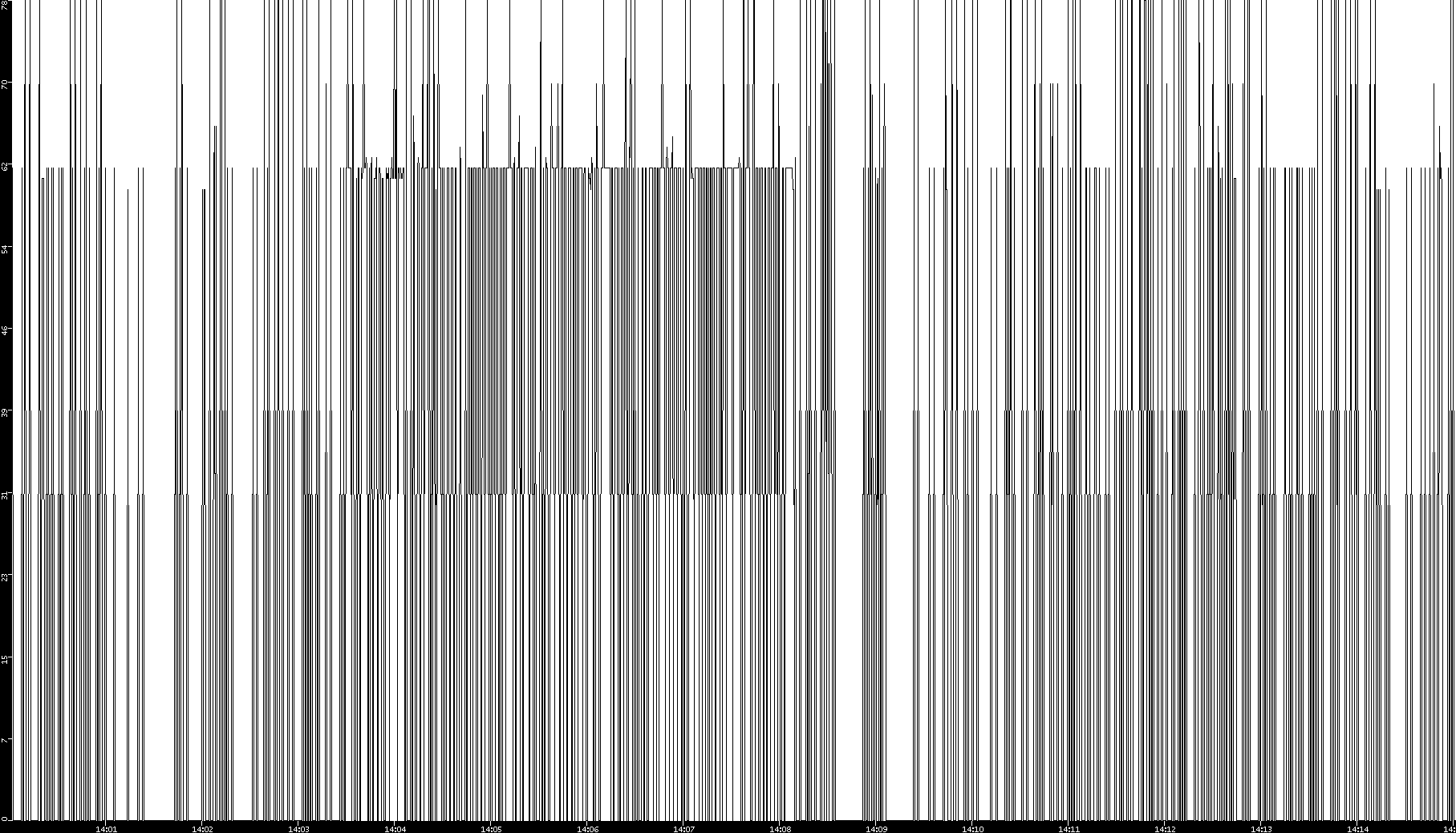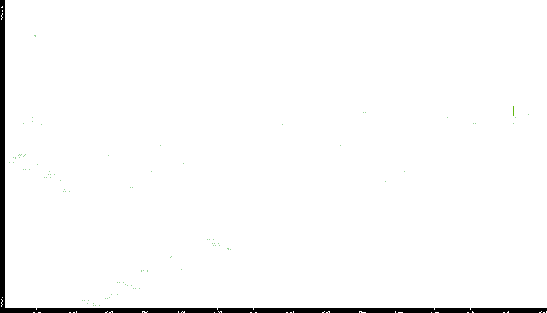 2008/11/16 Dest. IP vs. Time Dest. Port vs. Time Src. IP vs. Time Src. Port vs. Time Nb. of Packets vs. Time Throughput vs. Time Average Packet Size vs. Time Entropy of Port vs. Time