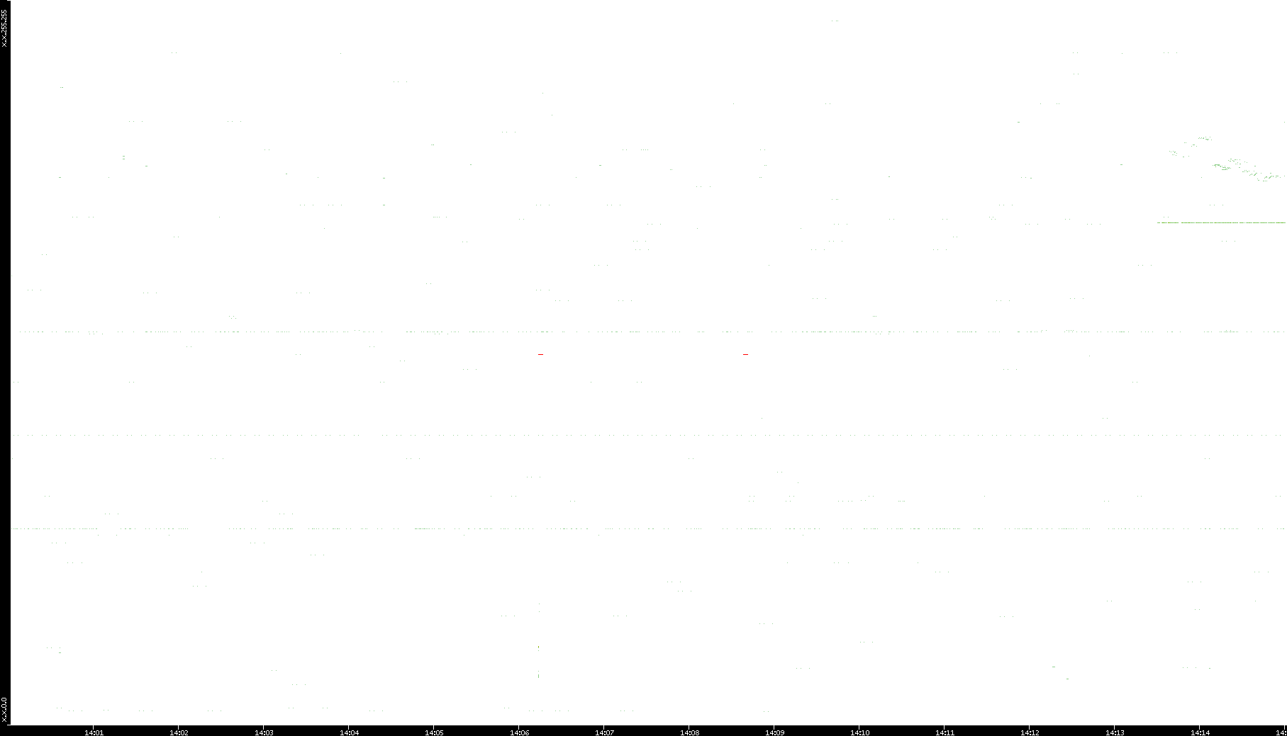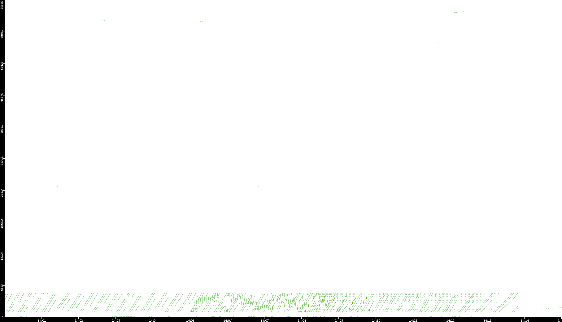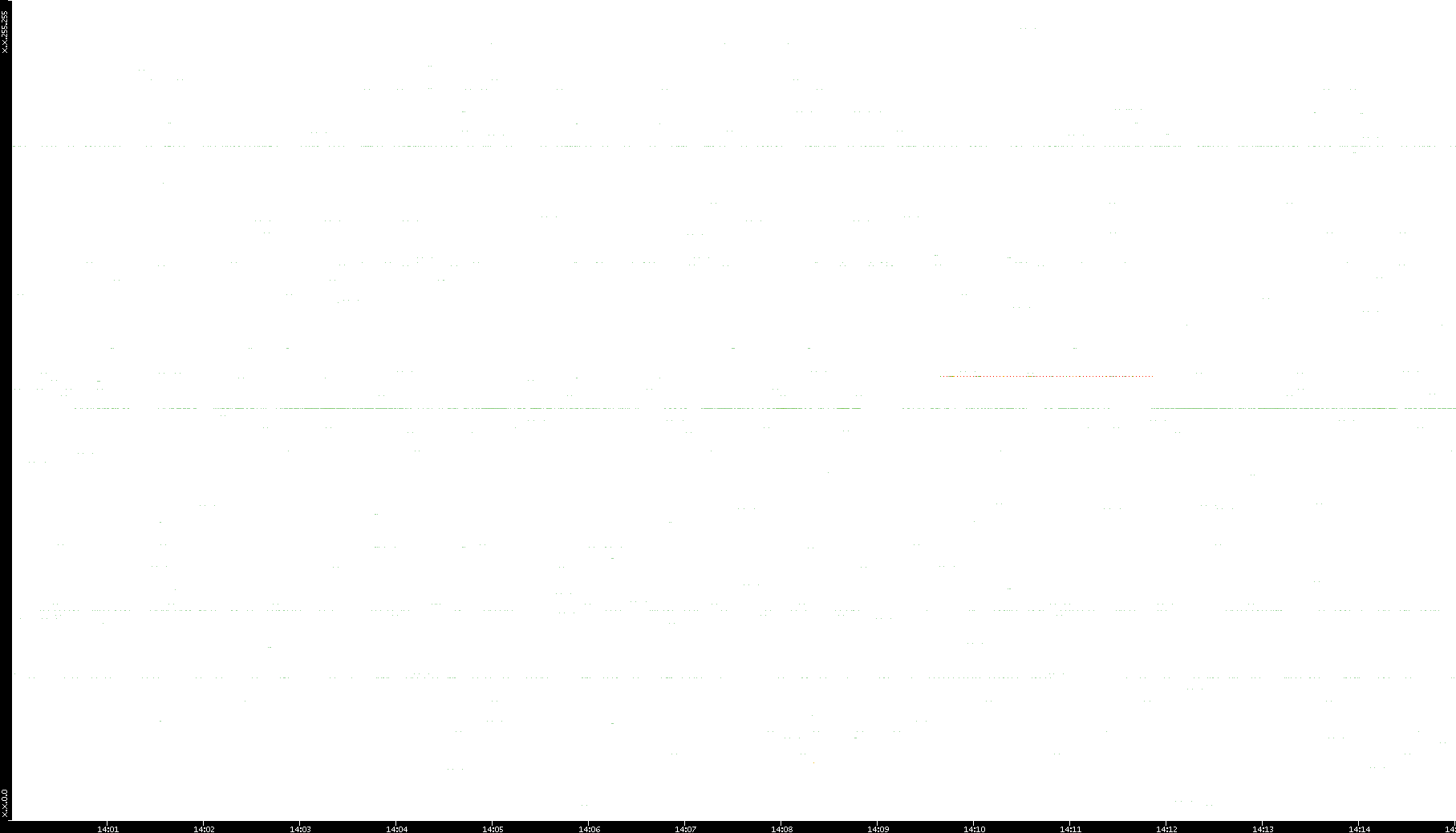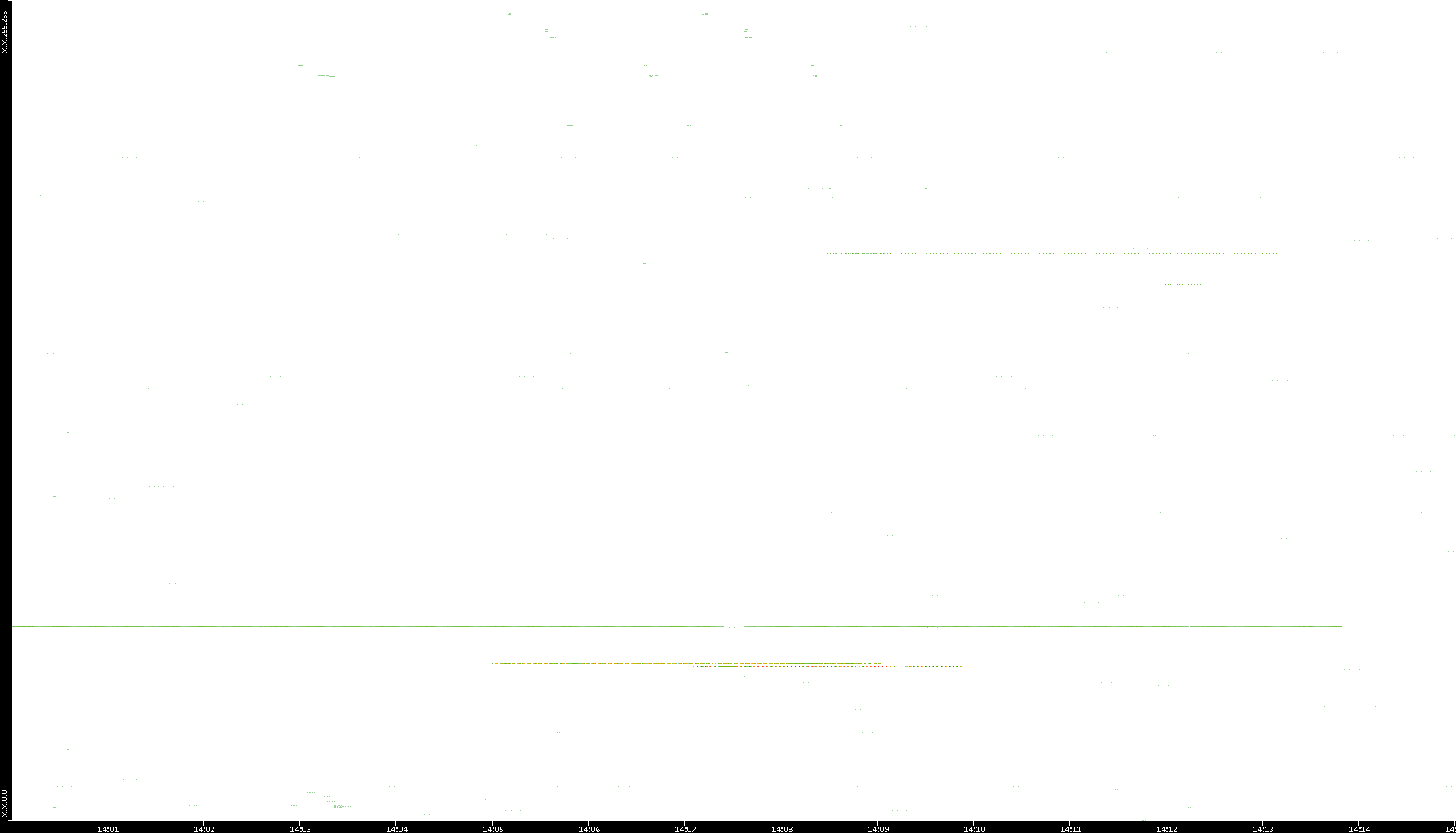 2008/11/13 Dest. IP vs. Time Dest. Port vs. Time Src. IP vs. Time Src. Port vs. Time Nb. of Packets vs. Time Throughput vs. Time Average Packet Size vs. Time Entropy of Port vs. Time