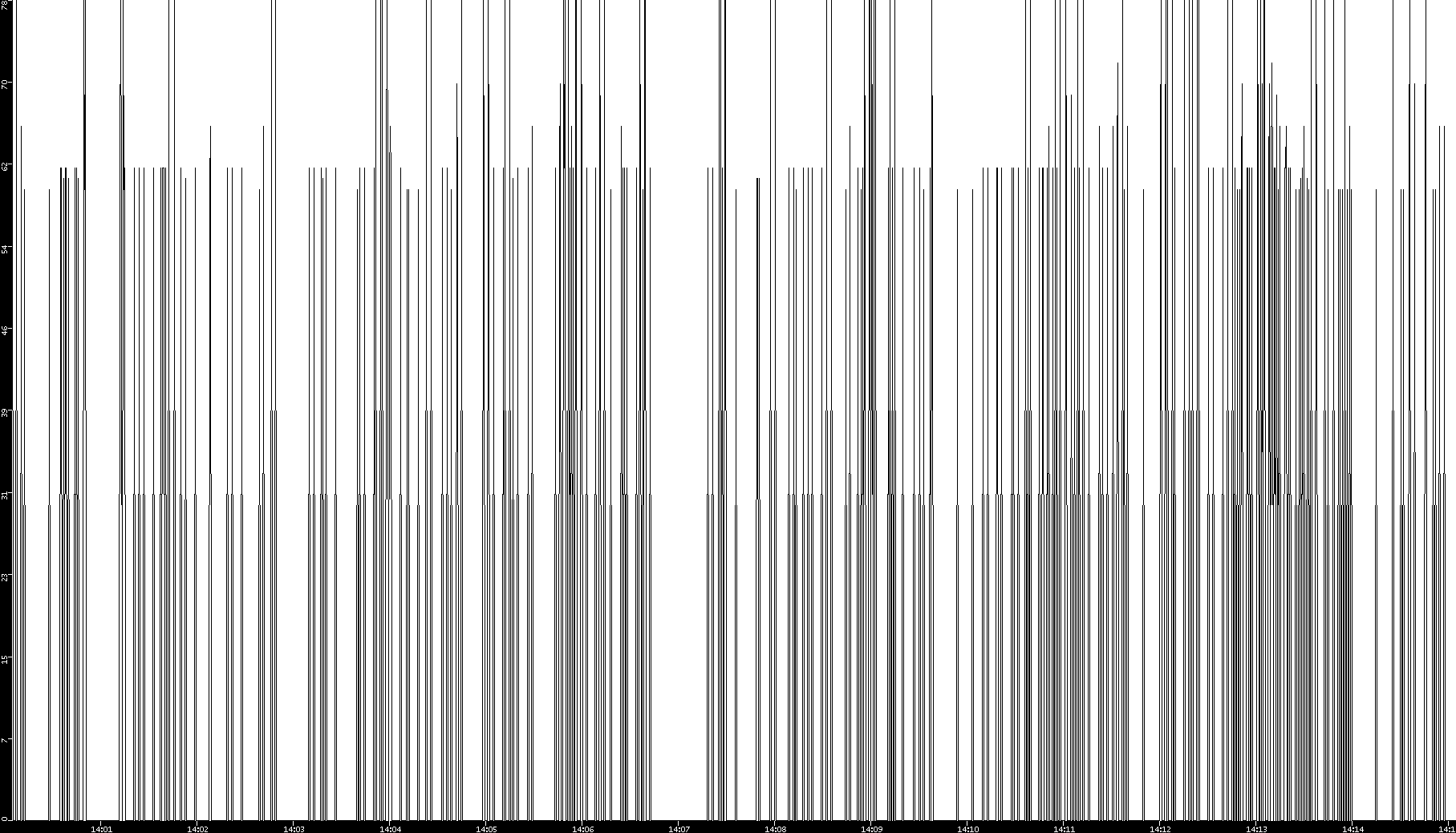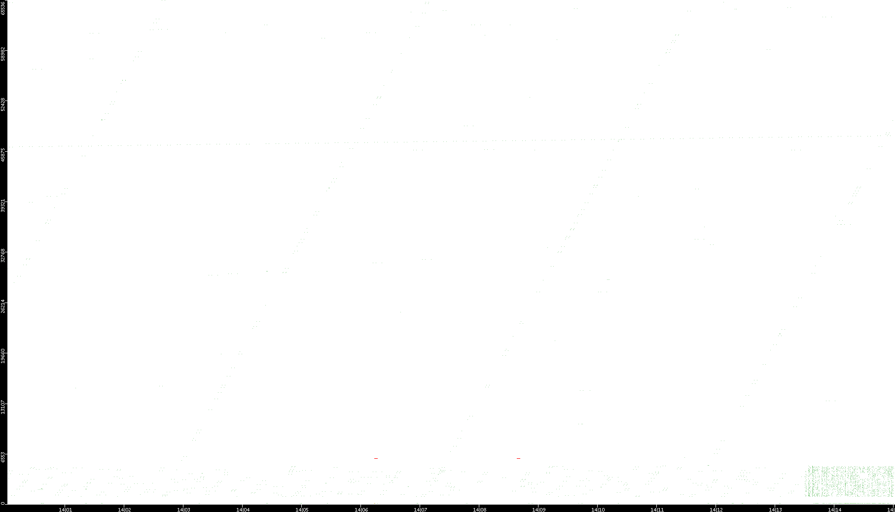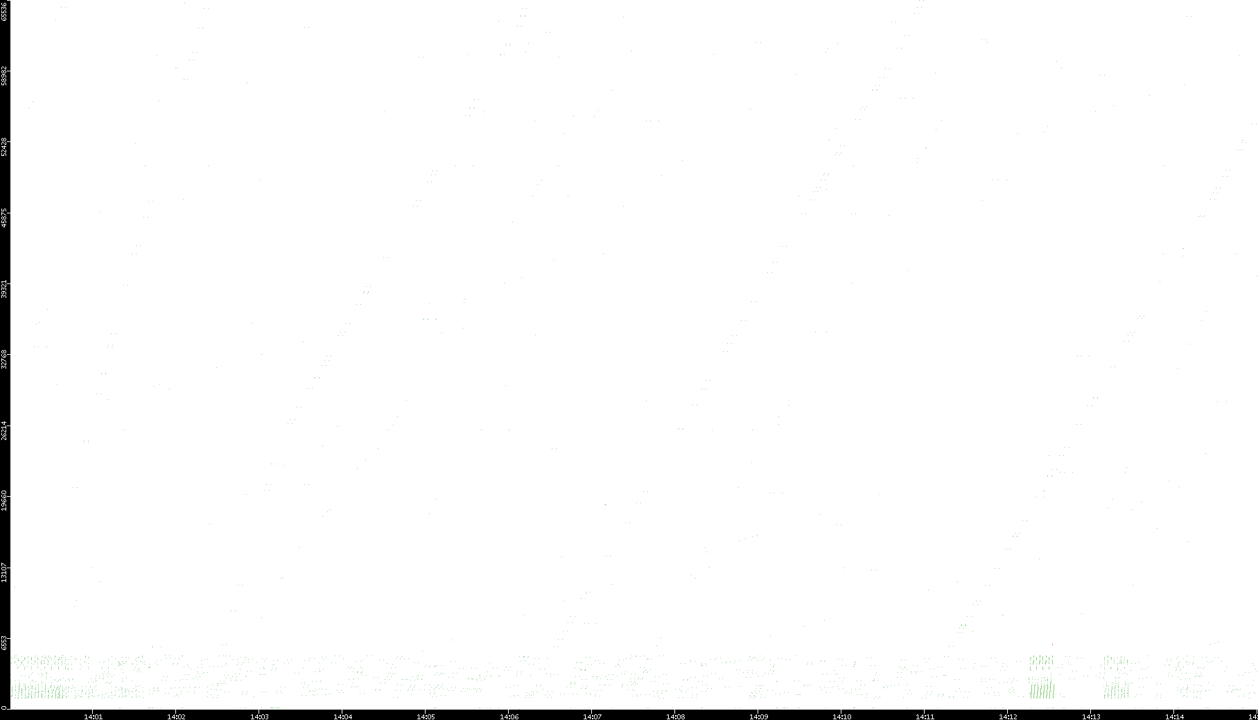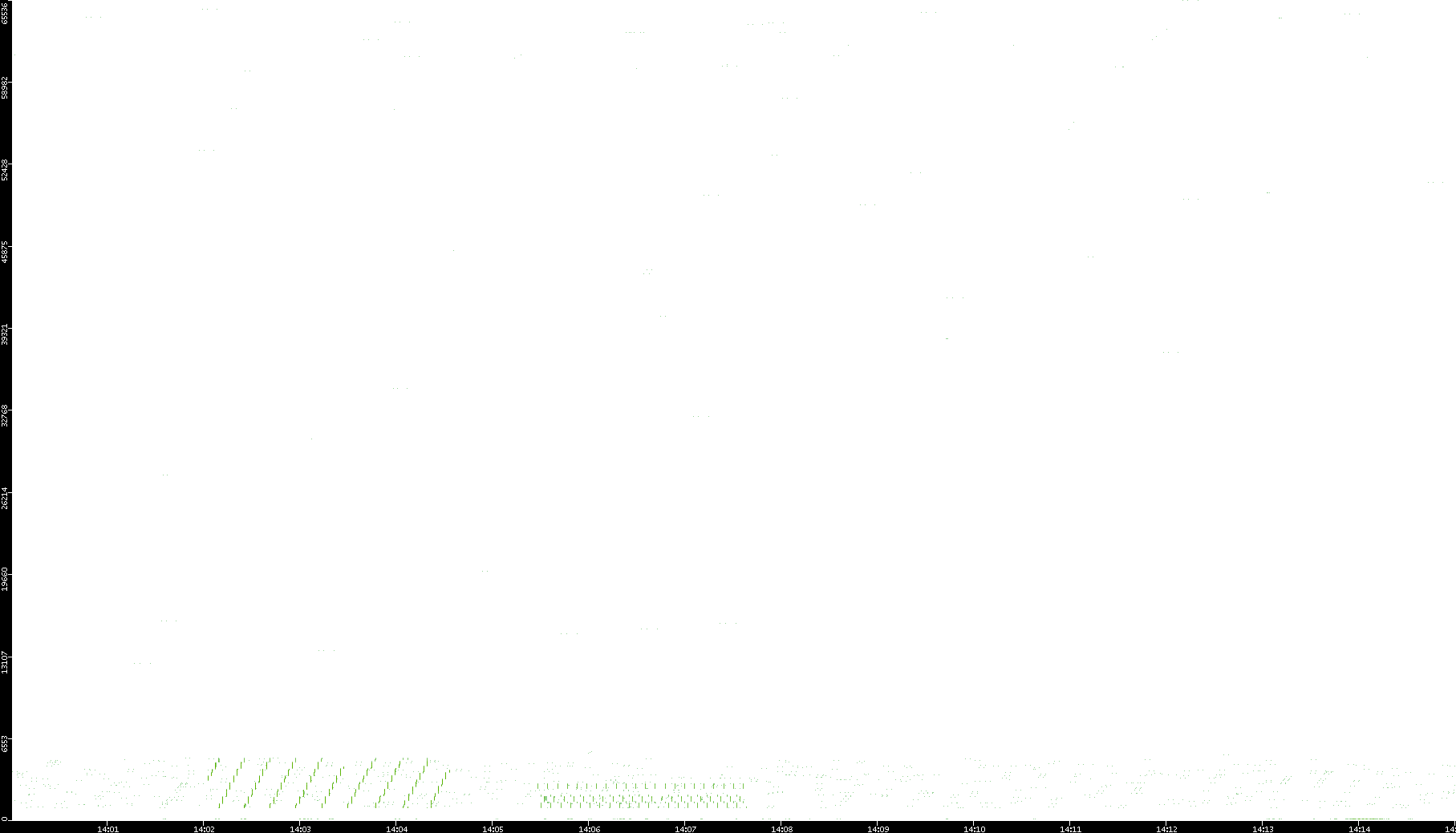 2008/11/13 Dest. IP vs. Time Dest. Port vs. Time Src. IP vs. Time Src. Port vs. Time Nb. of Packets vs. Time Throughput vs. Time Average Packet Size vs. Time Entropy of Port vs. Time