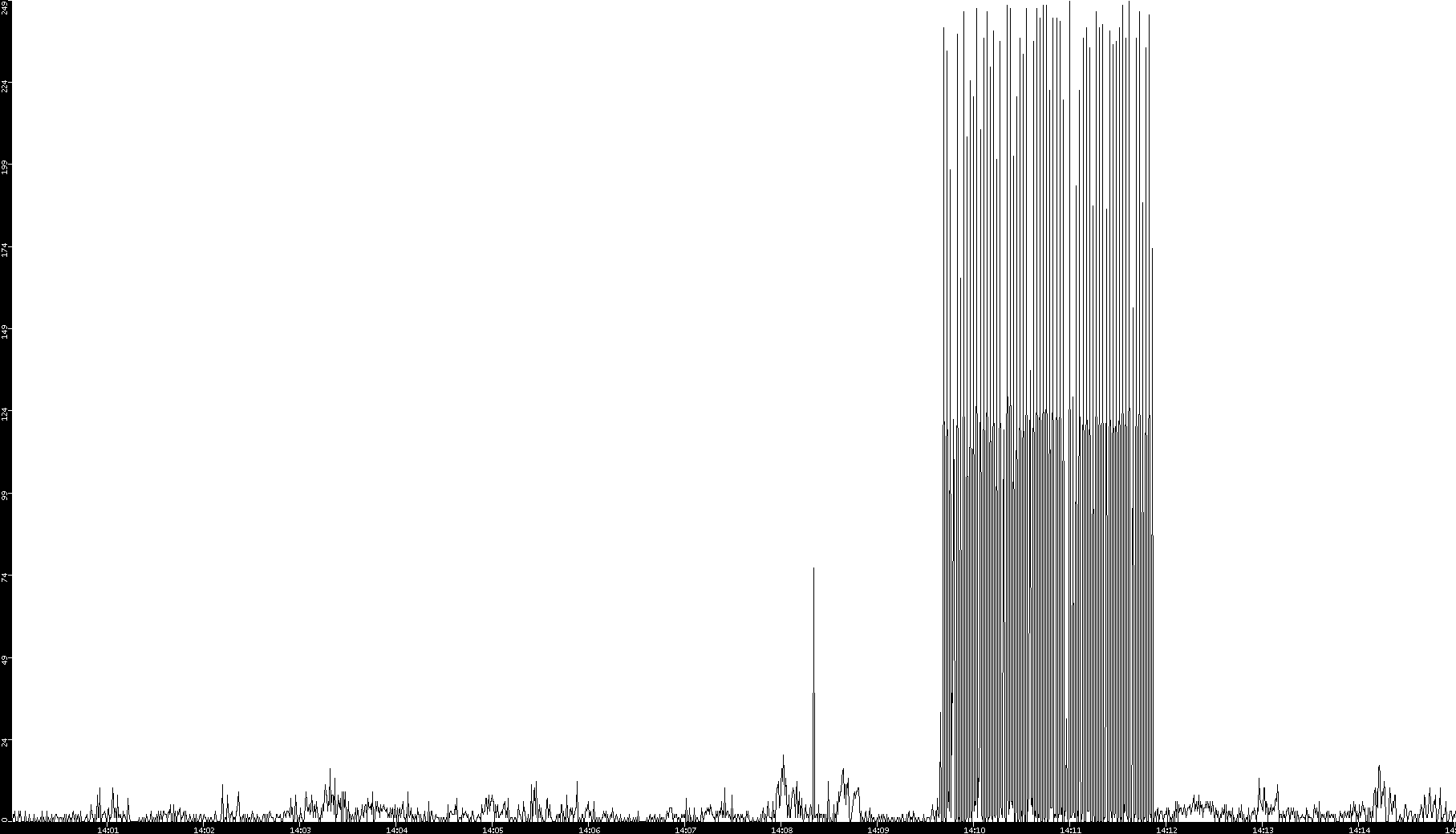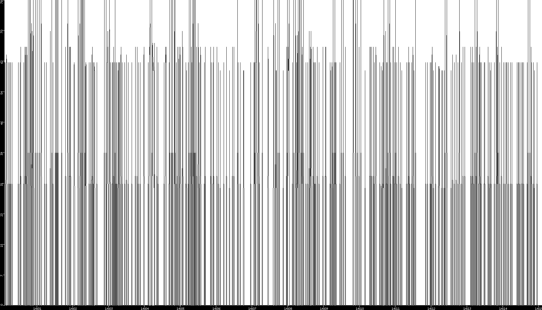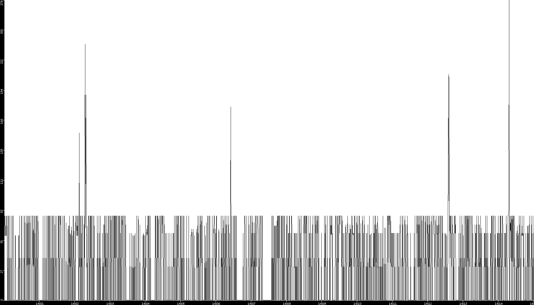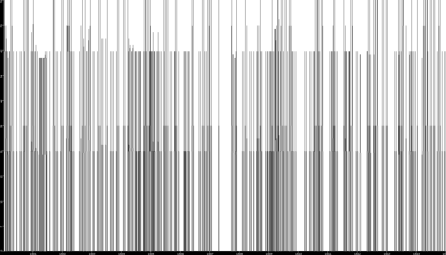 2008/11/13 Dest. IP vs. Time Dest. Port vs. Time Src. IP vs. Time Src. Port vs. Time Nb. of Packets vs. Time Throughput vs. Time Average Packet Size vs. Time Entropy of Port vs. Time