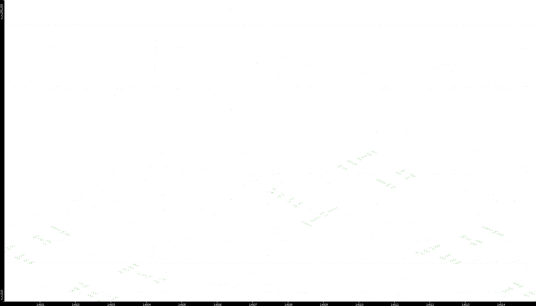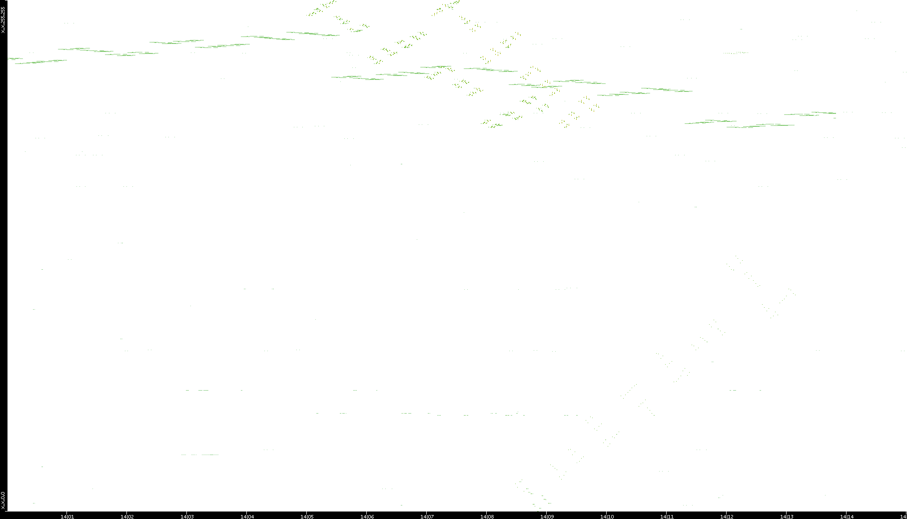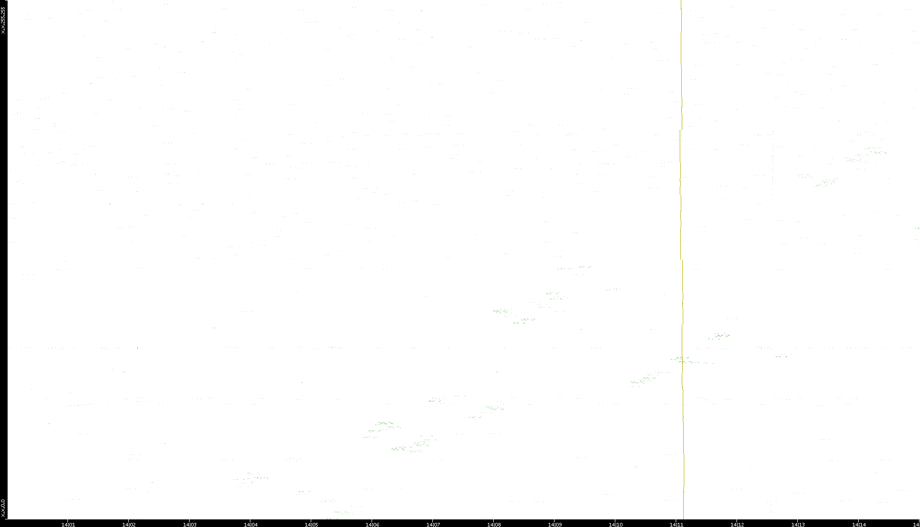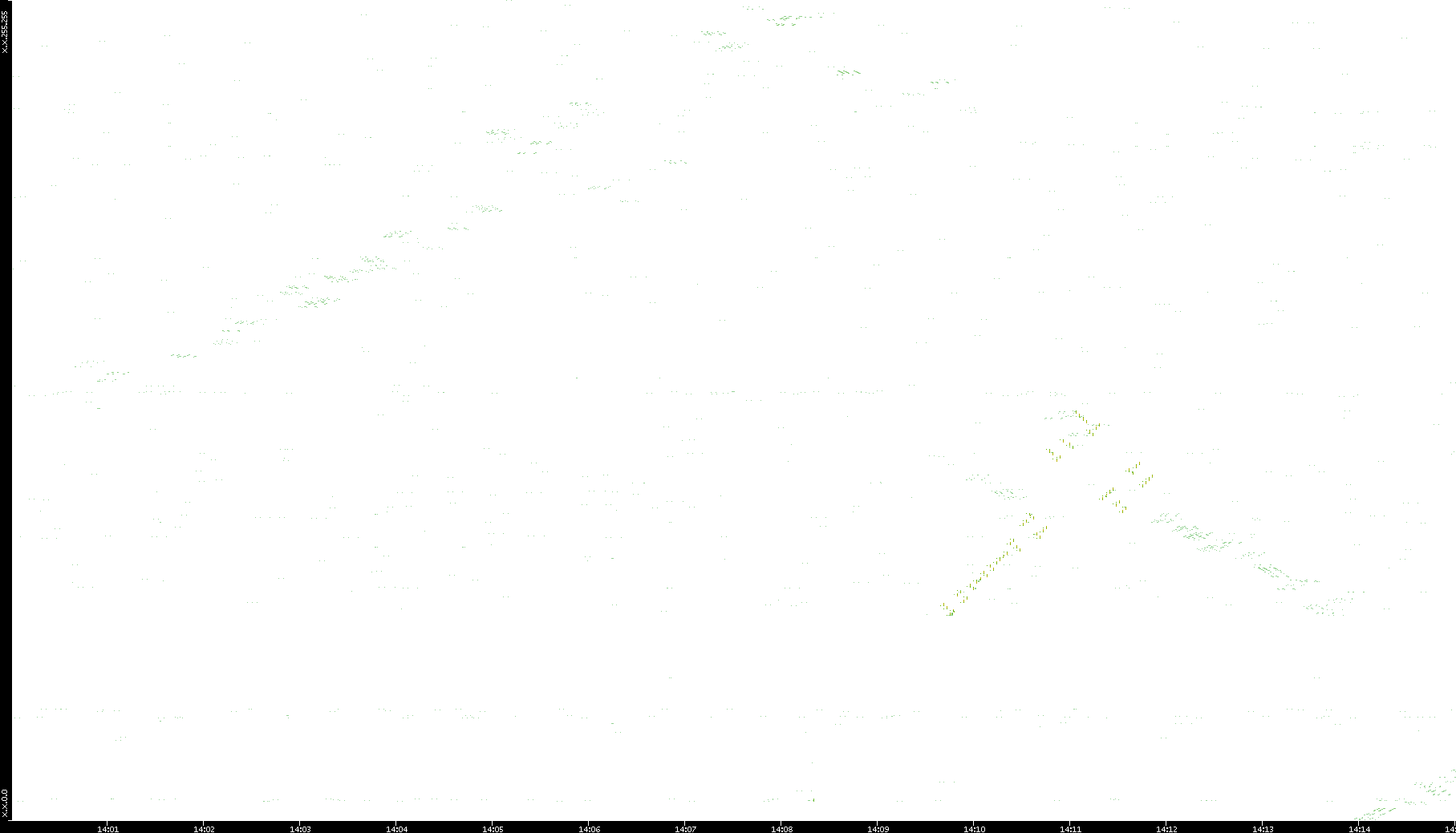 2008/11/14 Dest. IP vs. Time Dest. Port vs. Time Src. IP vs. Time Src. Port vs. Time Nb. of Packets vs. Time Throughput vs. Time Average Packet Size vs. Time Entropy of Port vs. Time