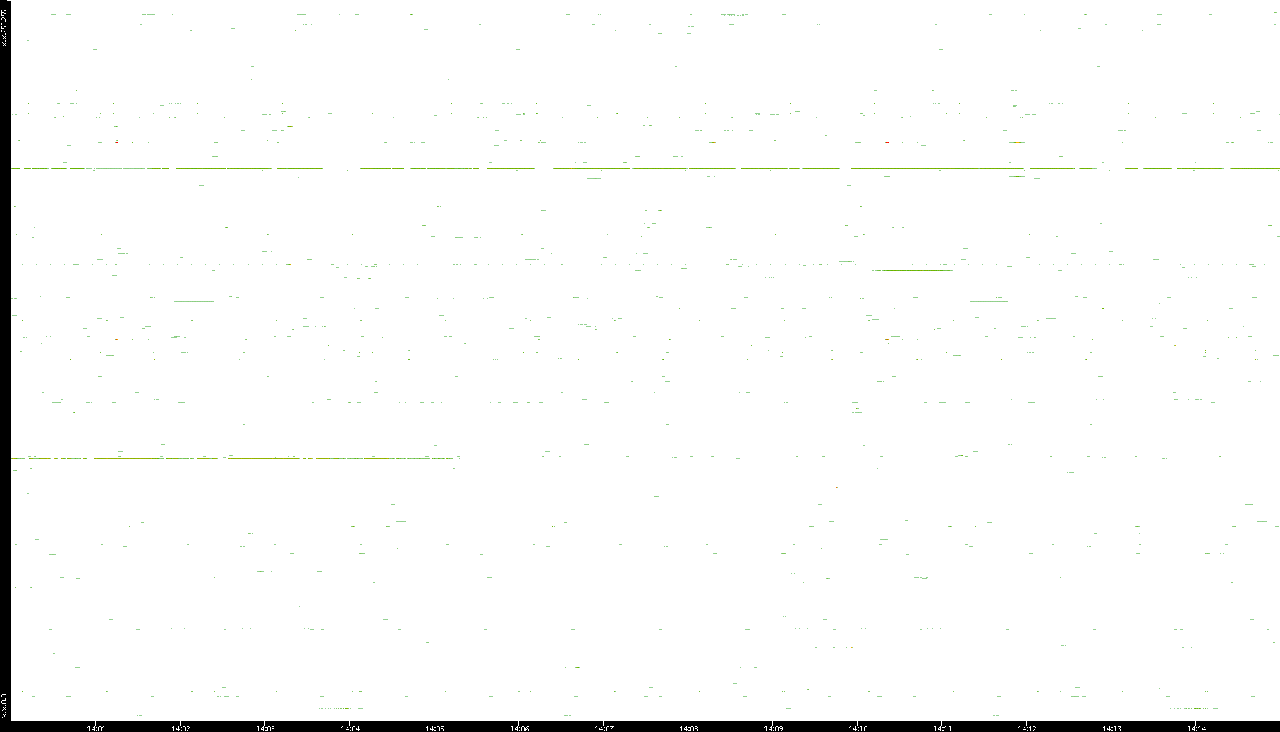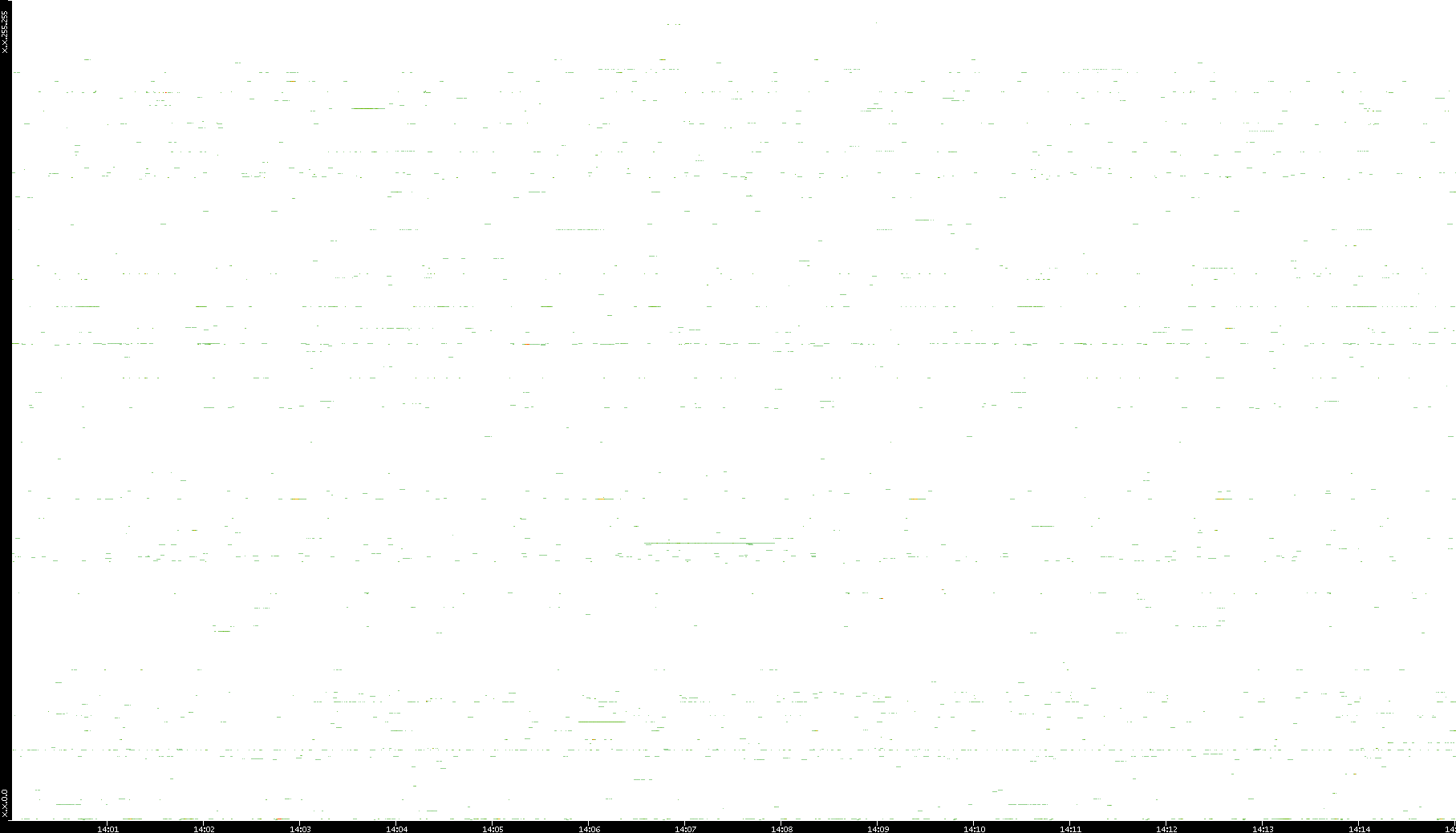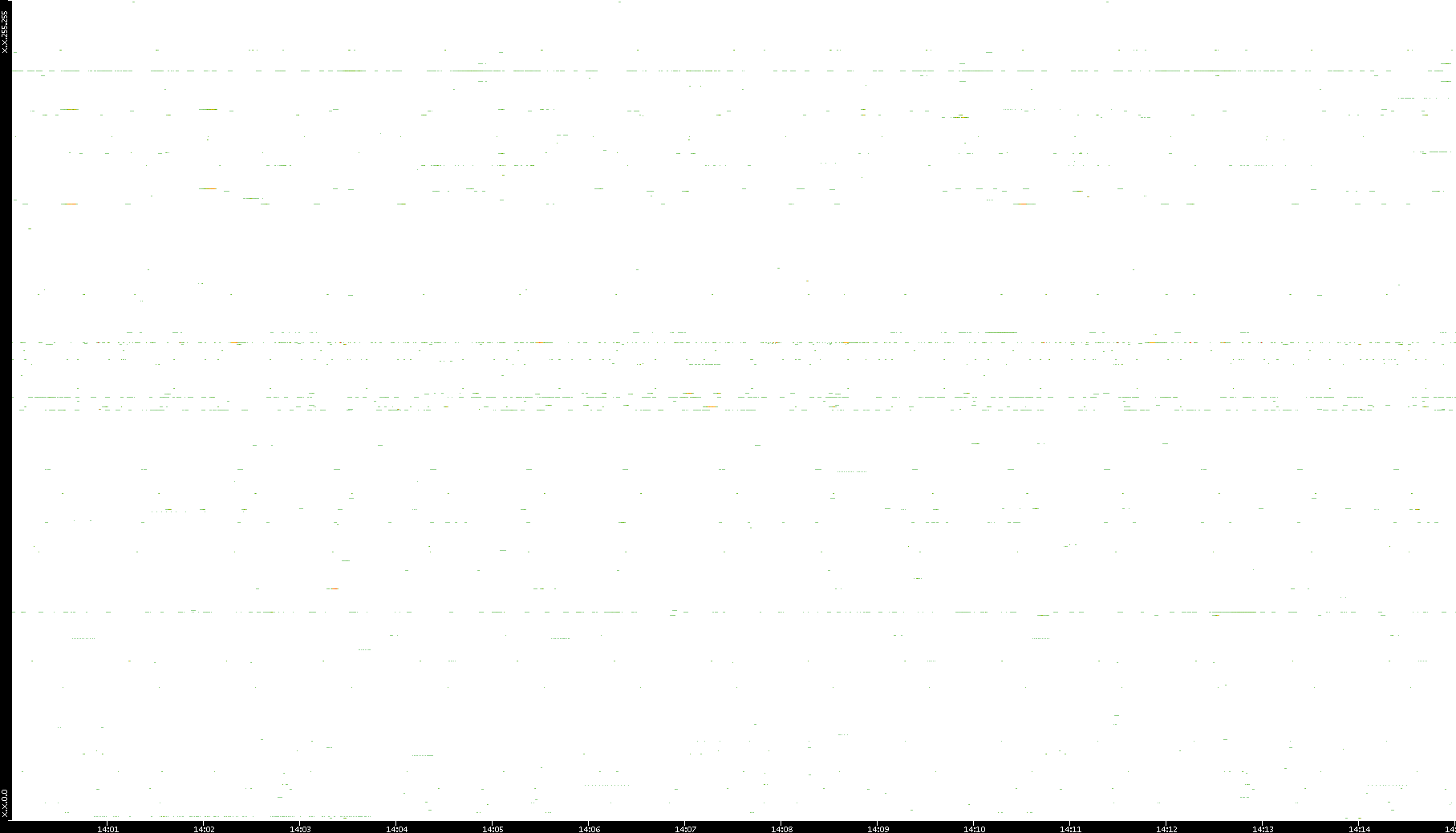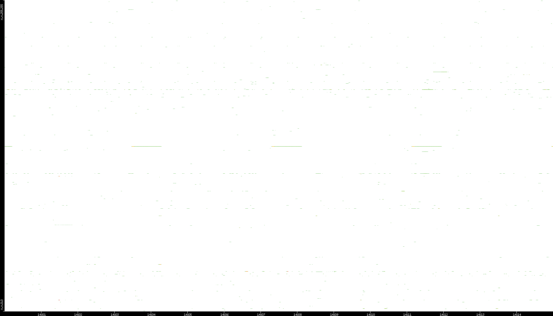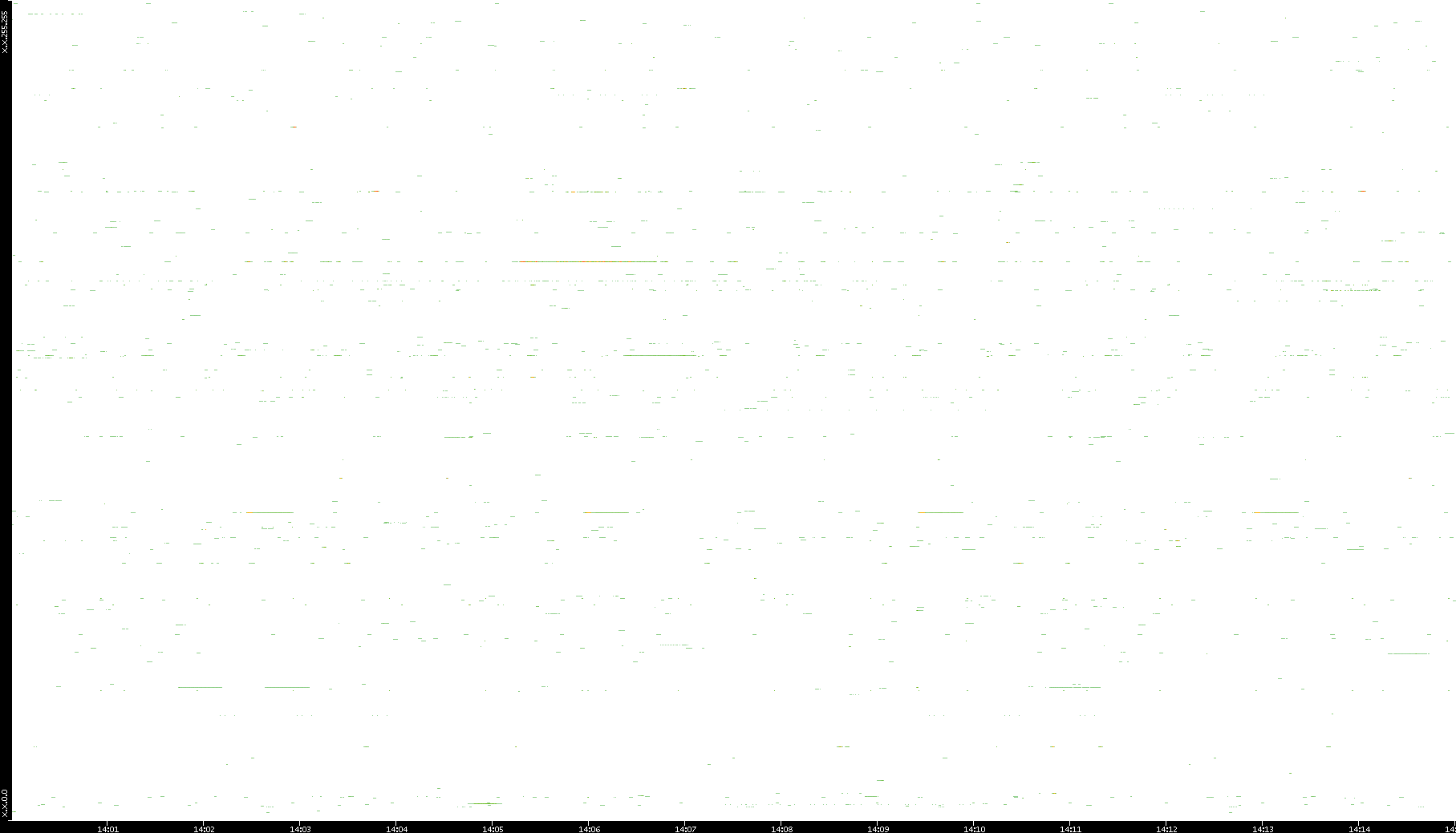 2008/12/14 Dest. IP vs. Time Dest. Port vs. Time Src. IP vs. Time Src. Port vs. Time Nb. of Packets vs. Time Throughput vs. Time Average Packet Size vs. Time Entropy of Port vs. Time