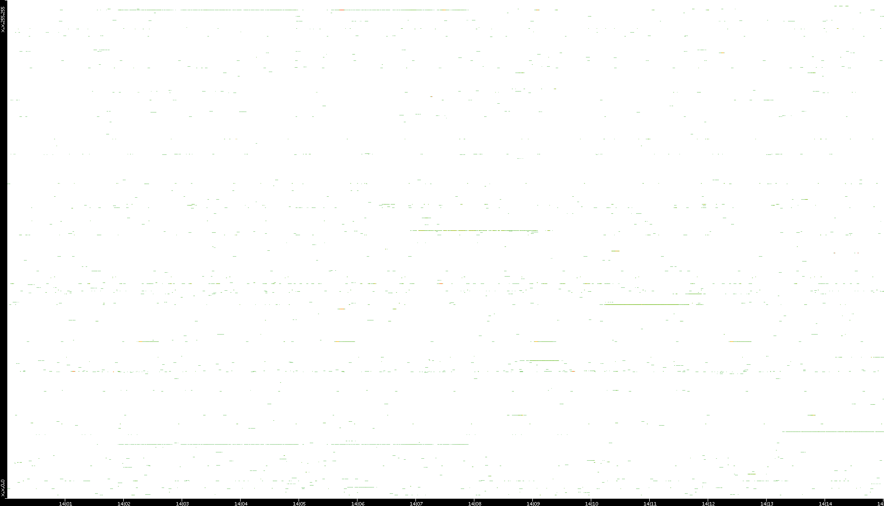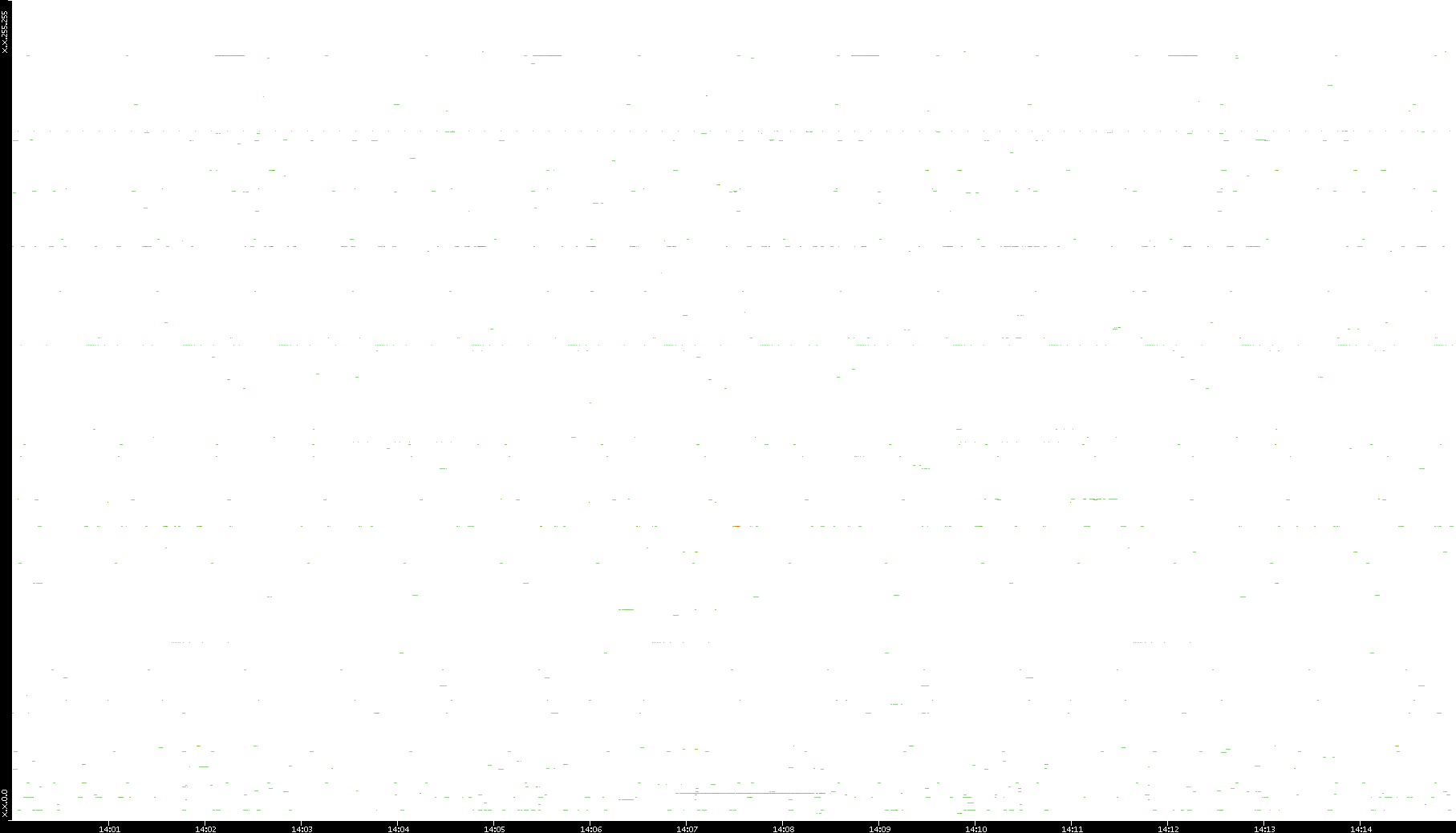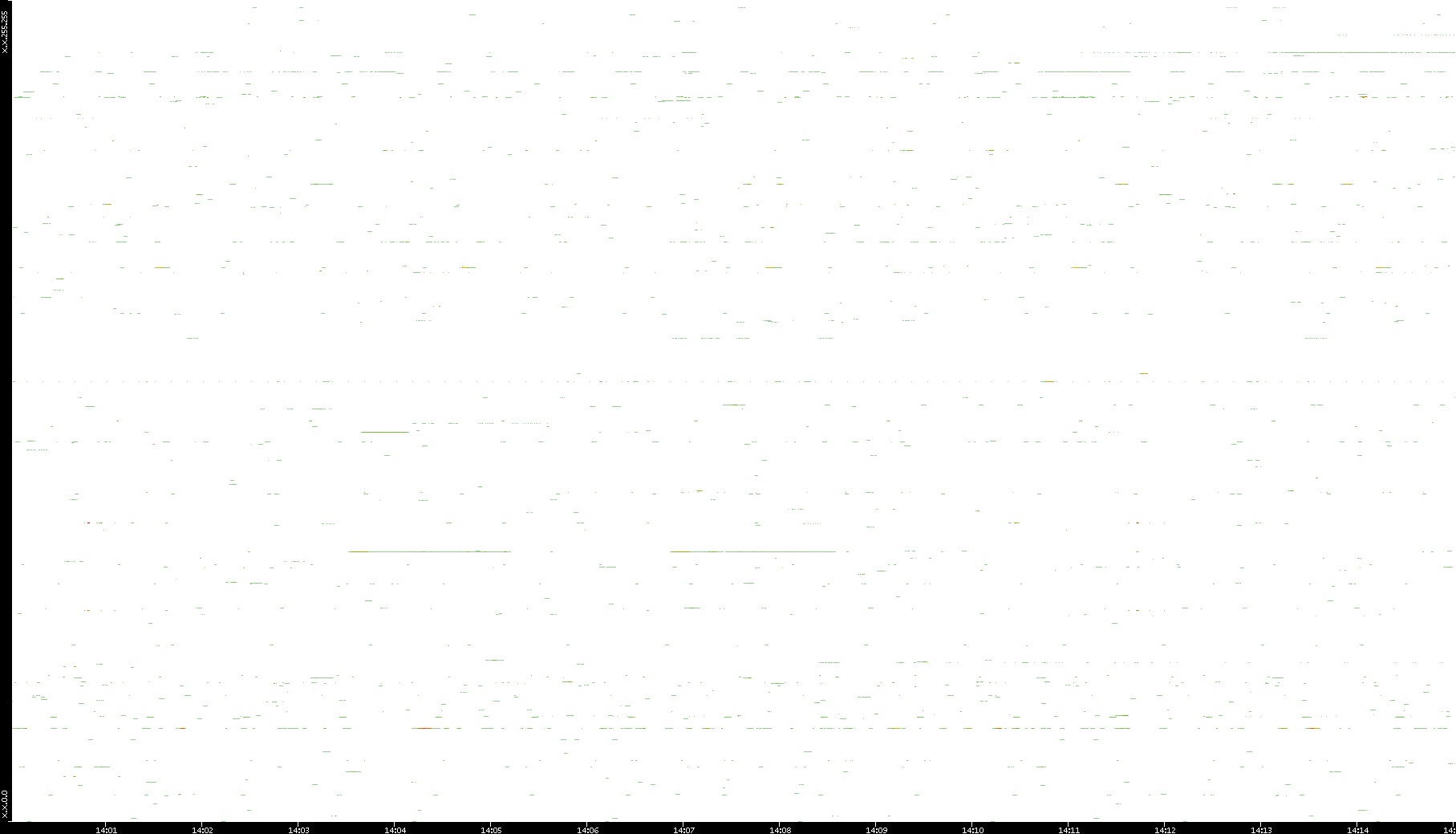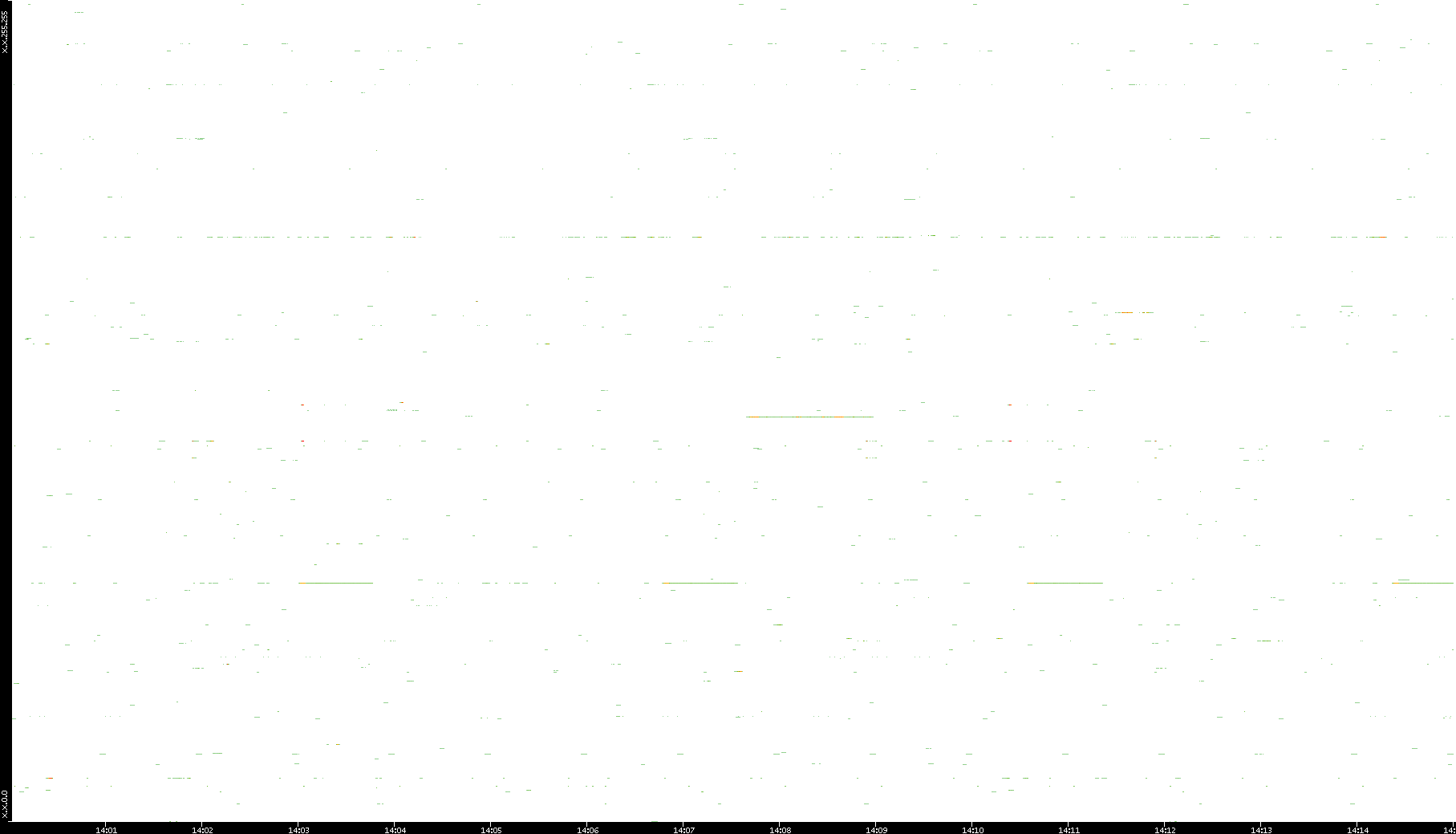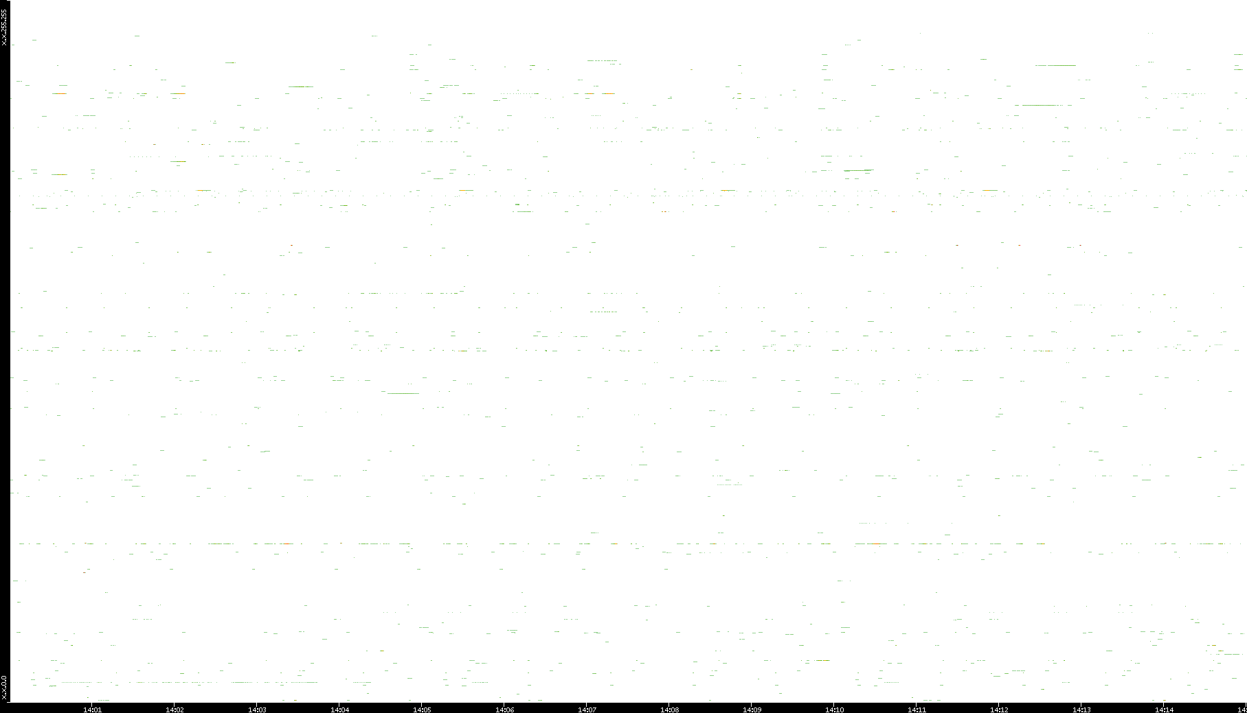 2008/12/14 Dest. IP vs. Time Dest. Port vs. Time Src. IP vs. Time Src. Port vs. Time Nb. of Packets vs. Time Throughput vs. Time Average Packet Size vs. Time Entropy of Port vs. Time