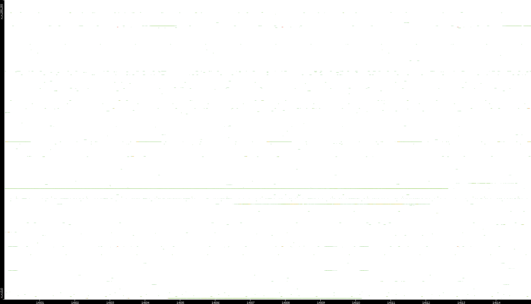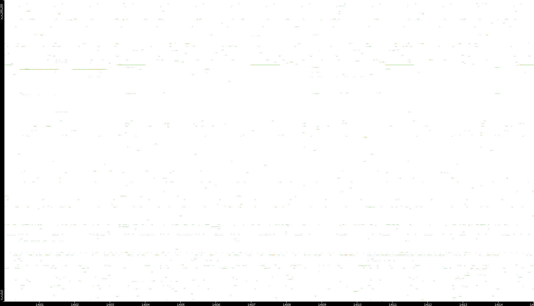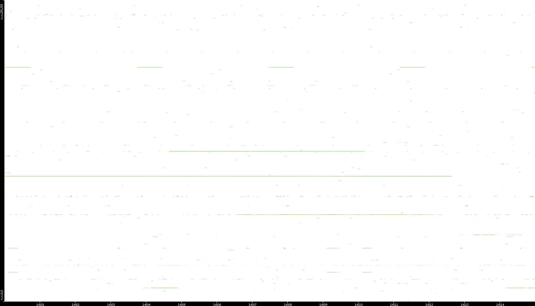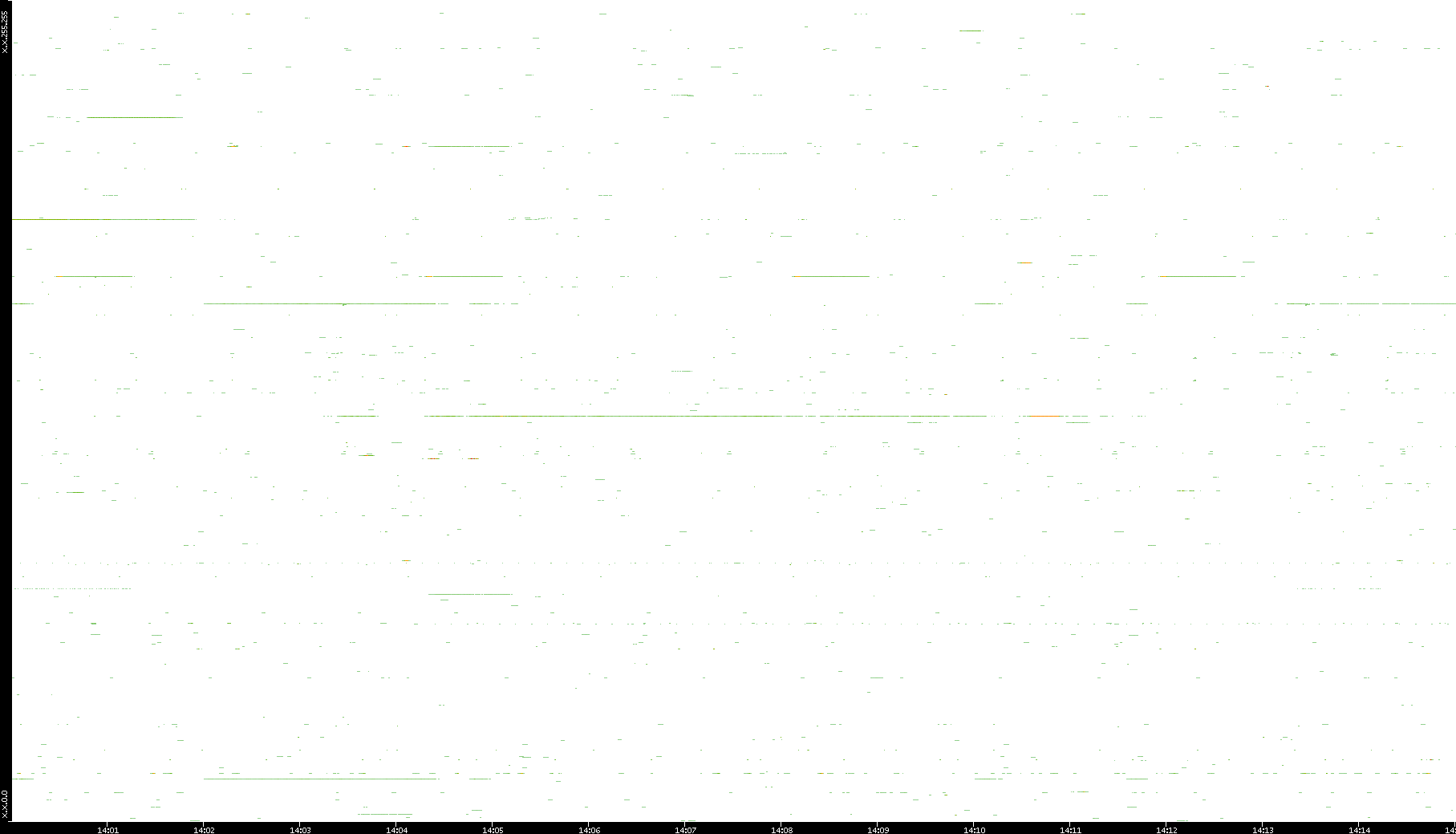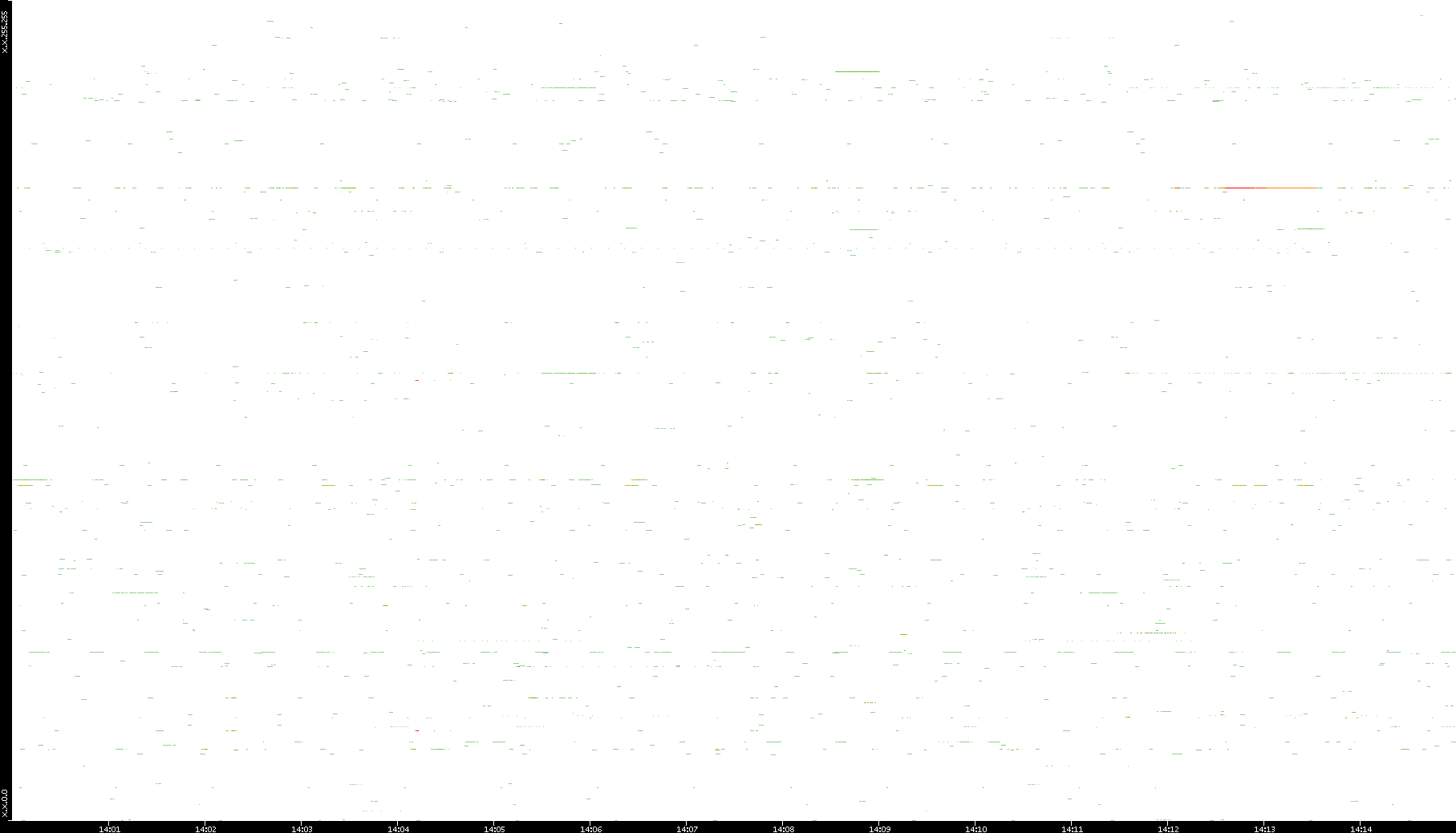 2008/12/14 Dest. IP vs. Time Dest. Port vs. Time Src. IP vs. Time Src. Port vs. Time Nb. of Packets vs. Time Throughput vs. Time Average Packet Size vs. Time Entropy of Port vs. Time