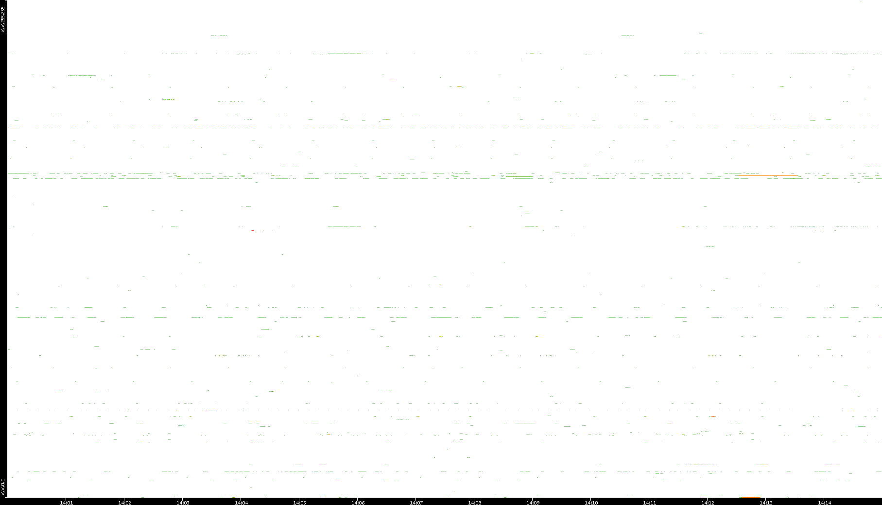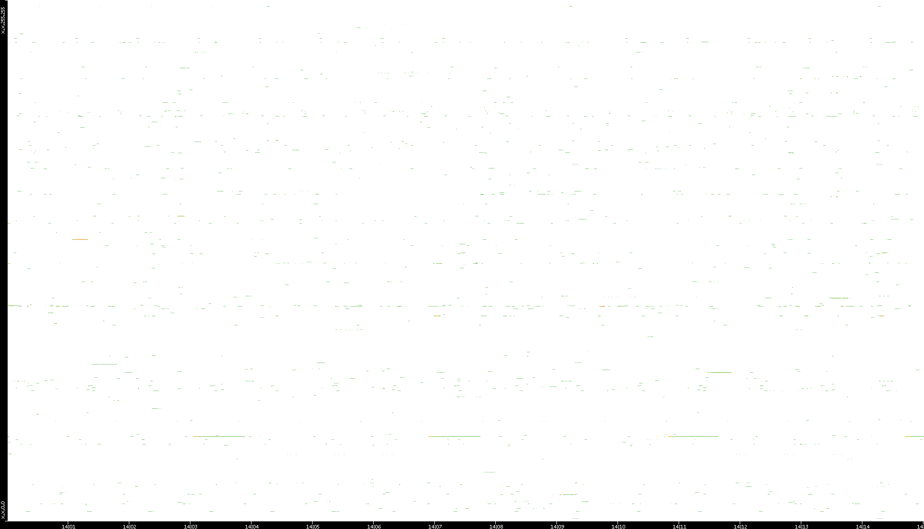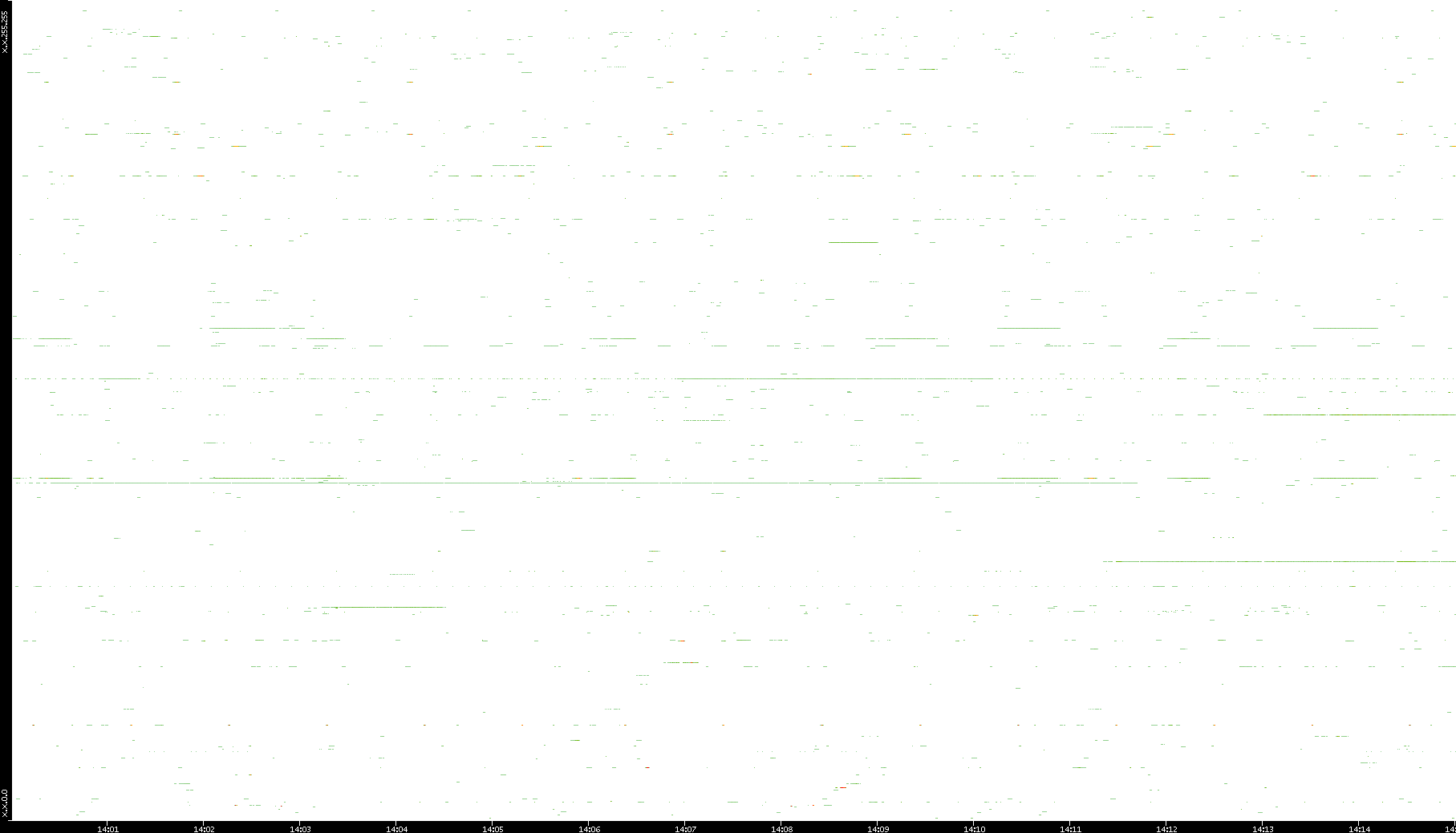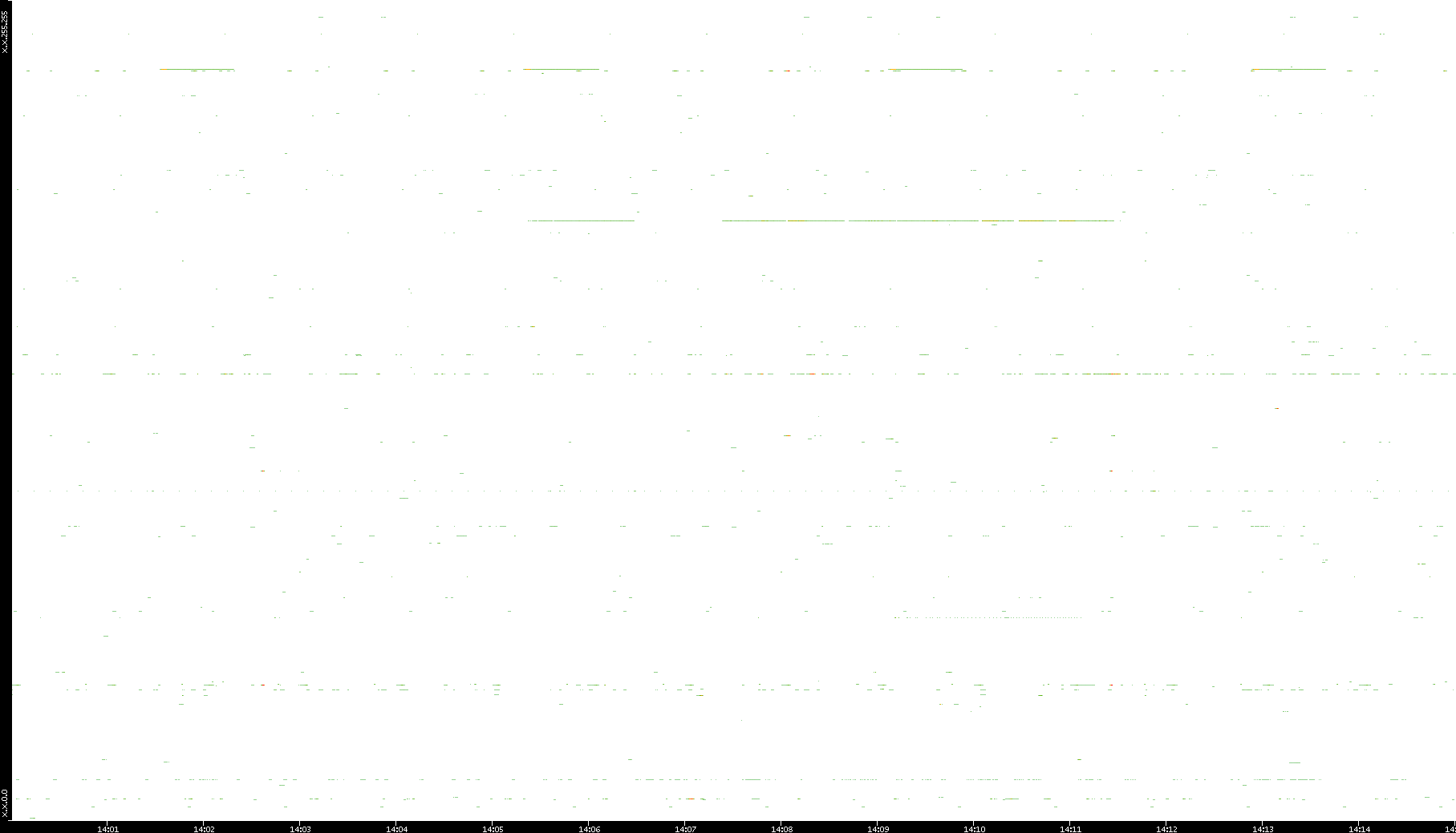 2008/12/14 Dest. IP vs. Time Dest. Port vs. Time Src. IP vs. Time Src. Port vs. Time Nb. of Packets vs. Time Throughput vs. Time Average Packet Size vs. Time Entropy of Port vs. Time