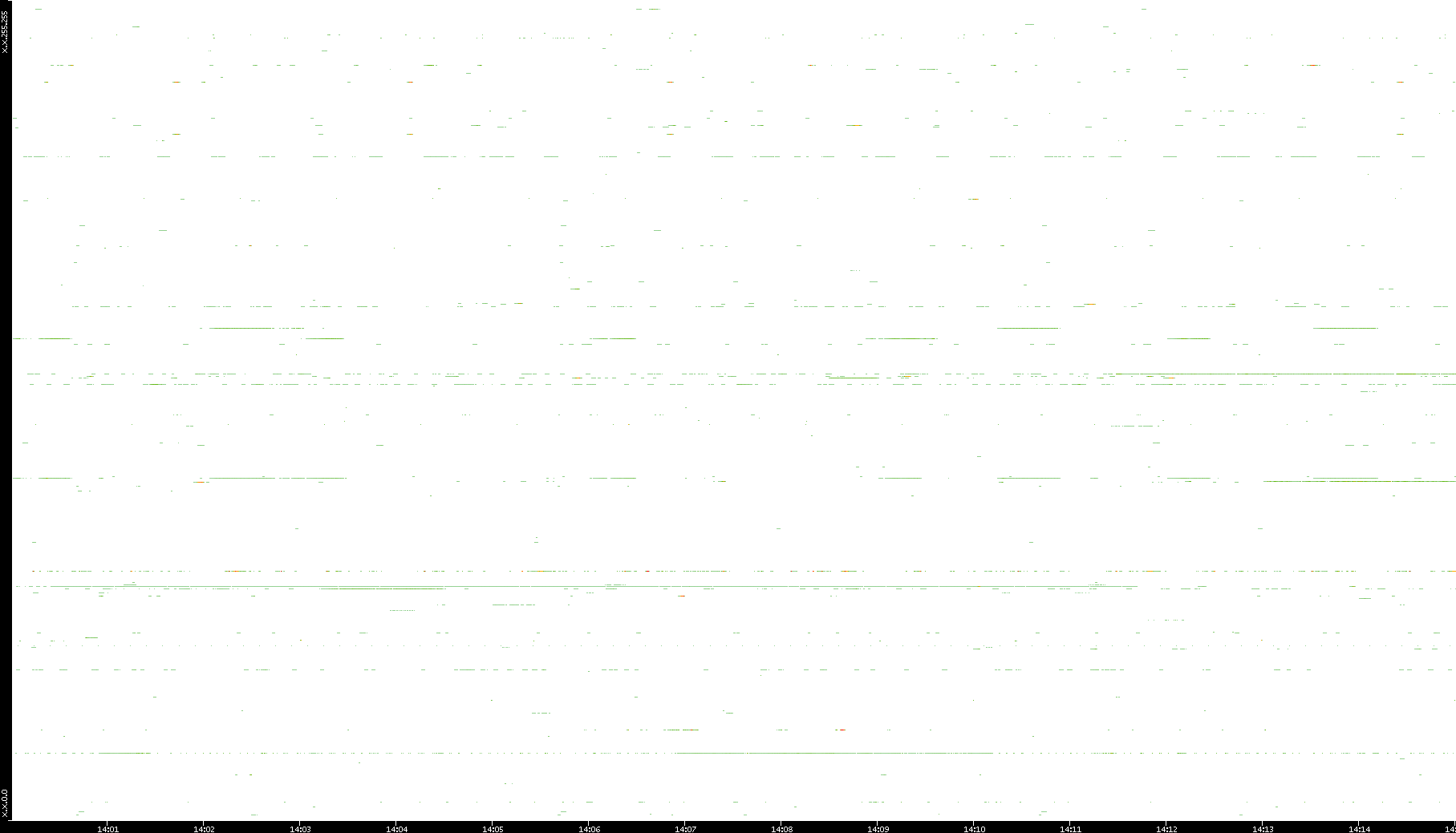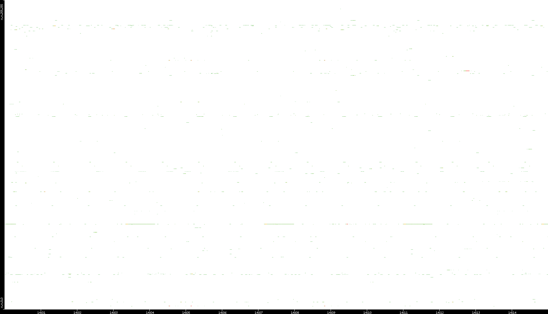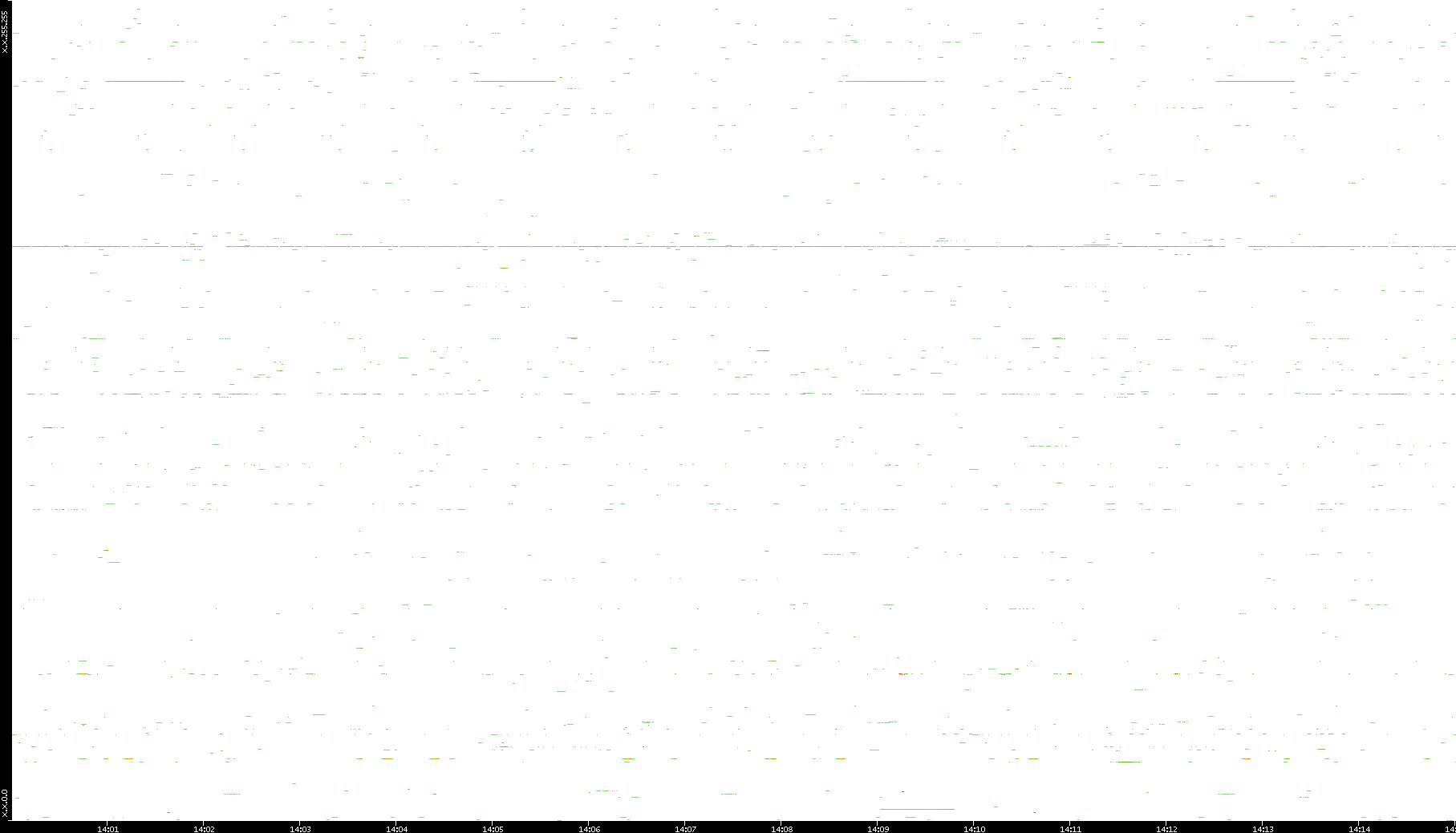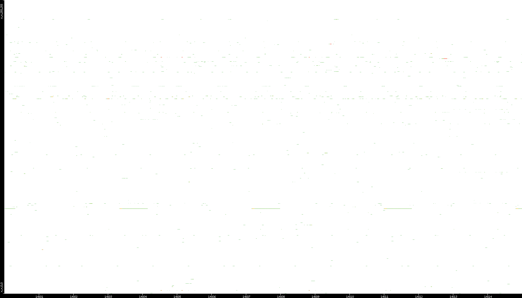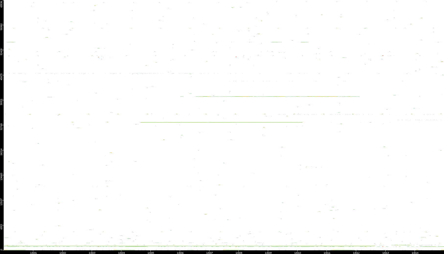 2008/12/14 Dest. IP vs. Time Dest. Port vs. Time Src. IP vs. Time Src. Port vs. Time Nb. of Packets vs. Time Throughput vs. Time Average Packet Size vs. Time Entropy of Port vs. Time