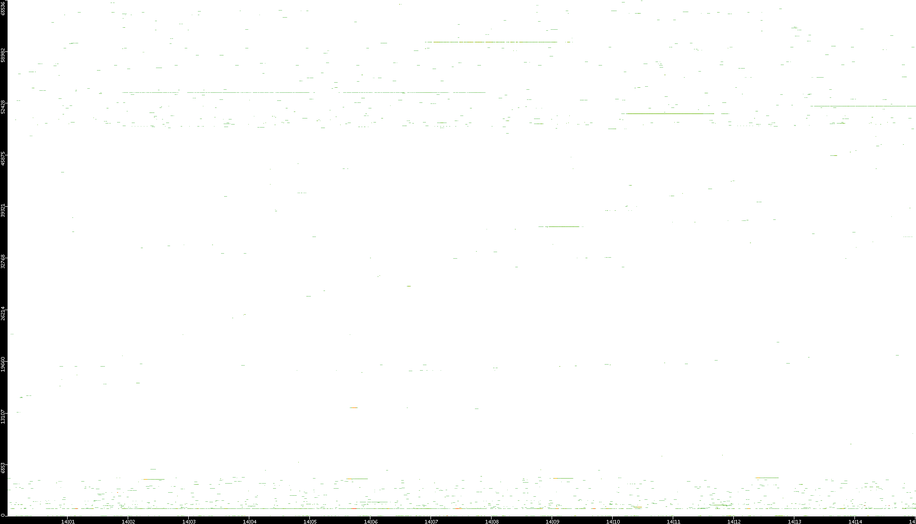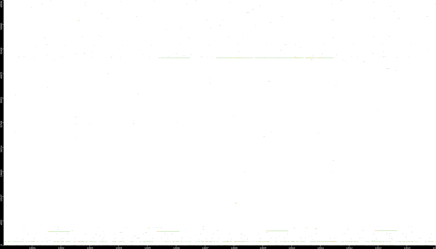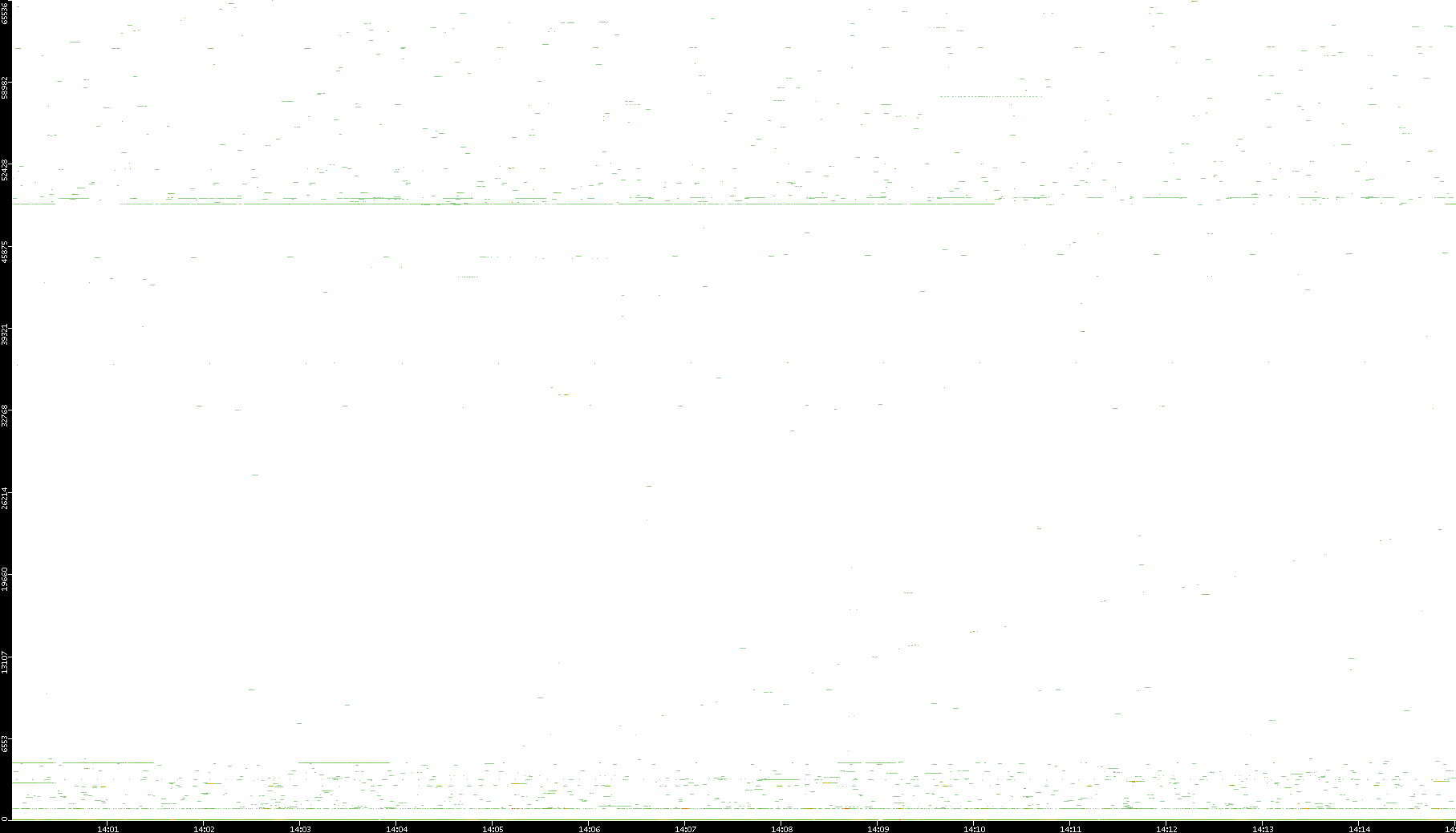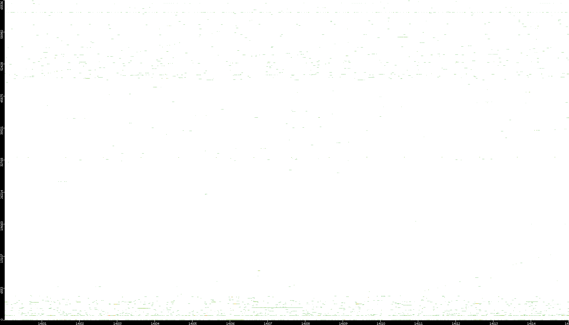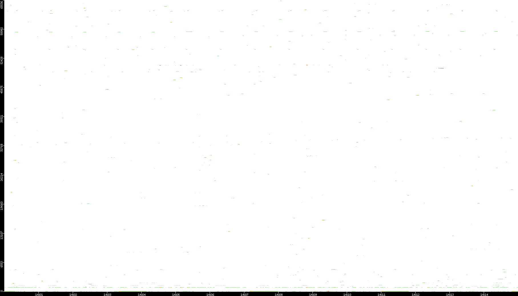 2008/12/14 Dest. IP vs. Time Dest. Port vs. Time Src. IP vs. Time Src. Port vs. Time Nb. of Packets vs. Time Throughput vs. Time Average Packet Size vs. Time Entropy of Port vs. Time