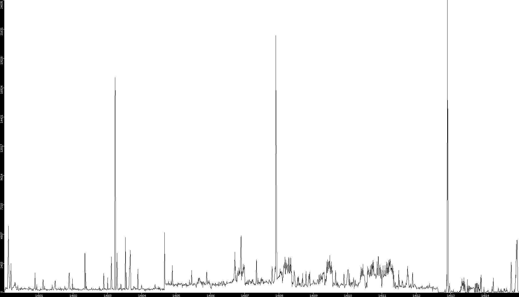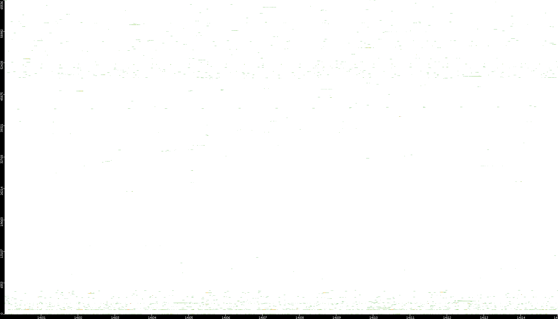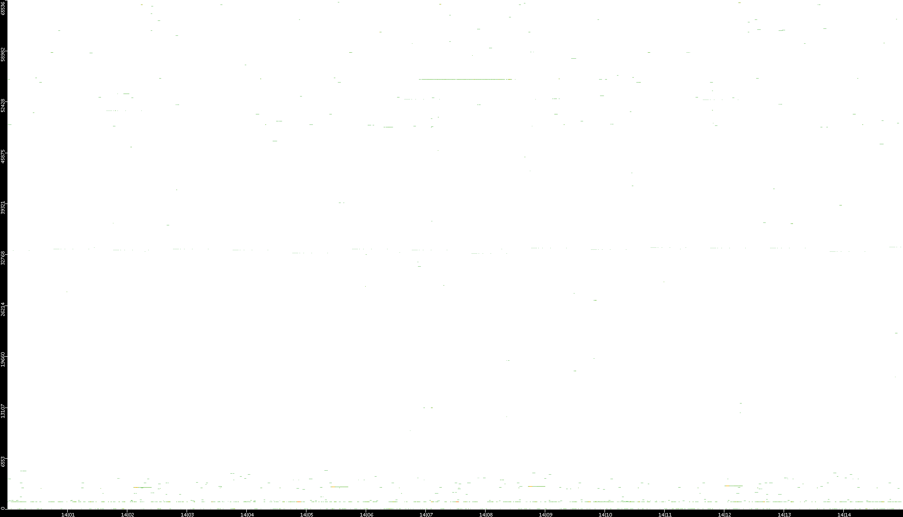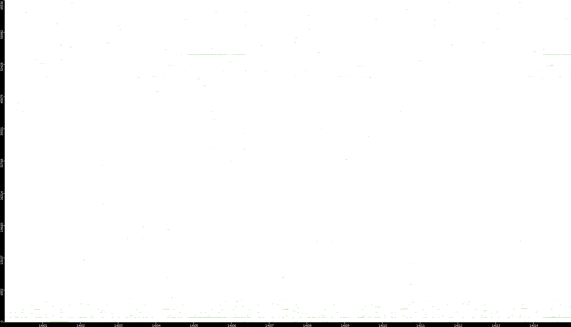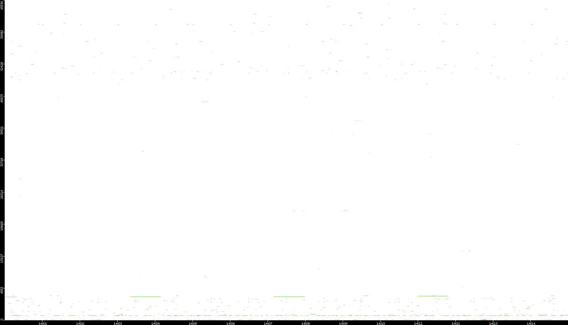 2008/12/14 Dest. IP vs. Time Dest. Port vs. Time Src. IP vs. Time Src. Port vs. Time Nb. of Packets vs. Time Throughput vs. Time Average Packet Size vs. Time Entropy of Port vs. Time