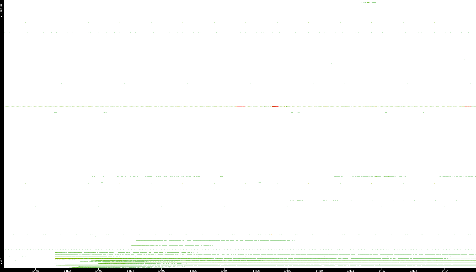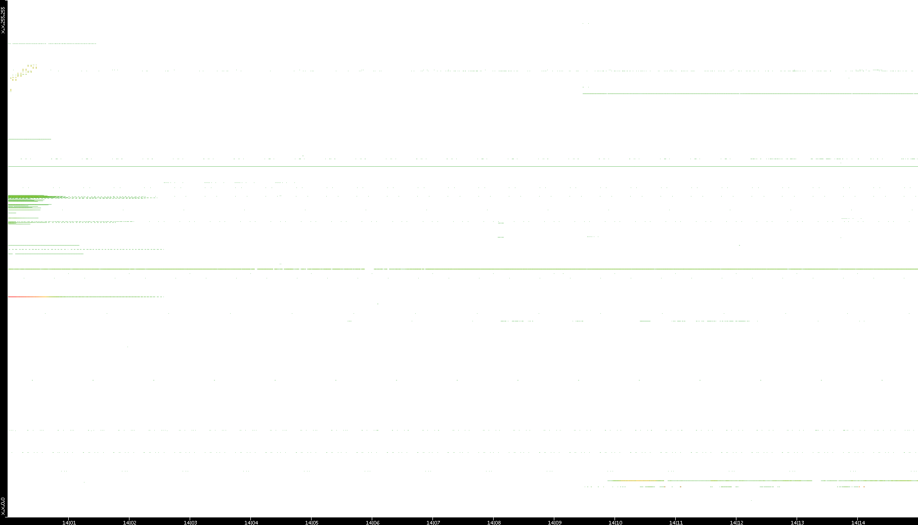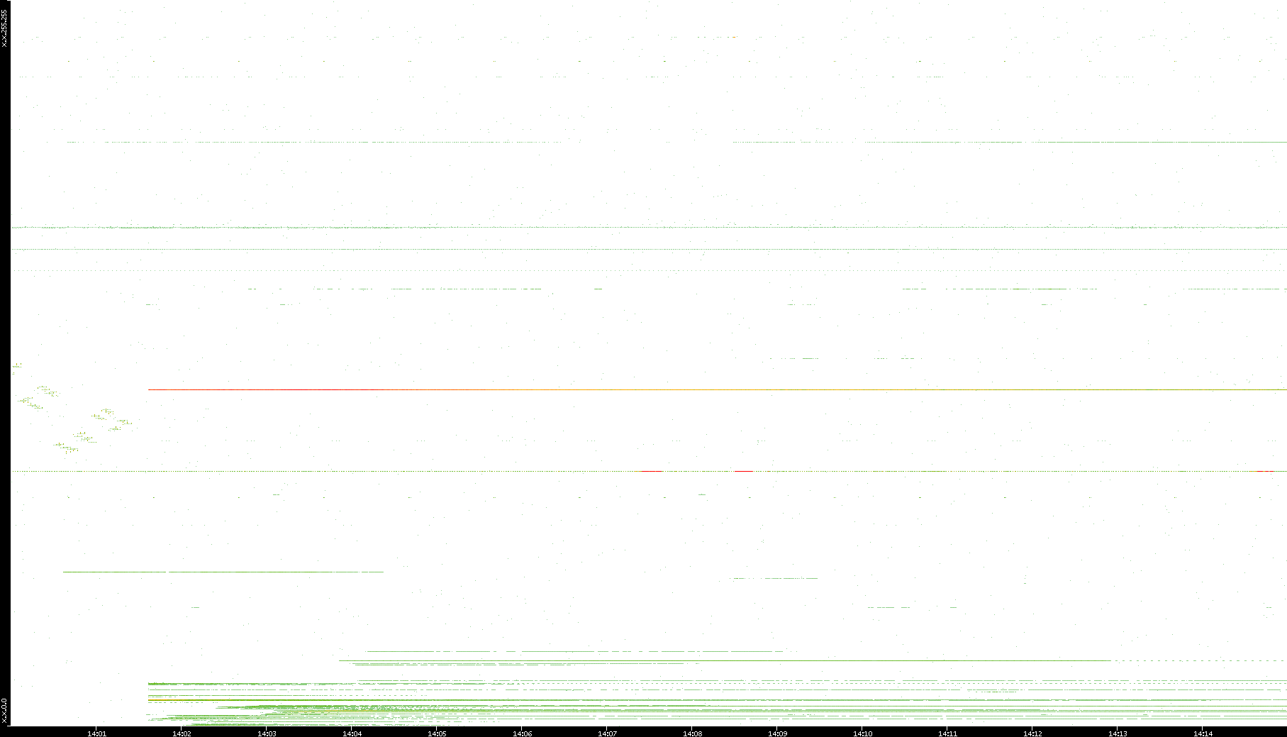 2009/01/14 Dest. IP vs. Time Dest. Port vs. Time Src. IP vs. Time Src. Port vs. Time Nb. of Packets vs. Time Throughput vs. Time Average Packet Size vs. Time Entropy of Port vs. Time