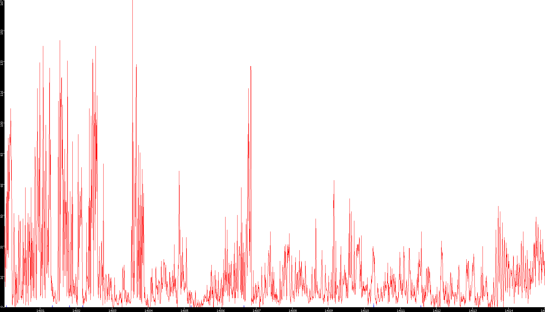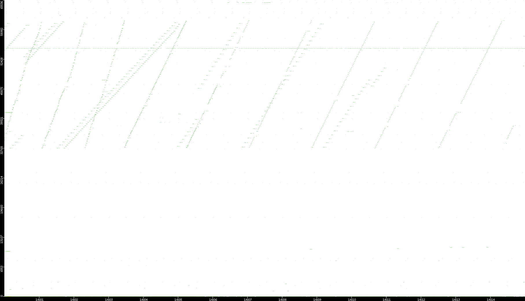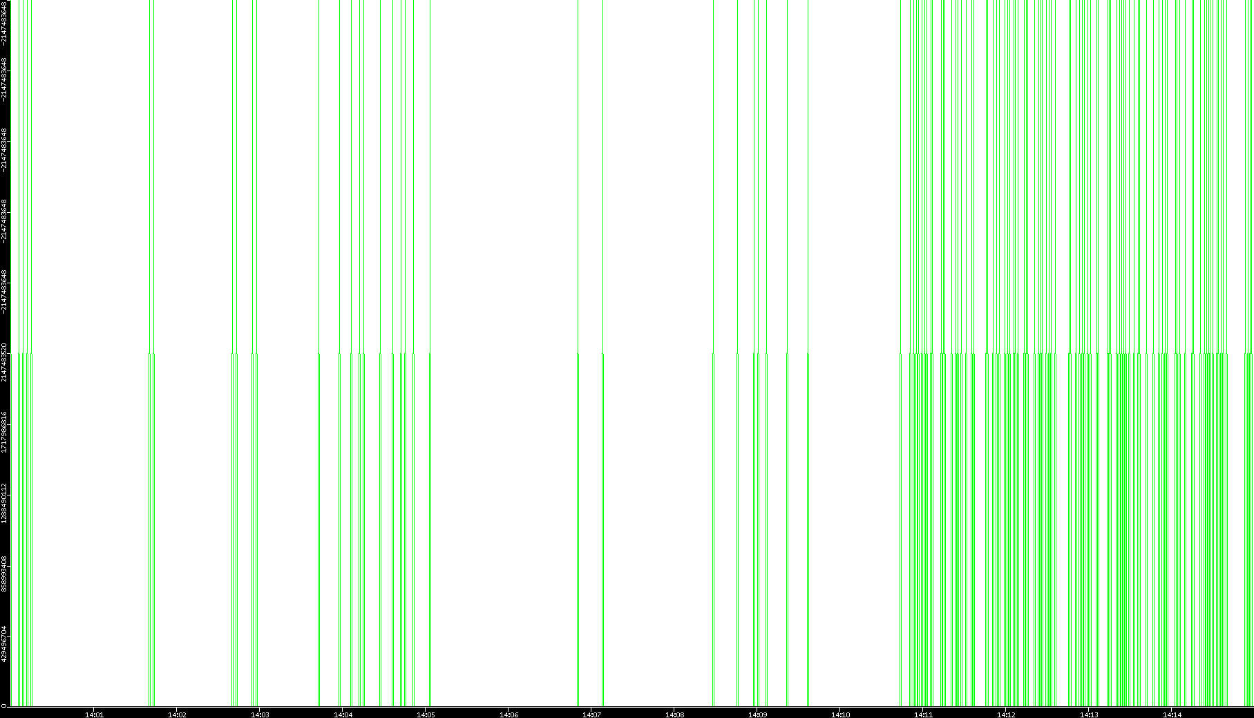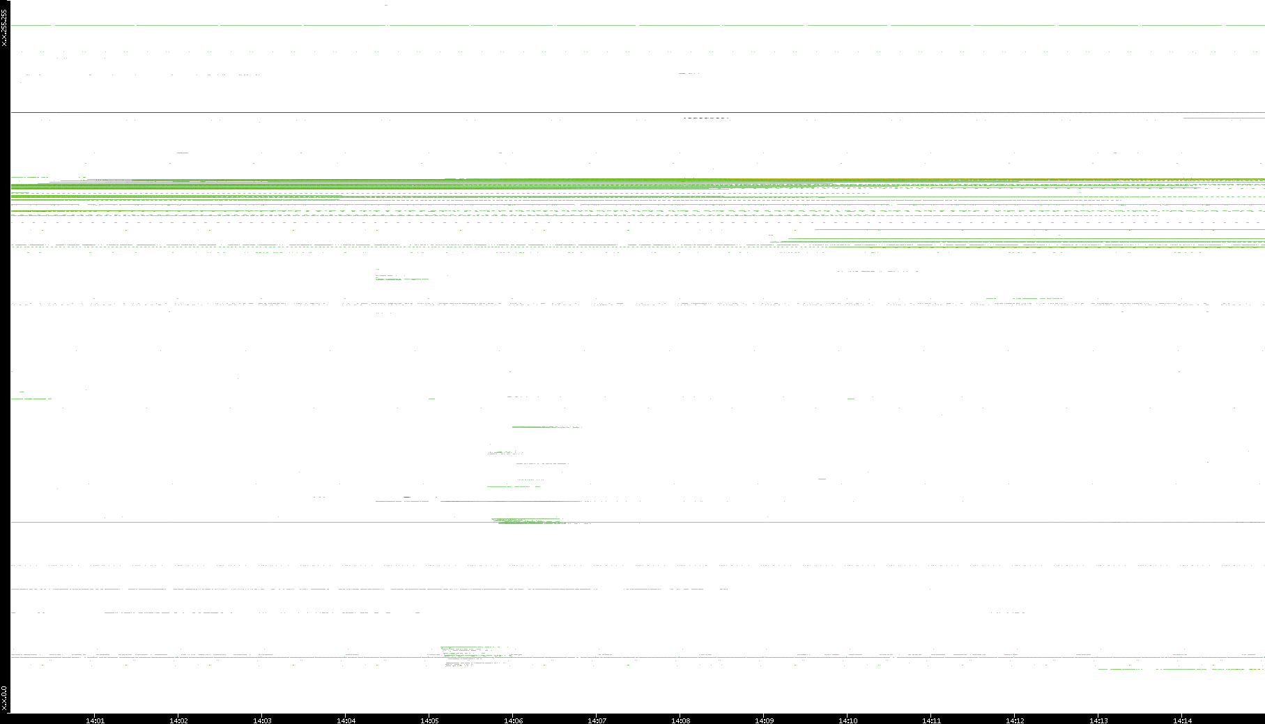 2009/01/14 Dest. IP vs. Time Dest. Port vs. Time Src. IP vs. Time Src. Port vs. Time Nb. of Packets vs. Time Throughput vs. Time Average Packet Size vs. Time Entropy of Port vs. Time