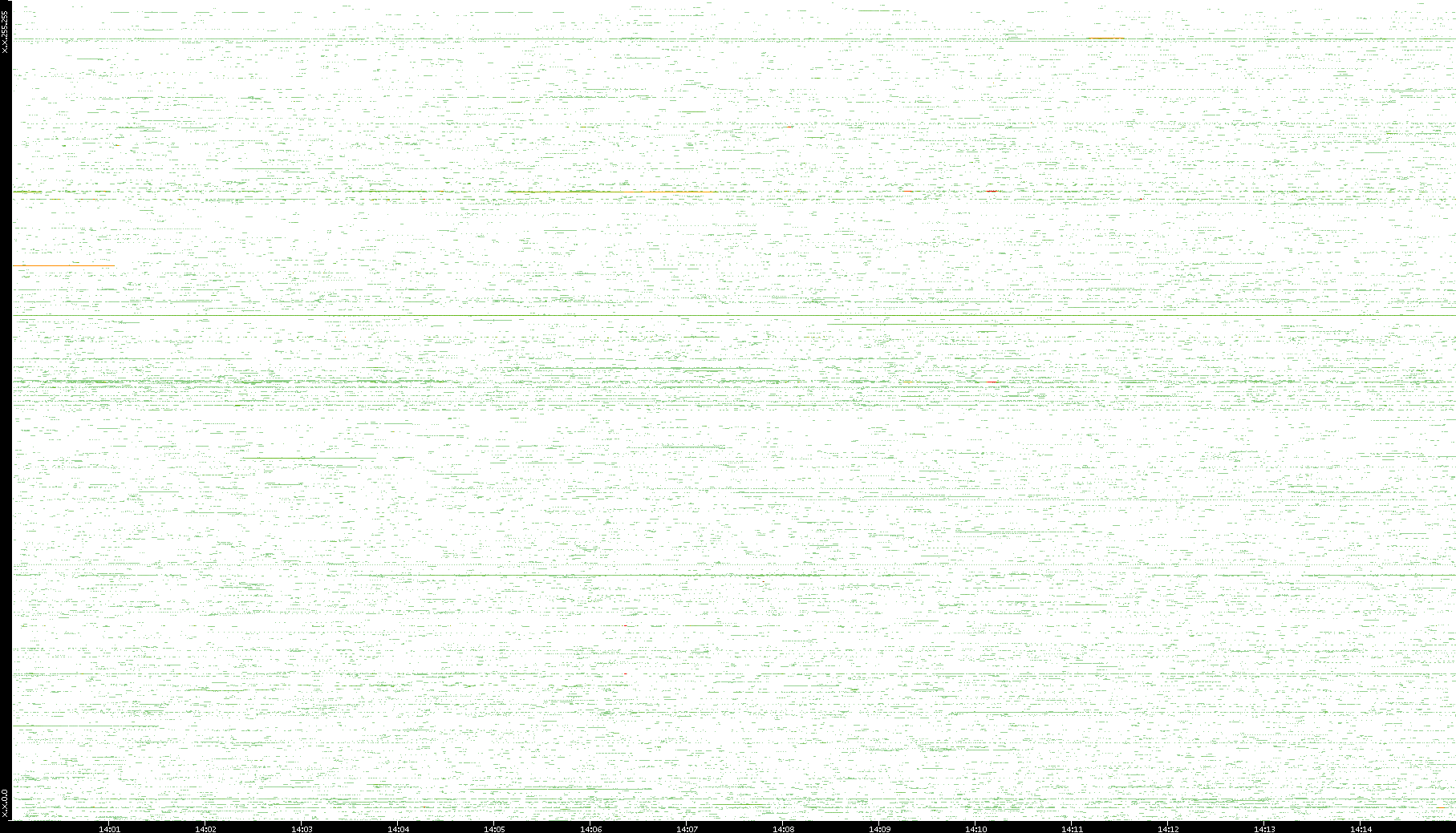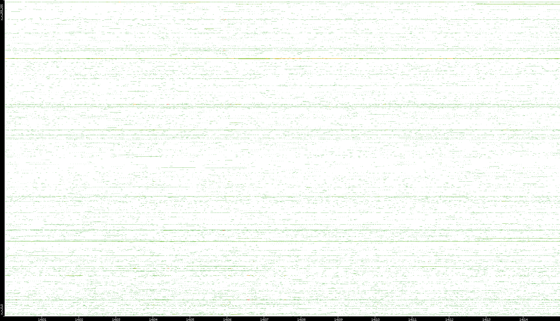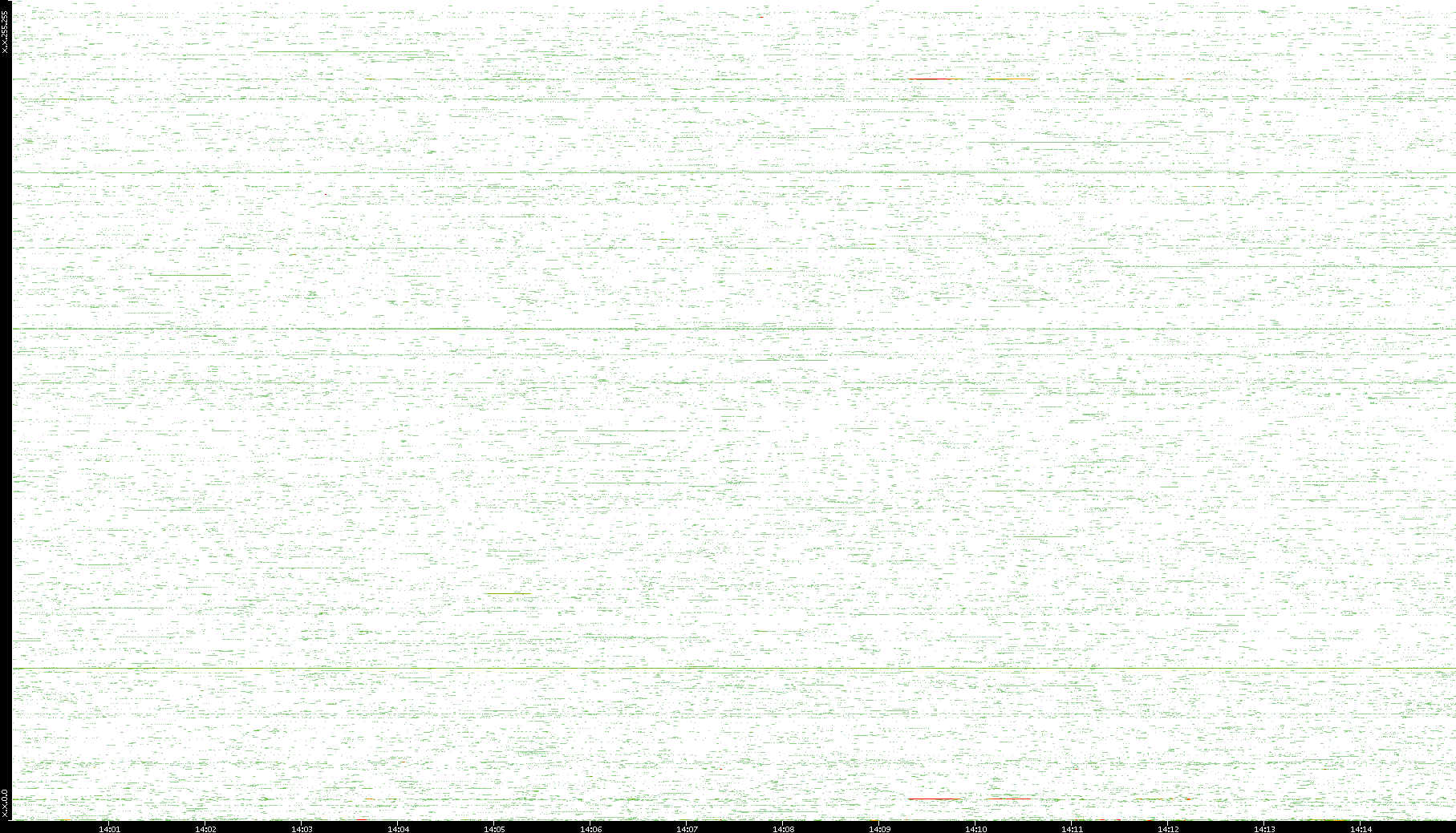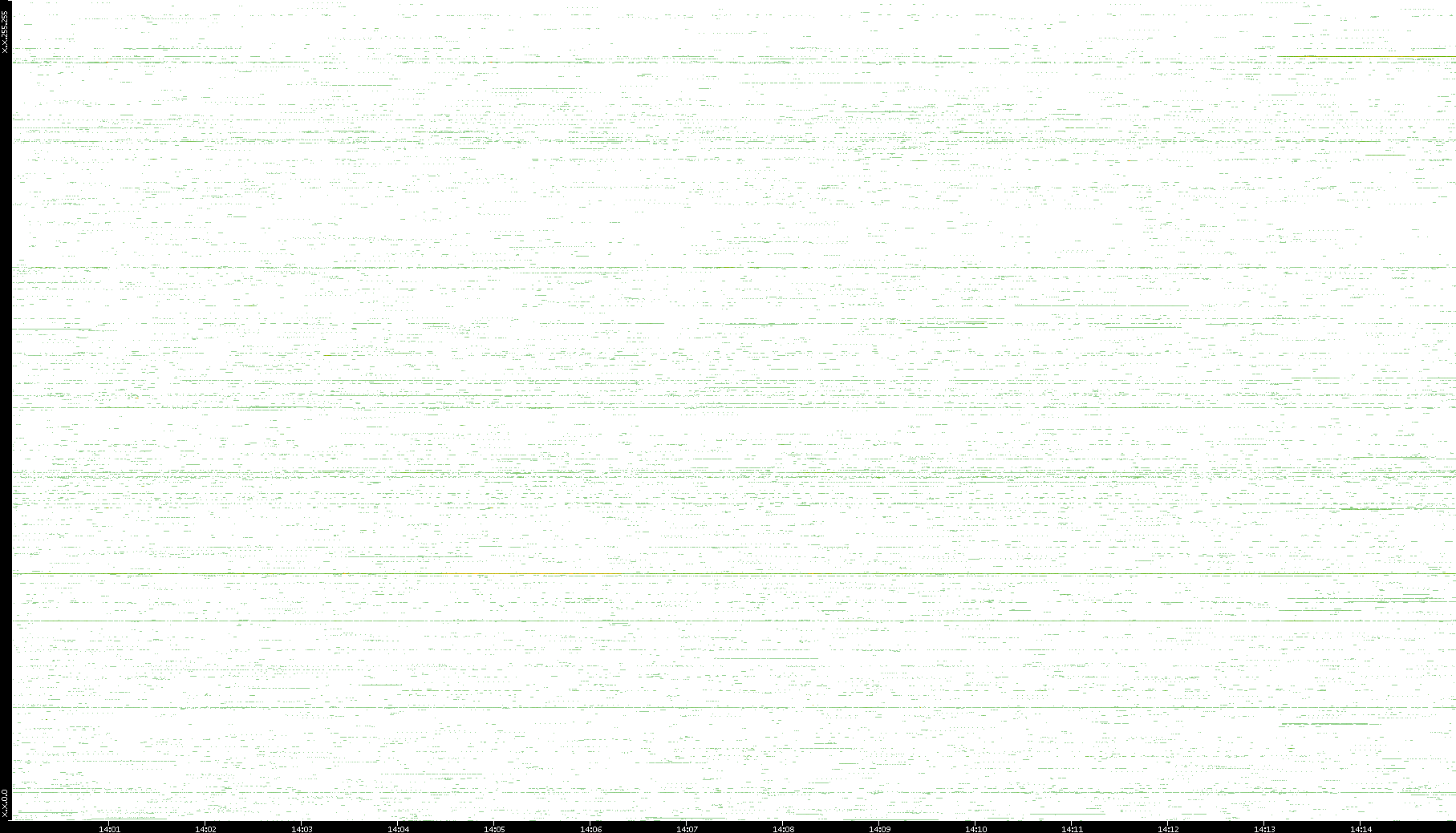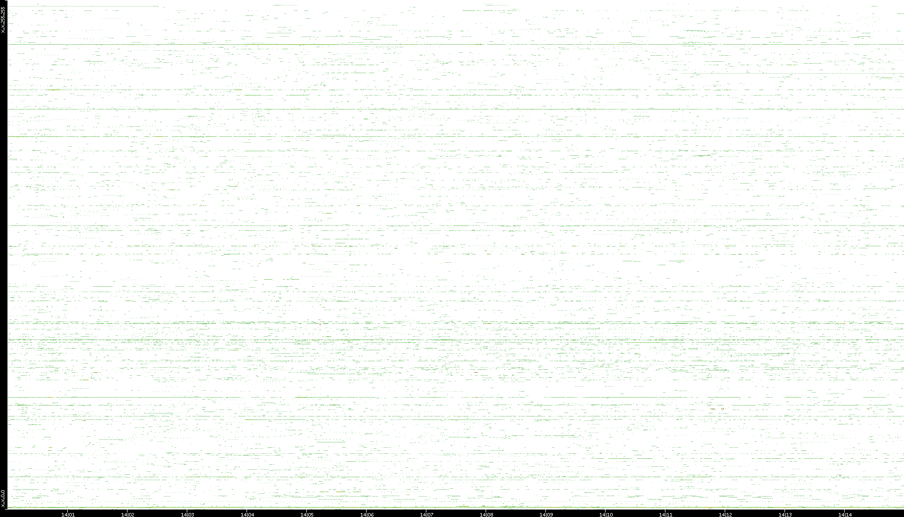 2009/07/14 Dest. IP vs. Time Dest. Port vs. Time Src. IP vs. Time Src. Port vs. Time Nb. of Packets vs. Time Throughput vs. Time Average Packet Size vs. Time Entropy of Port vs. Time