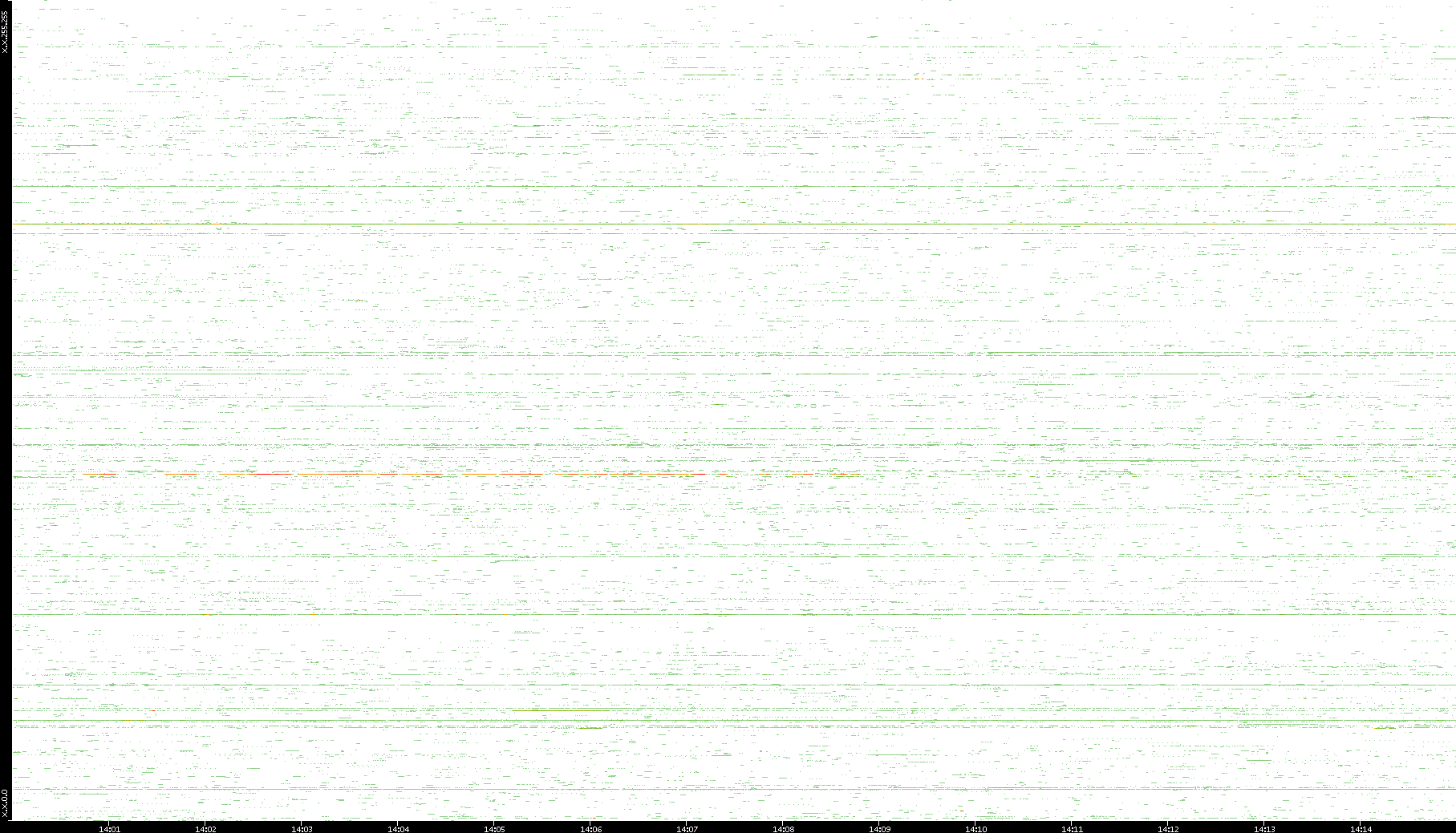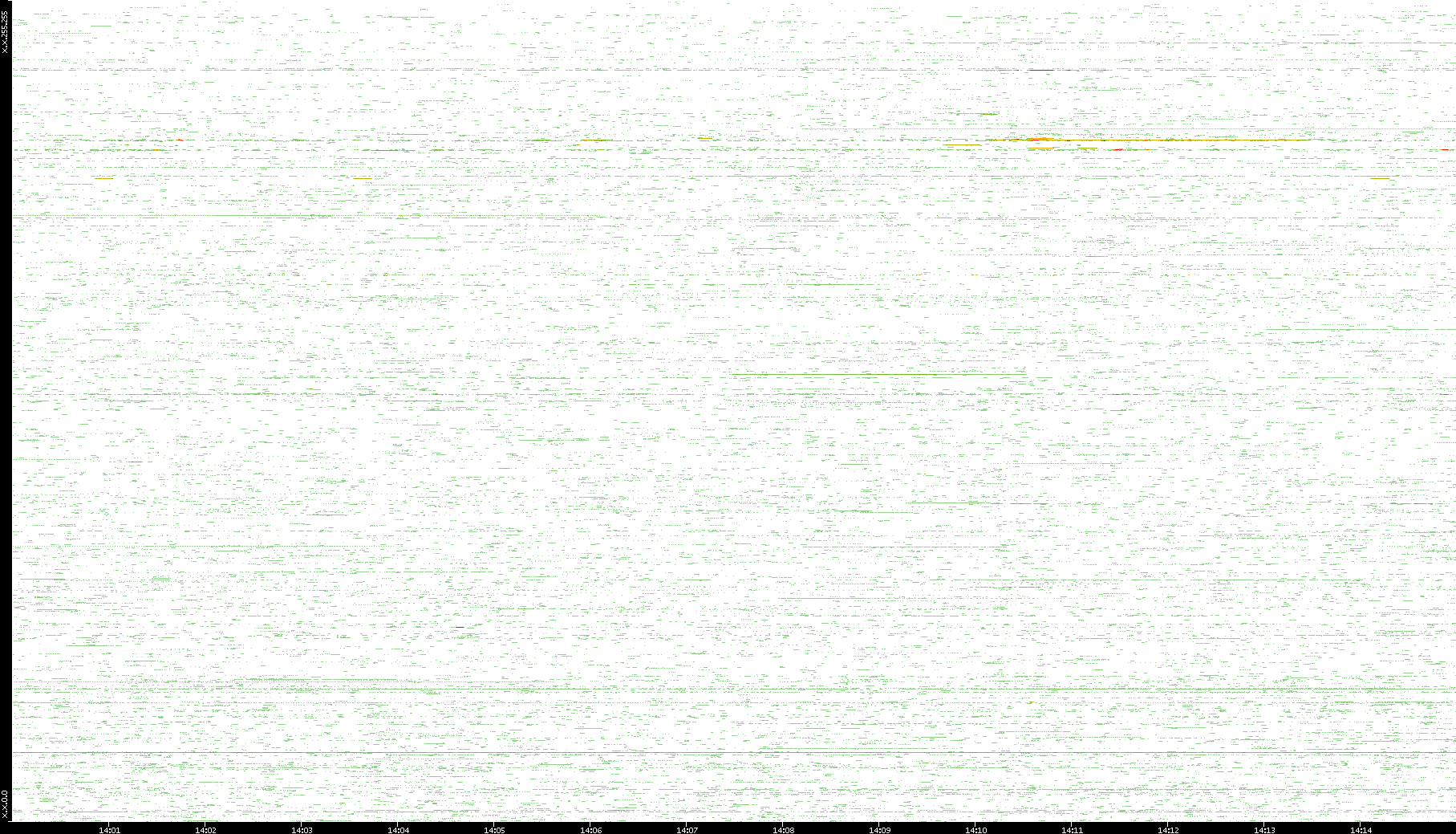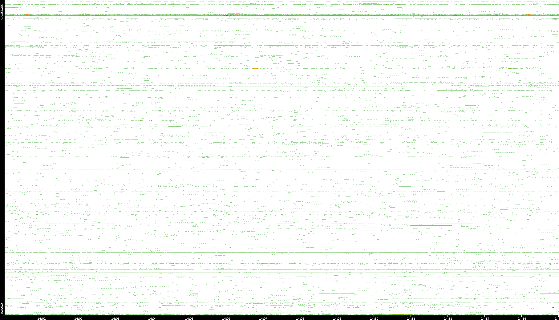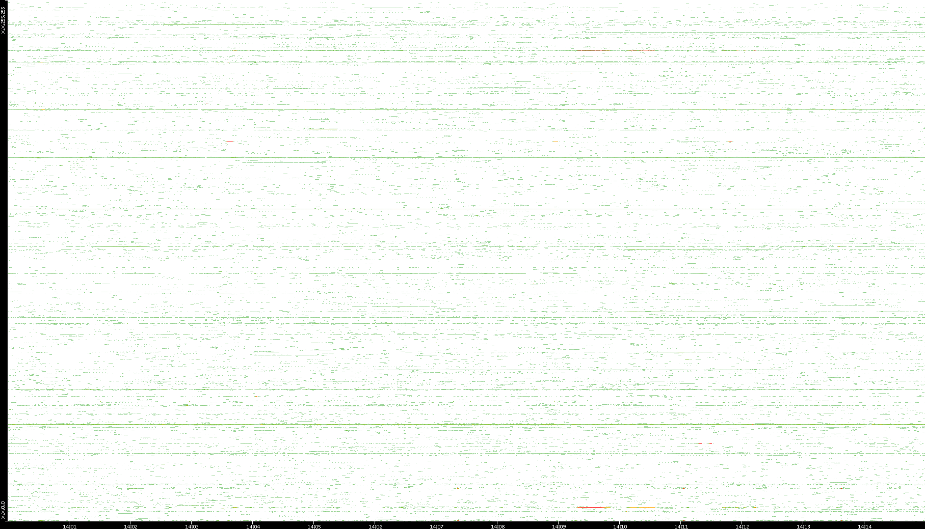 2009/07/14 Dest. IP vs. Time Dest. Port vs. Time Src. IP vs. Time Src. Port vs. Time Nb. of Packets vs. Time Throughput vs. Time Average Packet Size vs. Time Entropy of Port vs. Time
