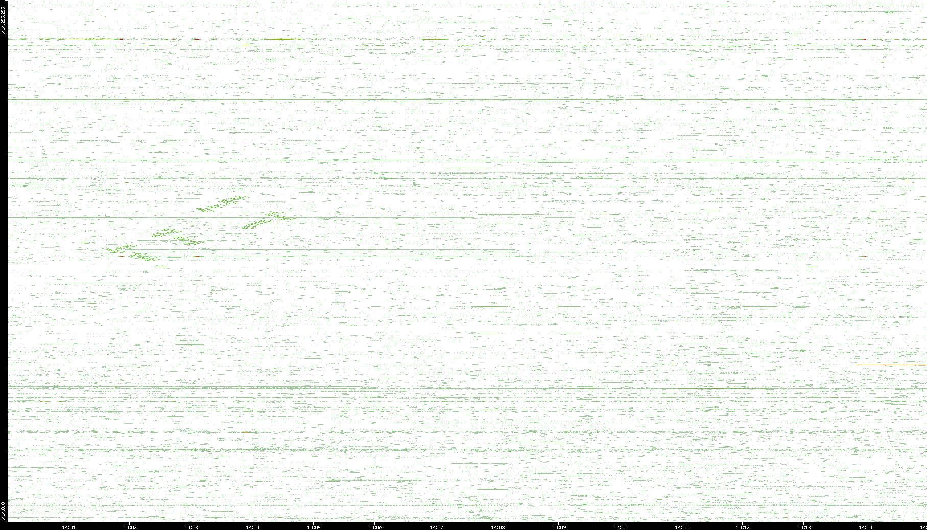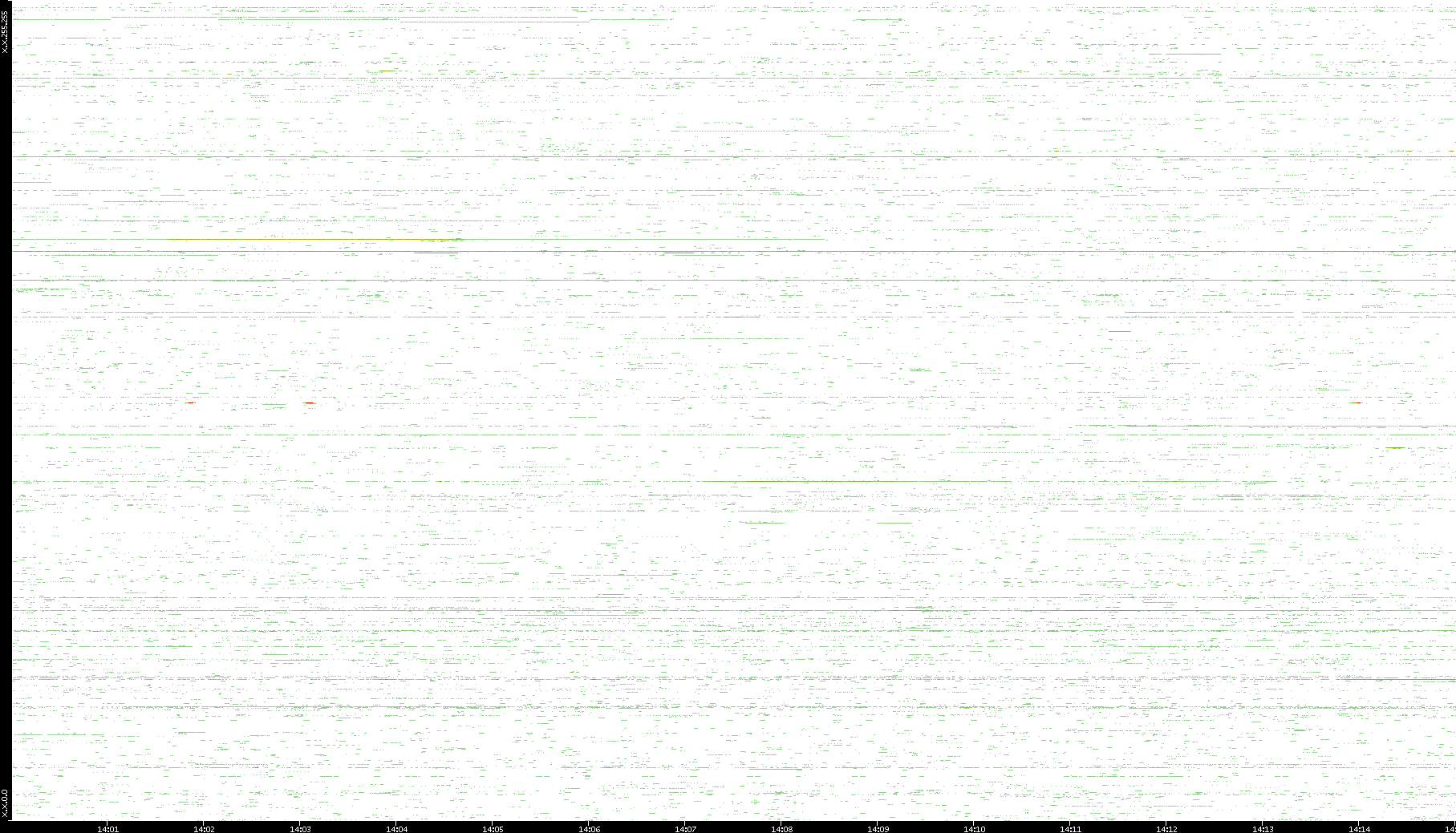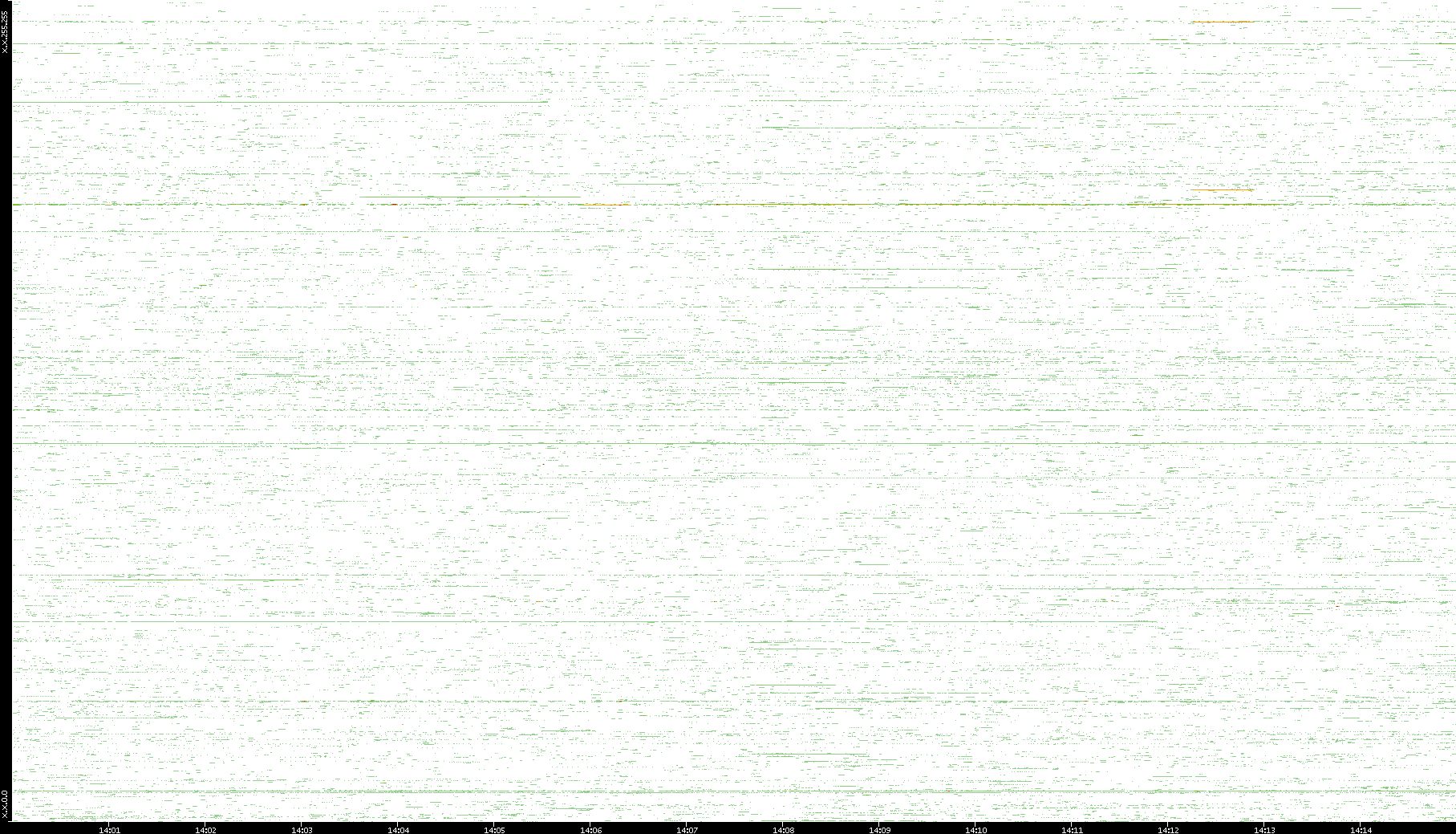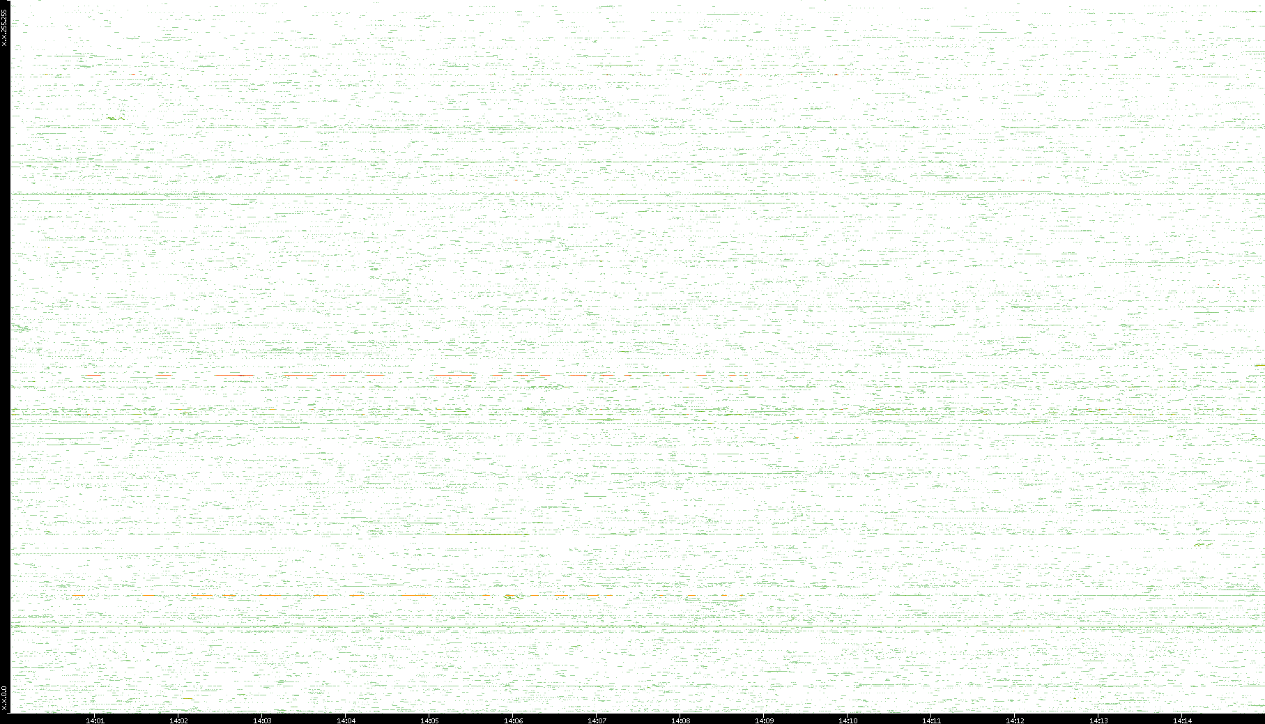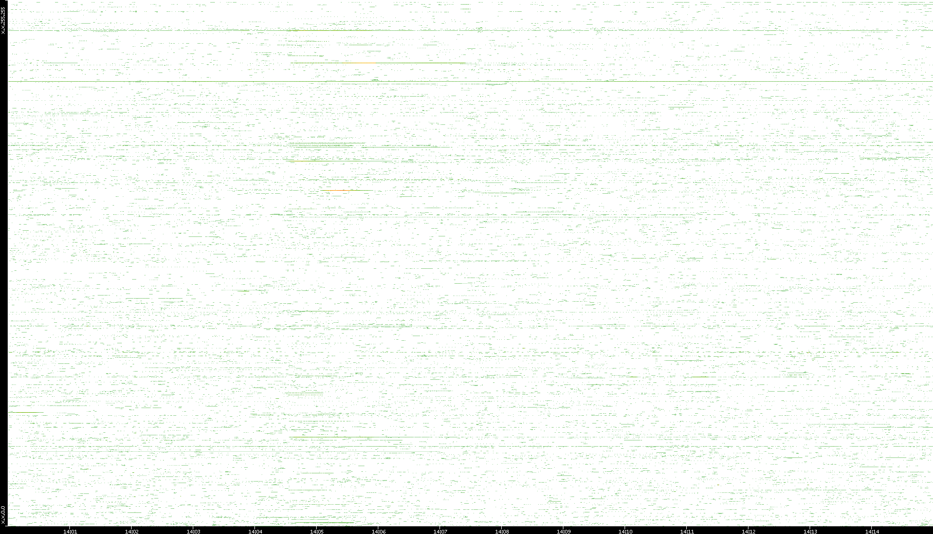 2009/07/14 Dest. IP vs. Time Dest. Port vs. Time Src. IP vs. Time Src. Port vs. Time Nb. of Packets vs. Time Throughput vs. Time Average Packet Size vs. Time Entropy of Port vs. Time