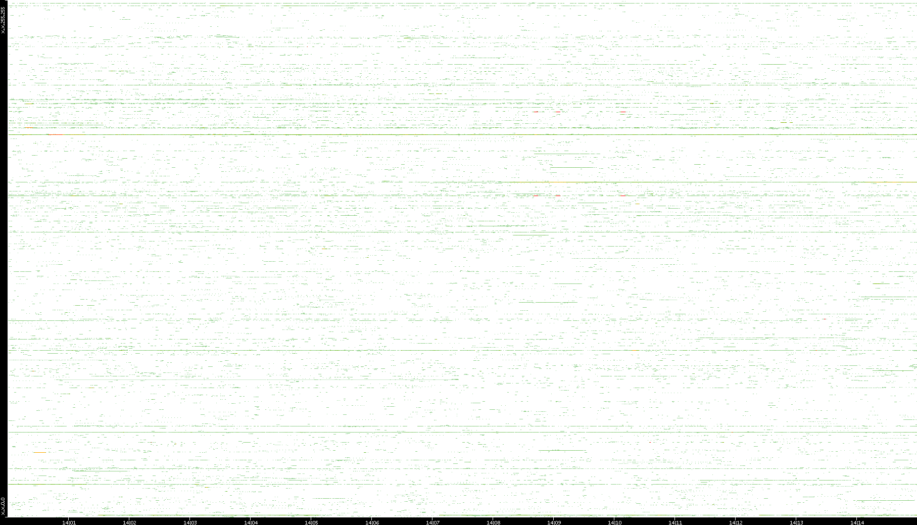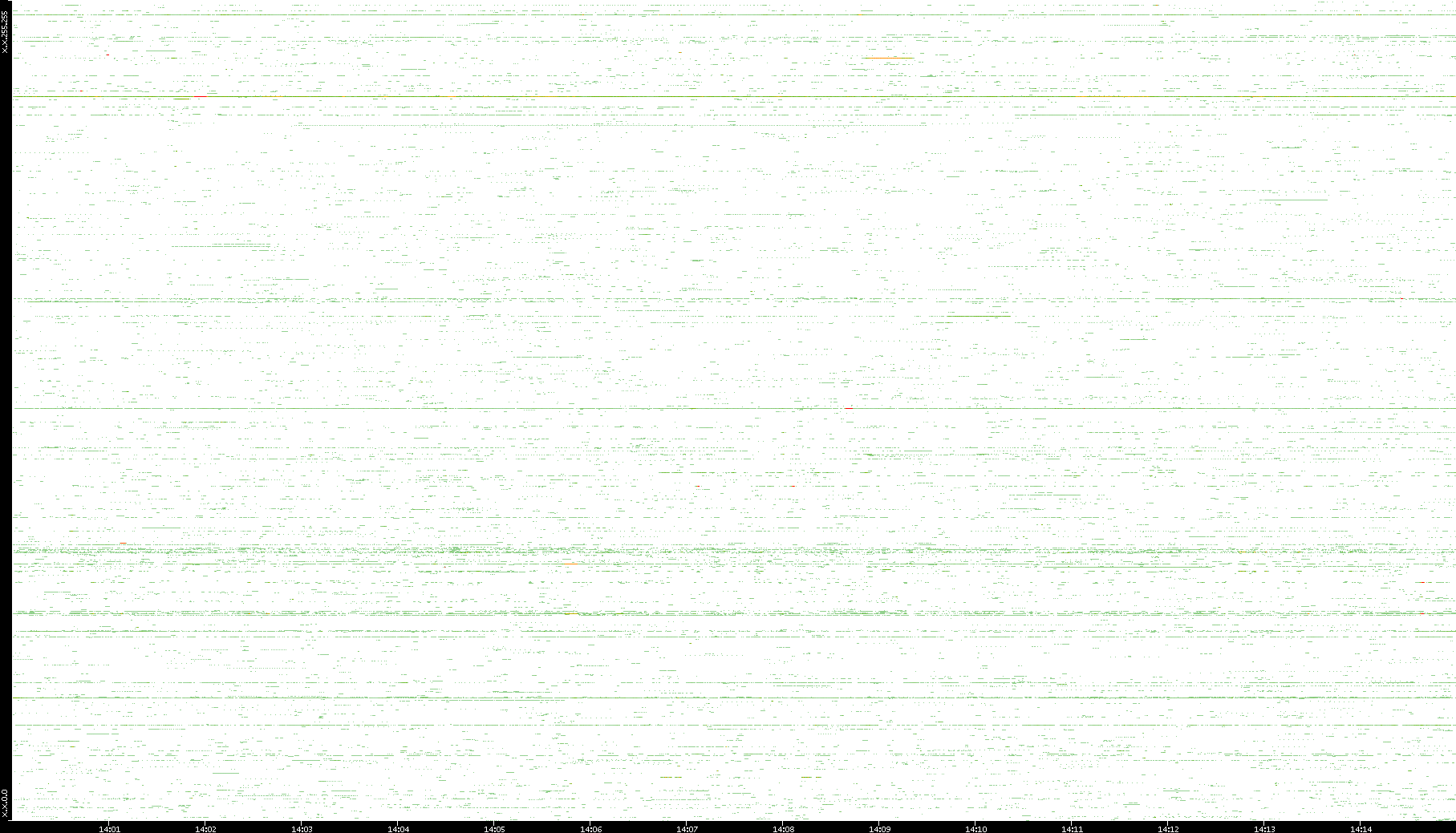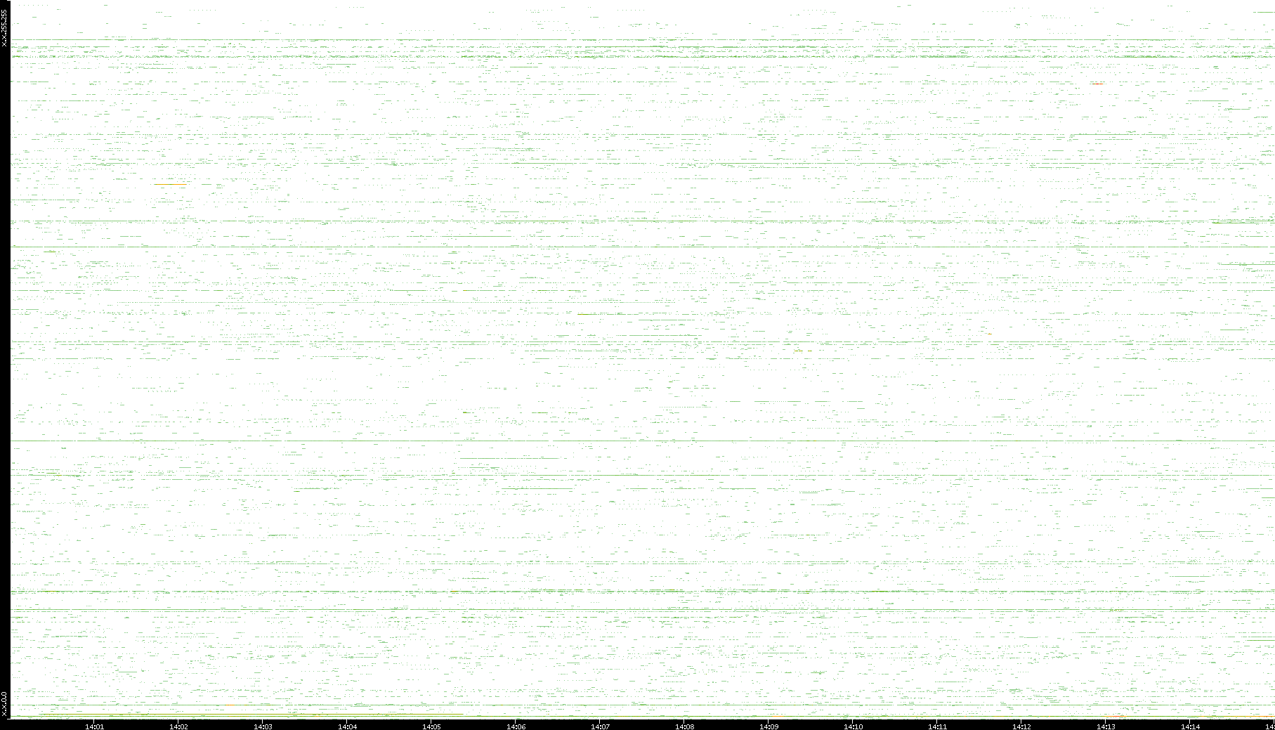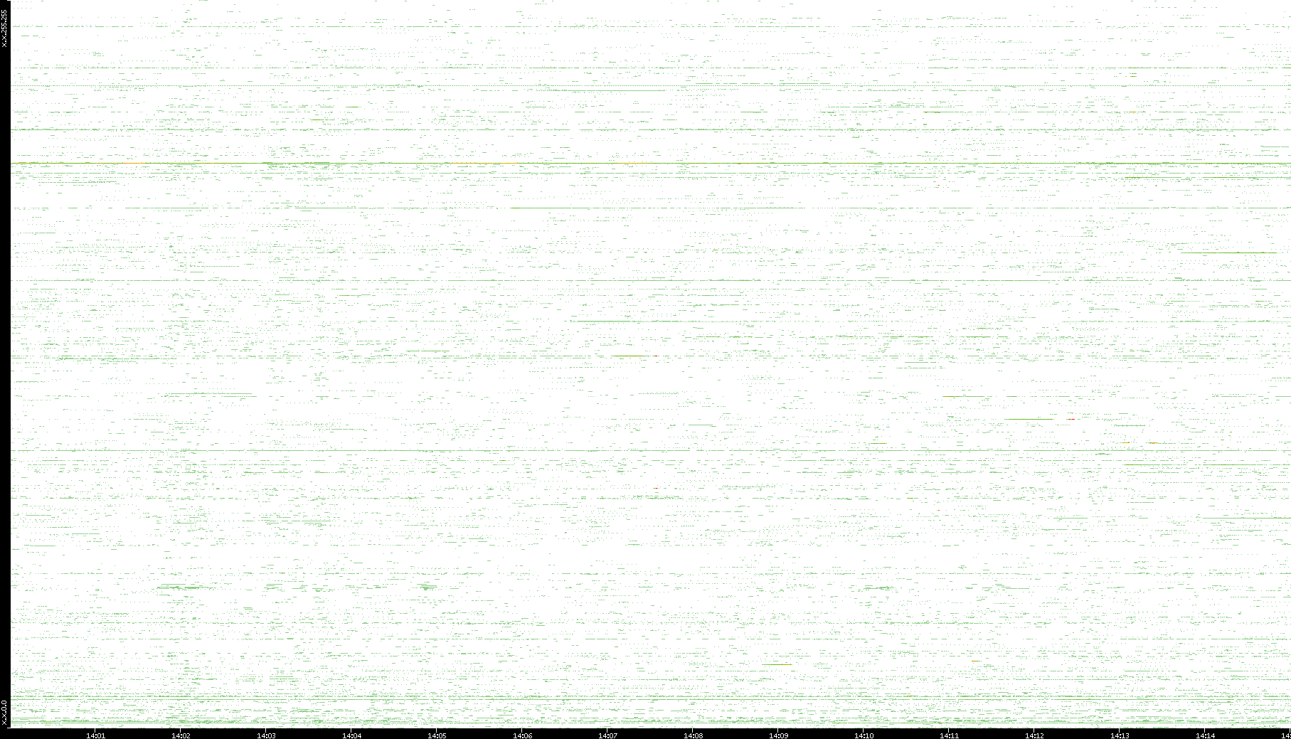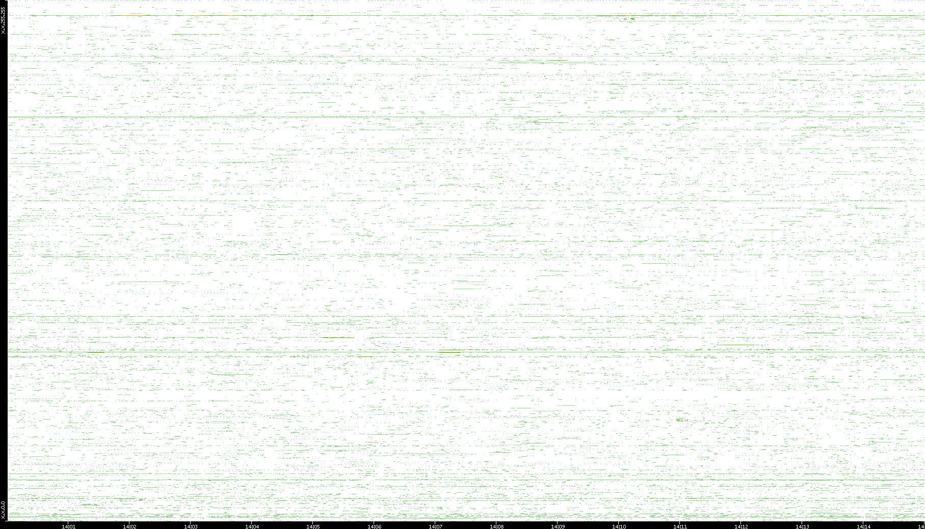 2009/07/14 Dest. IP vs. Time Dest. Port vs. Time Src. IP vs. Time Src. Port vs. Time Nb. of Packets vs. Time Throughput vs. Time Average Packet Size vs. Time Entropy of Port vs. Time