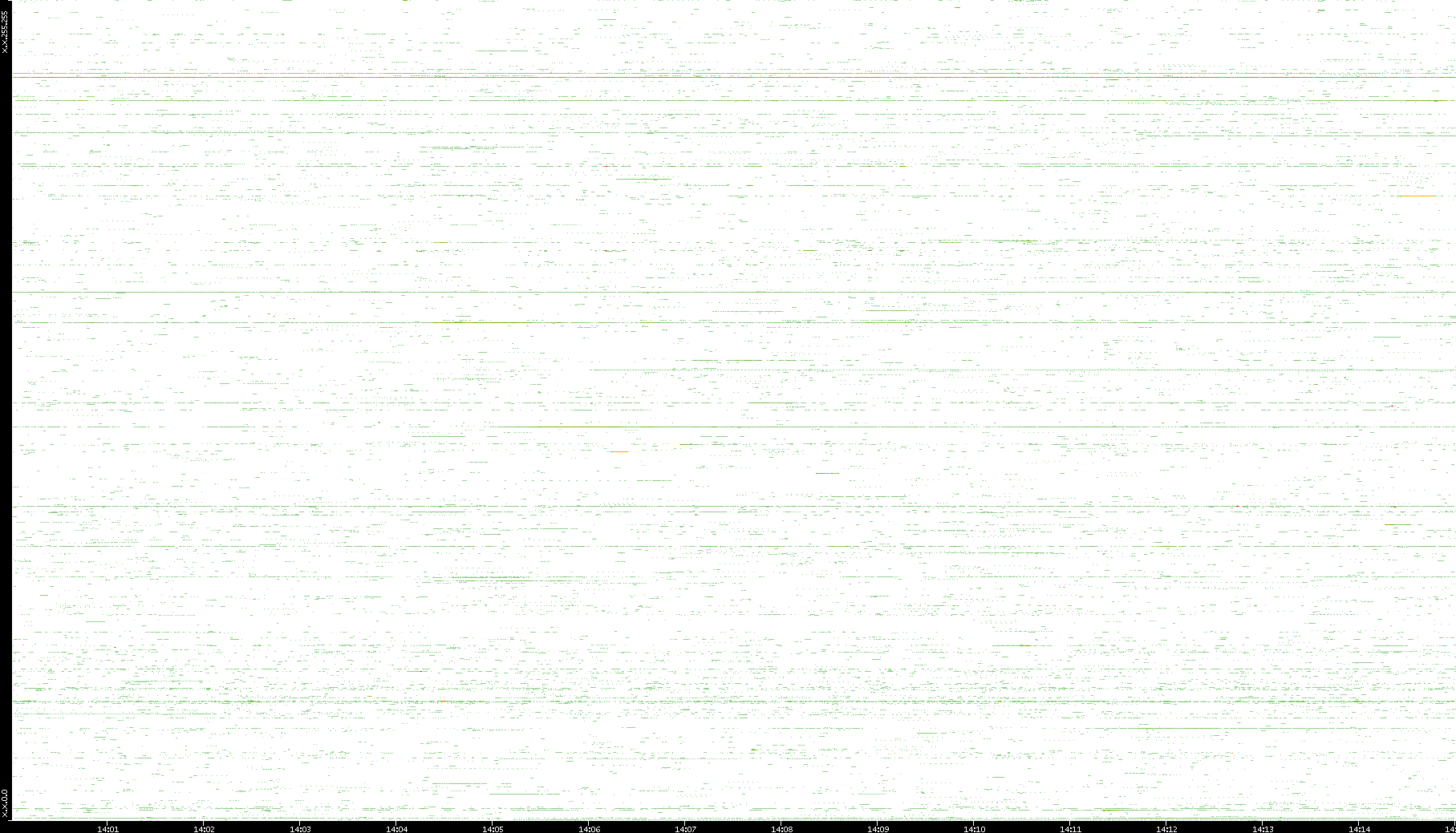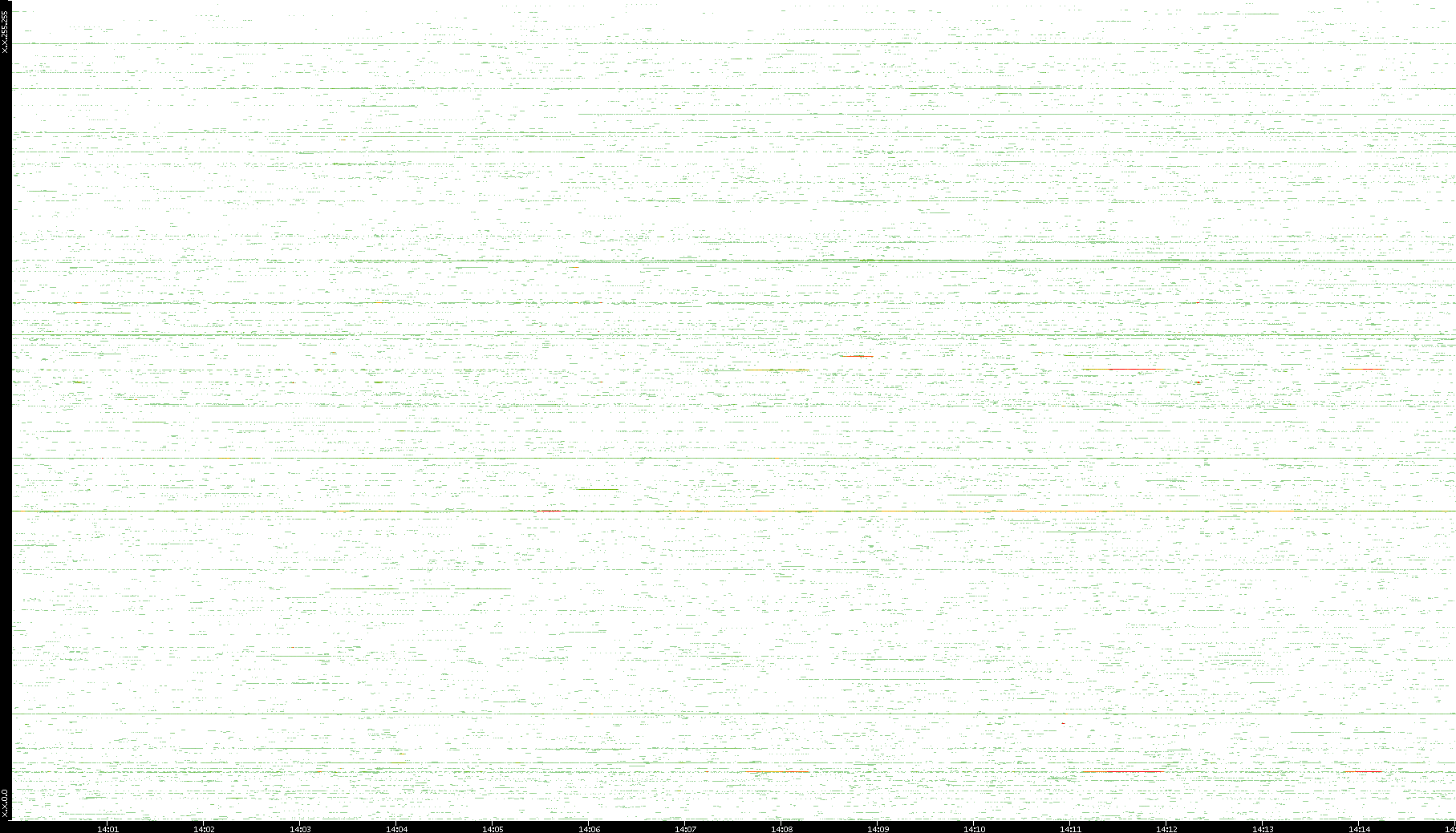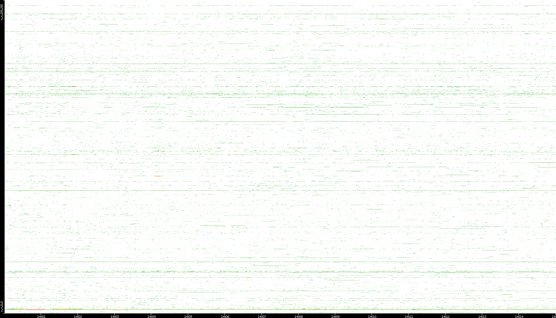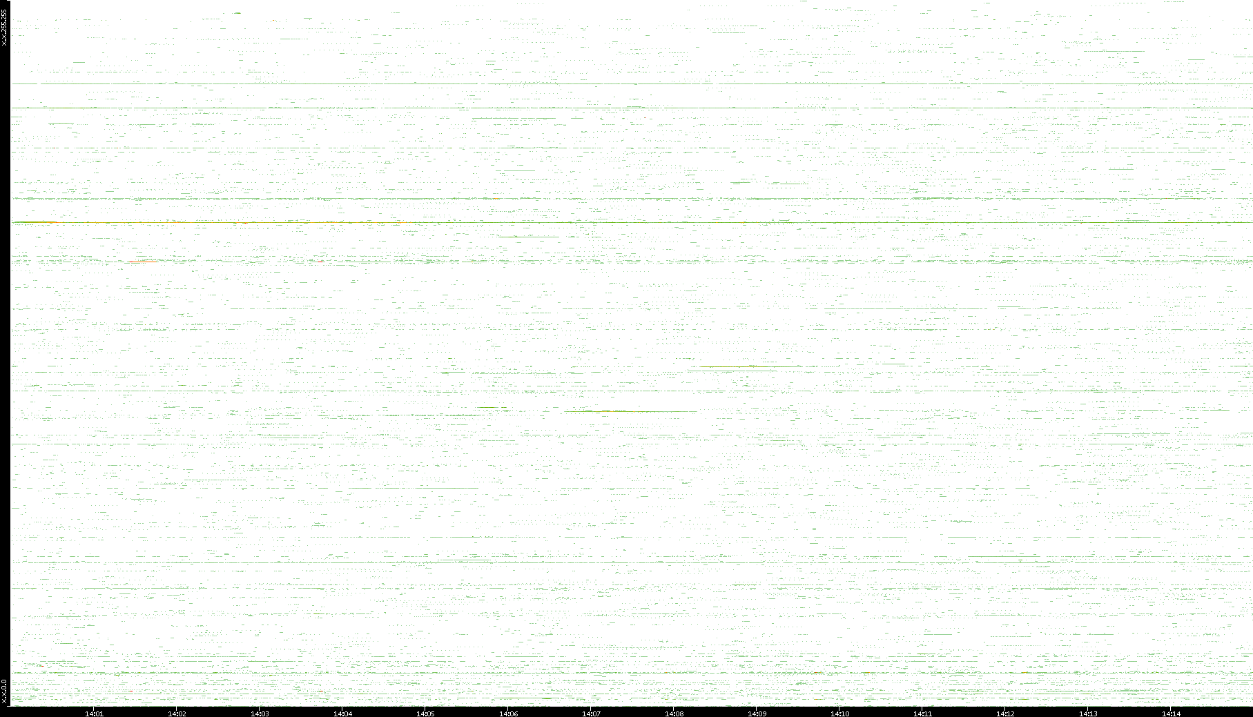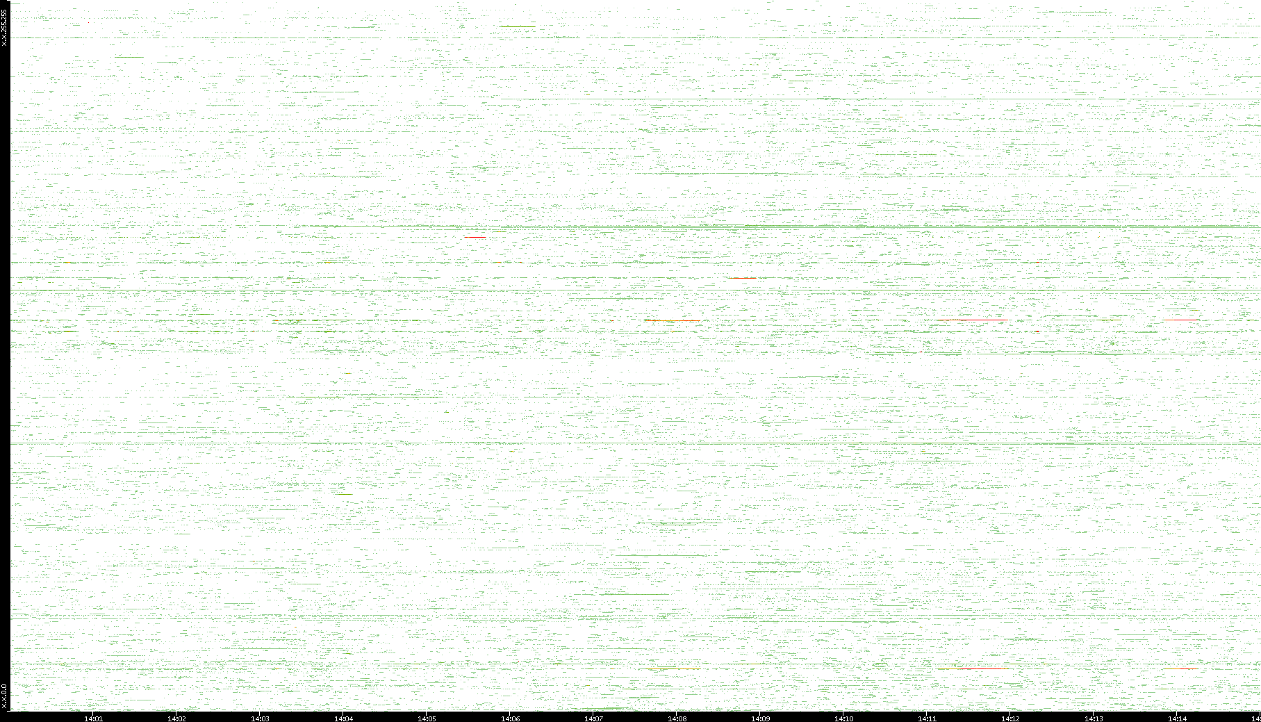 2009/07/14 Dest. IP vs. Time Dest. Port vs. Time Src. IP vs. Time Src. Port vs. Time Nb. of Packets vs. Time Throughput vs. Time Average Packet Size vs. Time Entropy of Port vs. Time