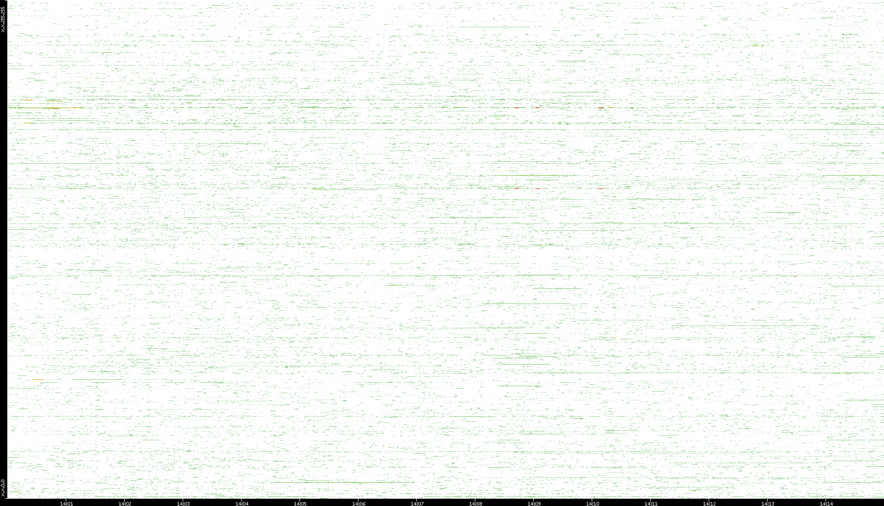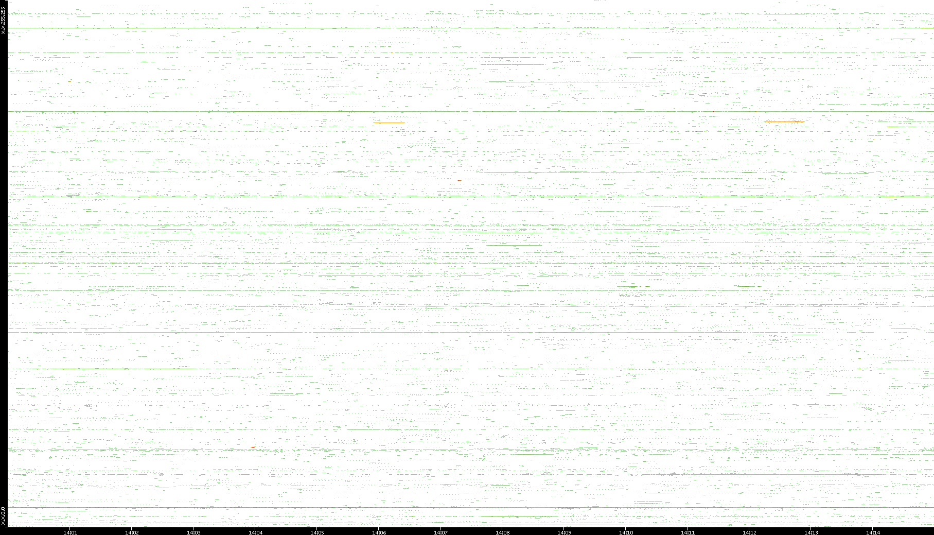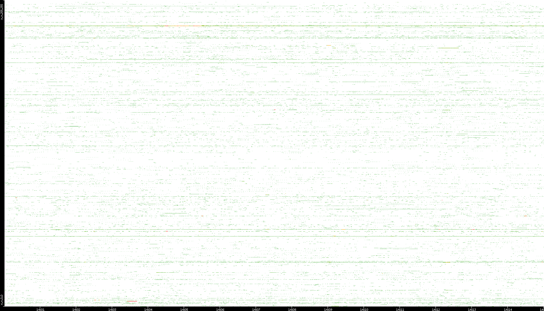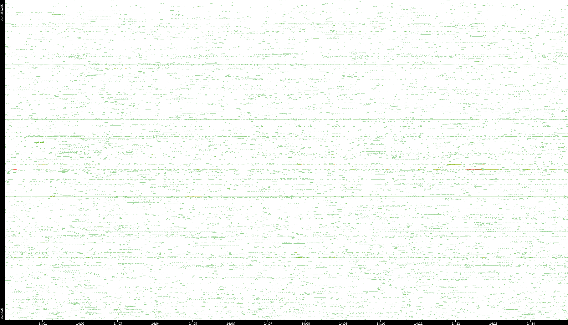 2009/07/14 Dest. IP vs. Time Dest. Port vs. Time Src. IP vs. Time Src. Port vs. Time Nb. of Packets vs. Time Throughput vs. Time Average Packet Size vs. Time Entropy of Port vs. Time