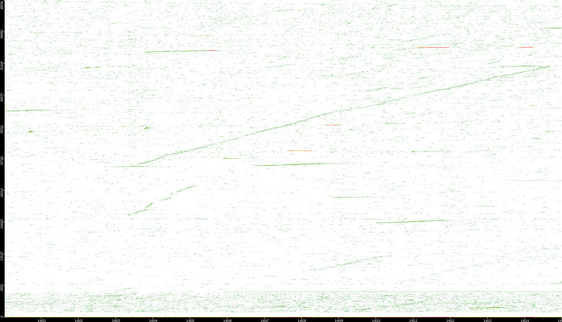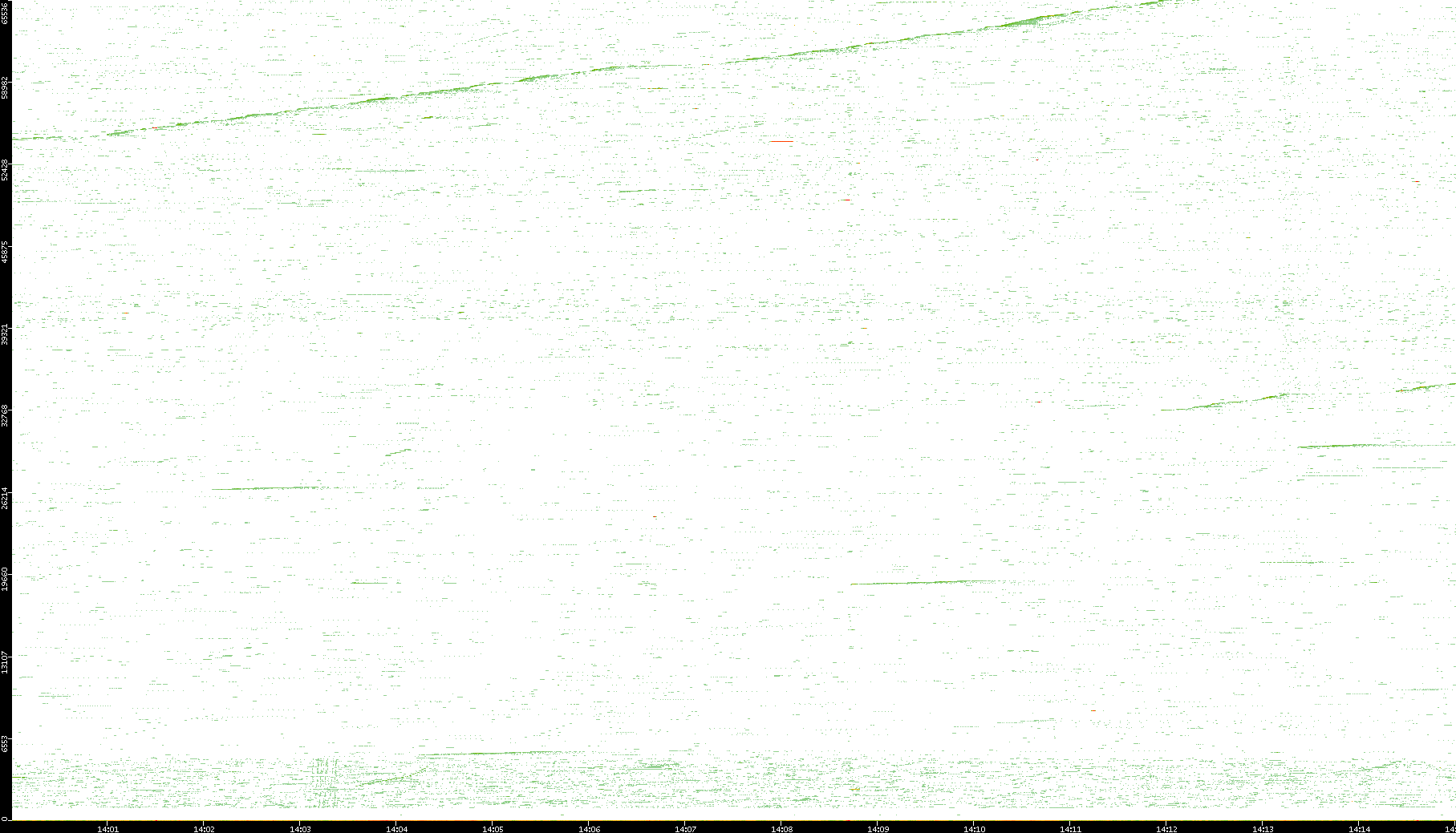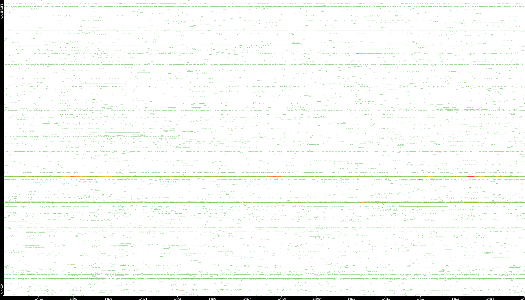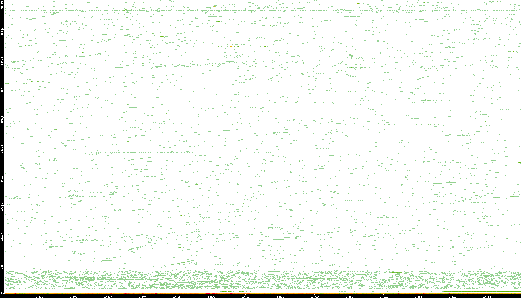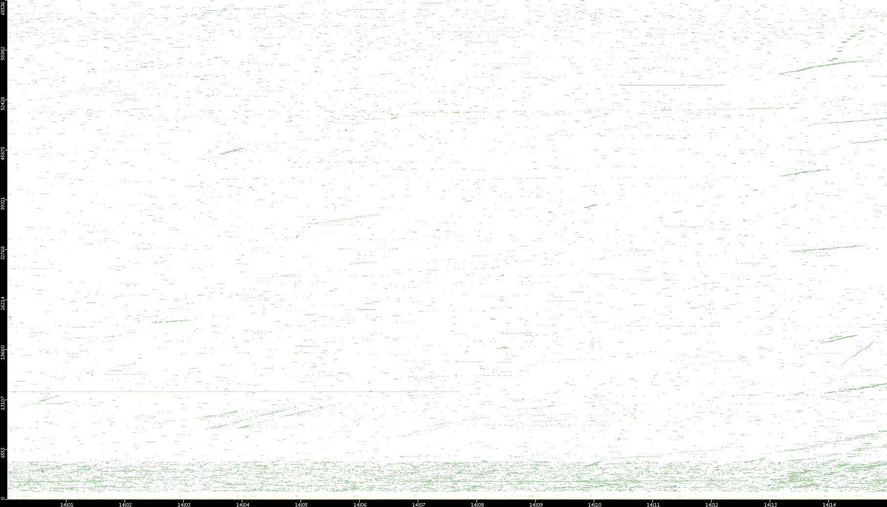 2009/07/14 Dest. IP vs. Time Dest. Port vs. Time Src. IP vs. Time Src. Port vs. Time Nb. of Packets vs. Time Throughput vs. Time Average Packet Size vs. Time Entropy of Port vs. Time