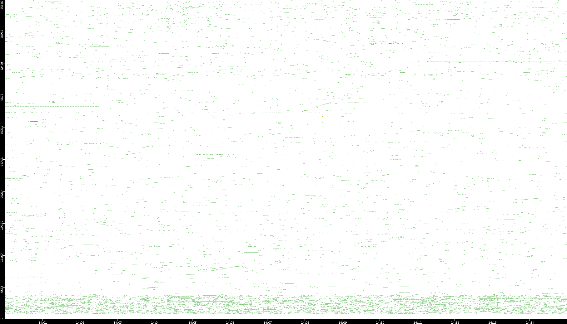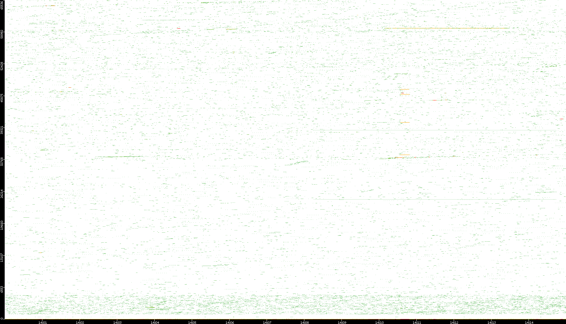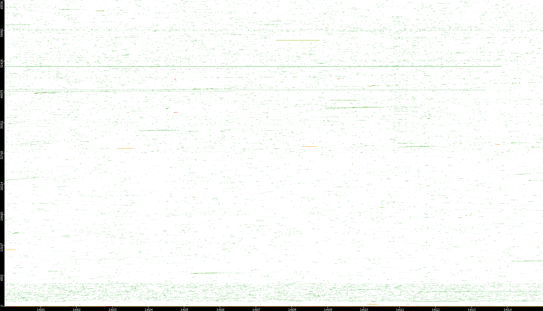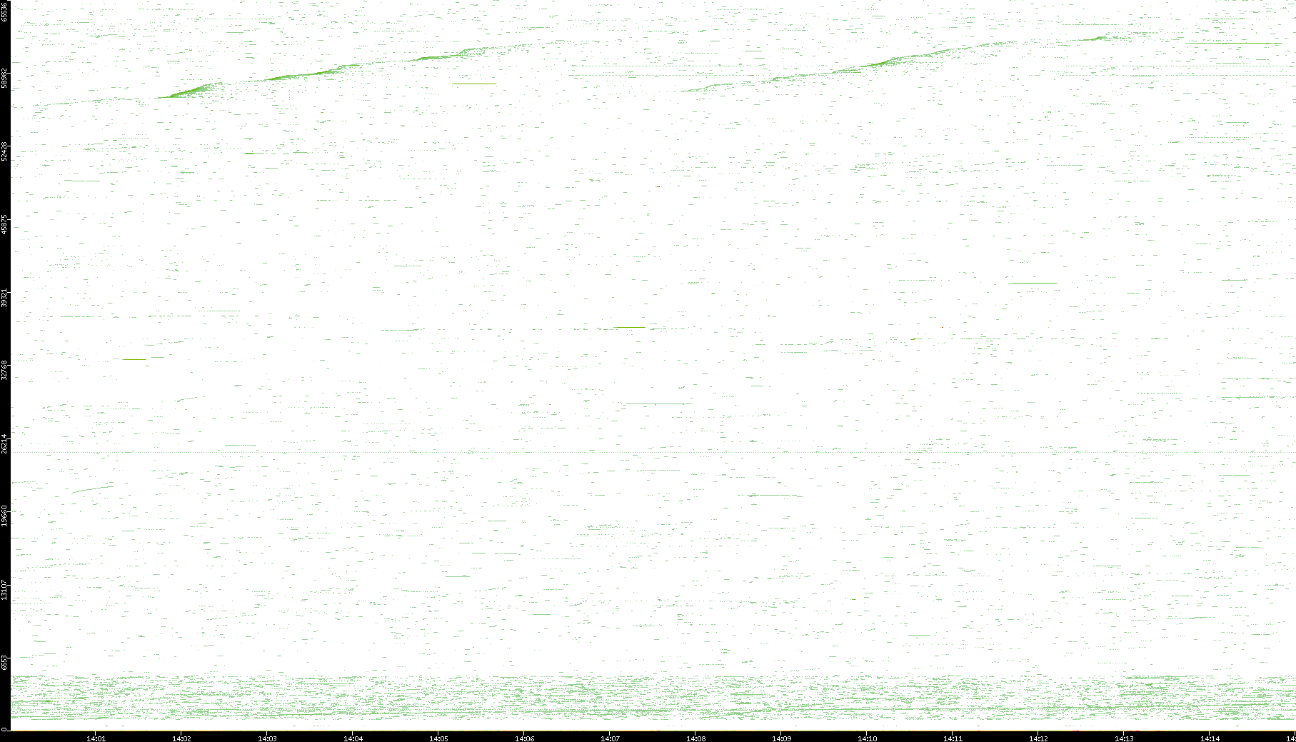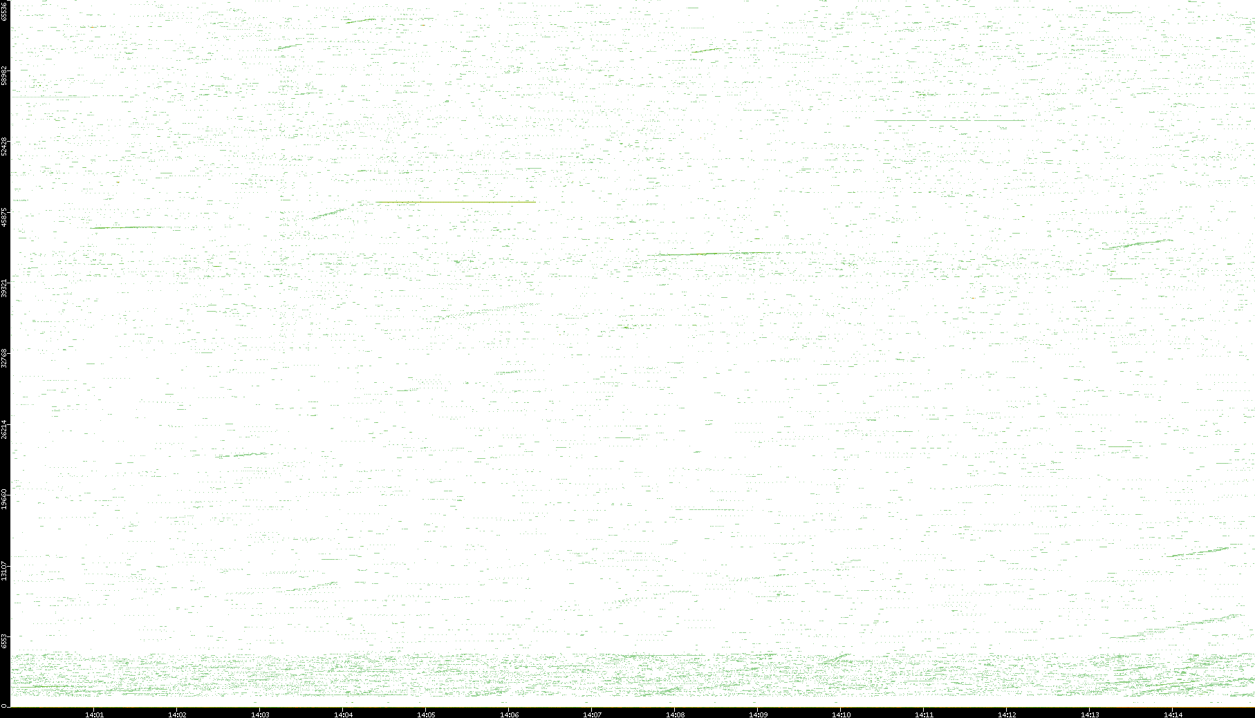 2009/07/14 Dest. IP vs. Time Dest. Port vs. Time Src. IP vs. Time Src. Port vs. Time Nb. of Packets vs. Time Throughput vs. Time Average Packet Size vs. Time Entropy of Port vs. Time