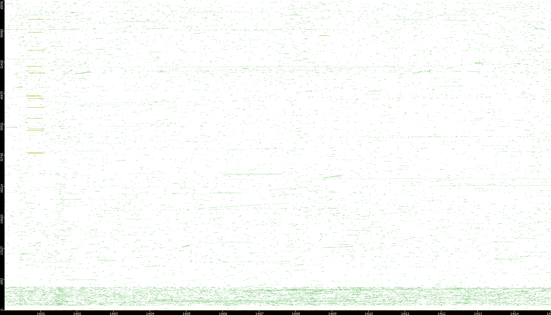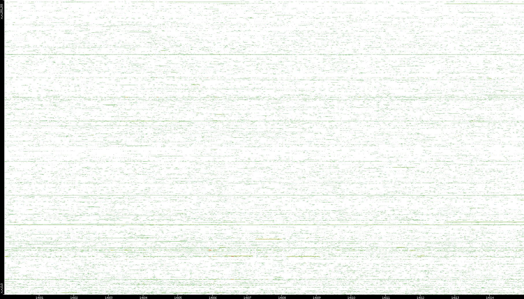 2009/07/13 Dest. IP vs. Time Dest. Port vs. Time Src. IP vs. Time Src. Port vs. Time Nb. of Packets vs. Time Throughput vs. Time Average Packet Size vs. Time Entropy of Port vs. Time