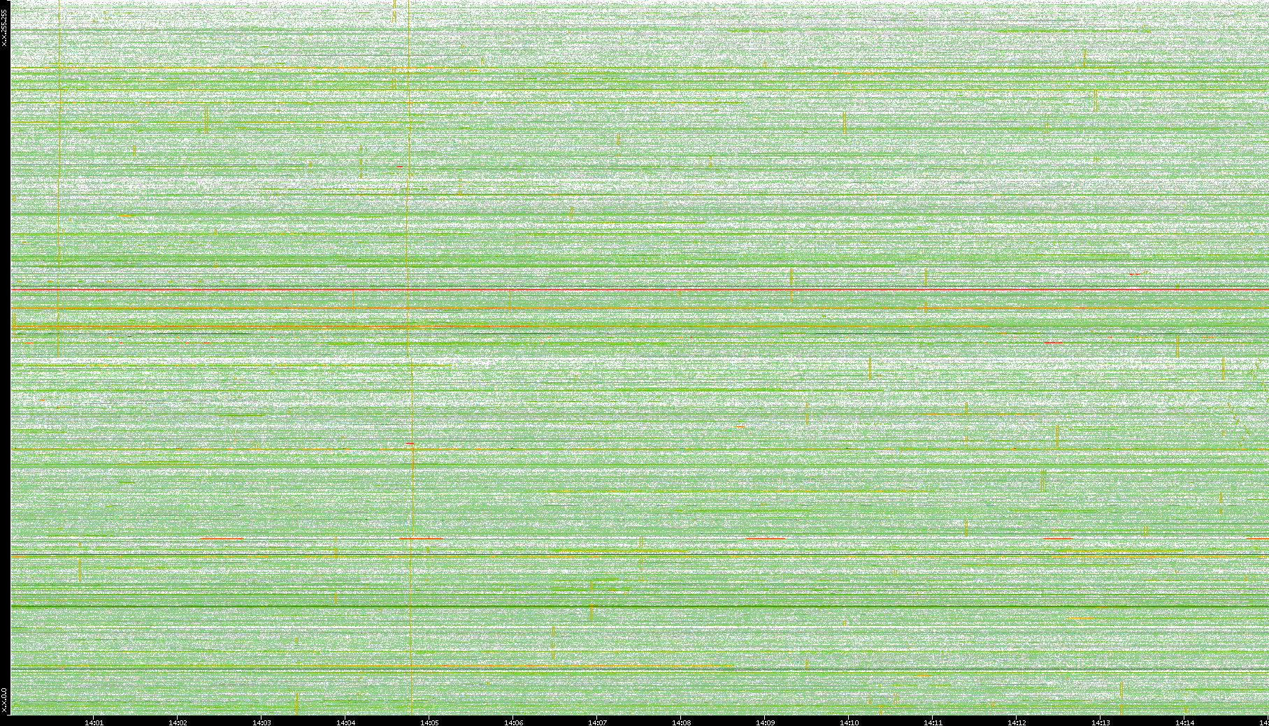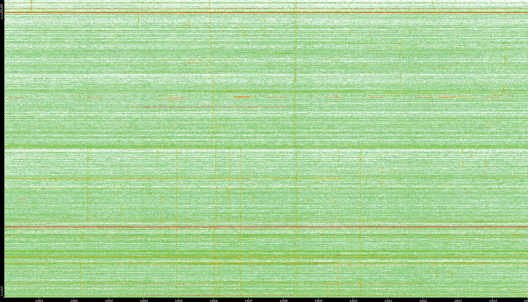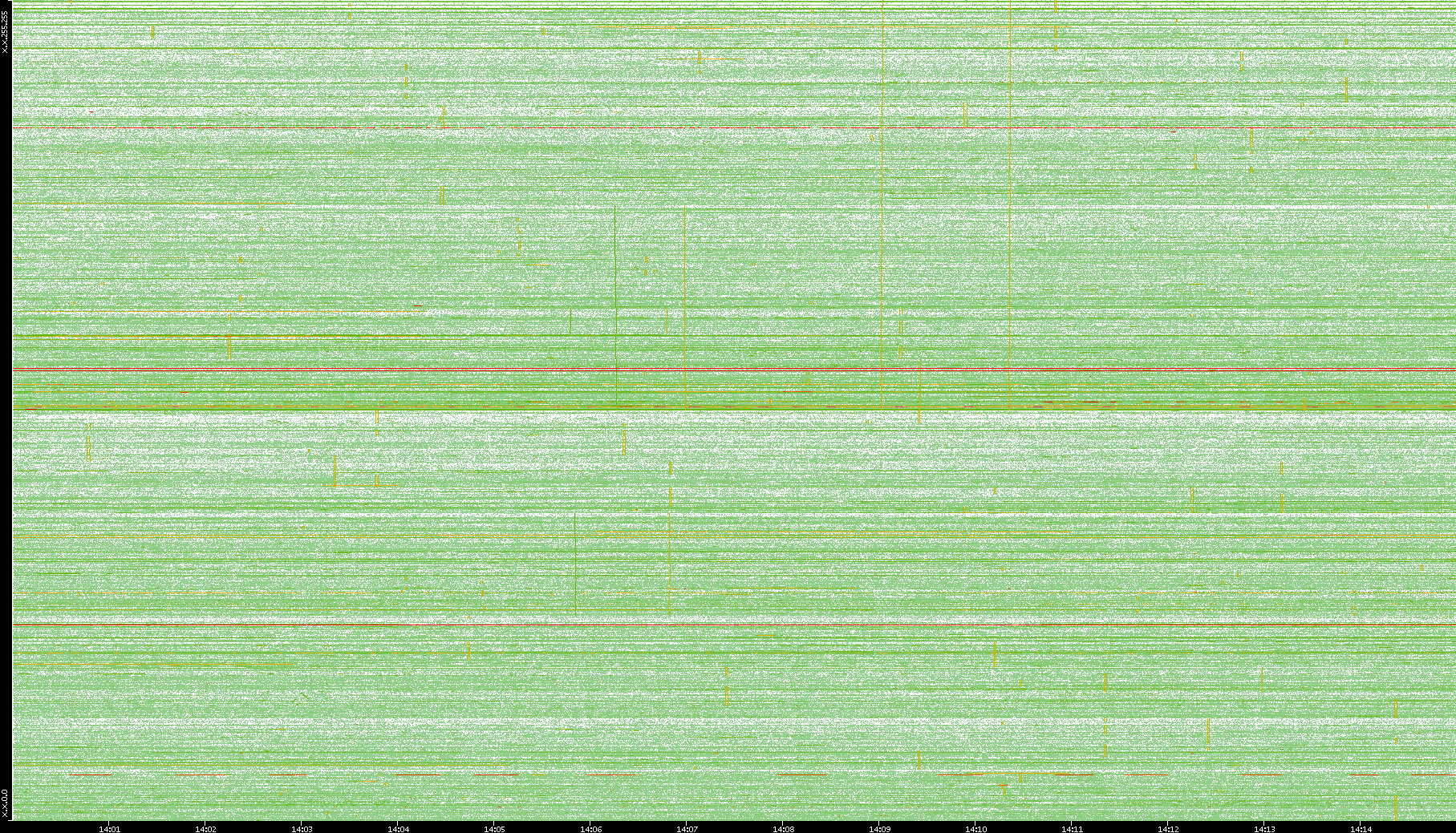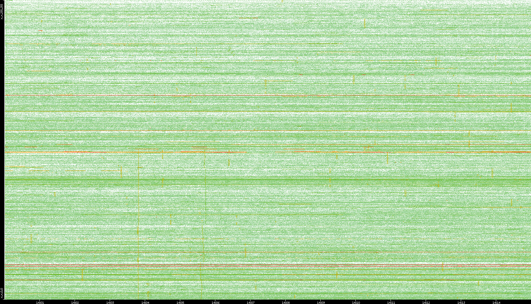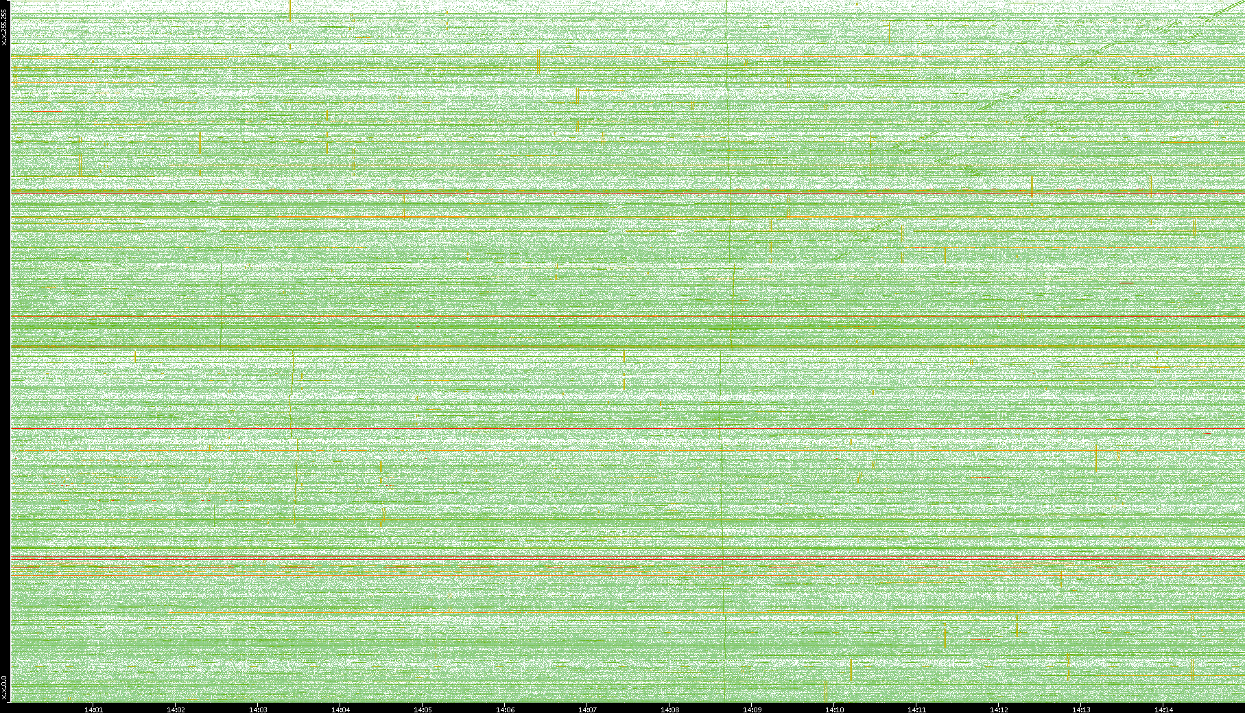 2009/09/14 Dest. IP vs. Time Dest. Port vs. Time Src. IP vs. Time Src. Port vs. Time Nb. of Packets vs. Time Throughput vs. Time Average Packet Size vs. Time Entropy of Port vs. Time