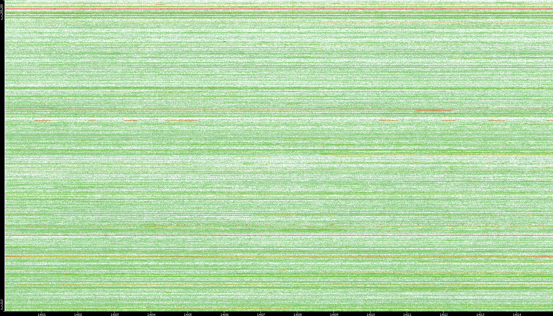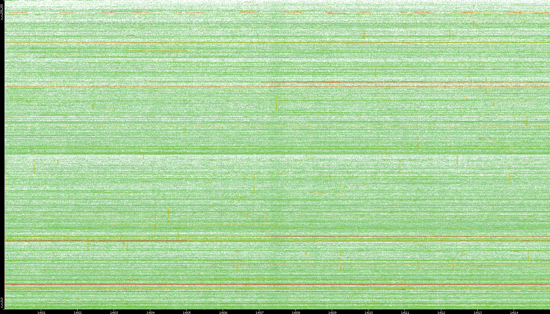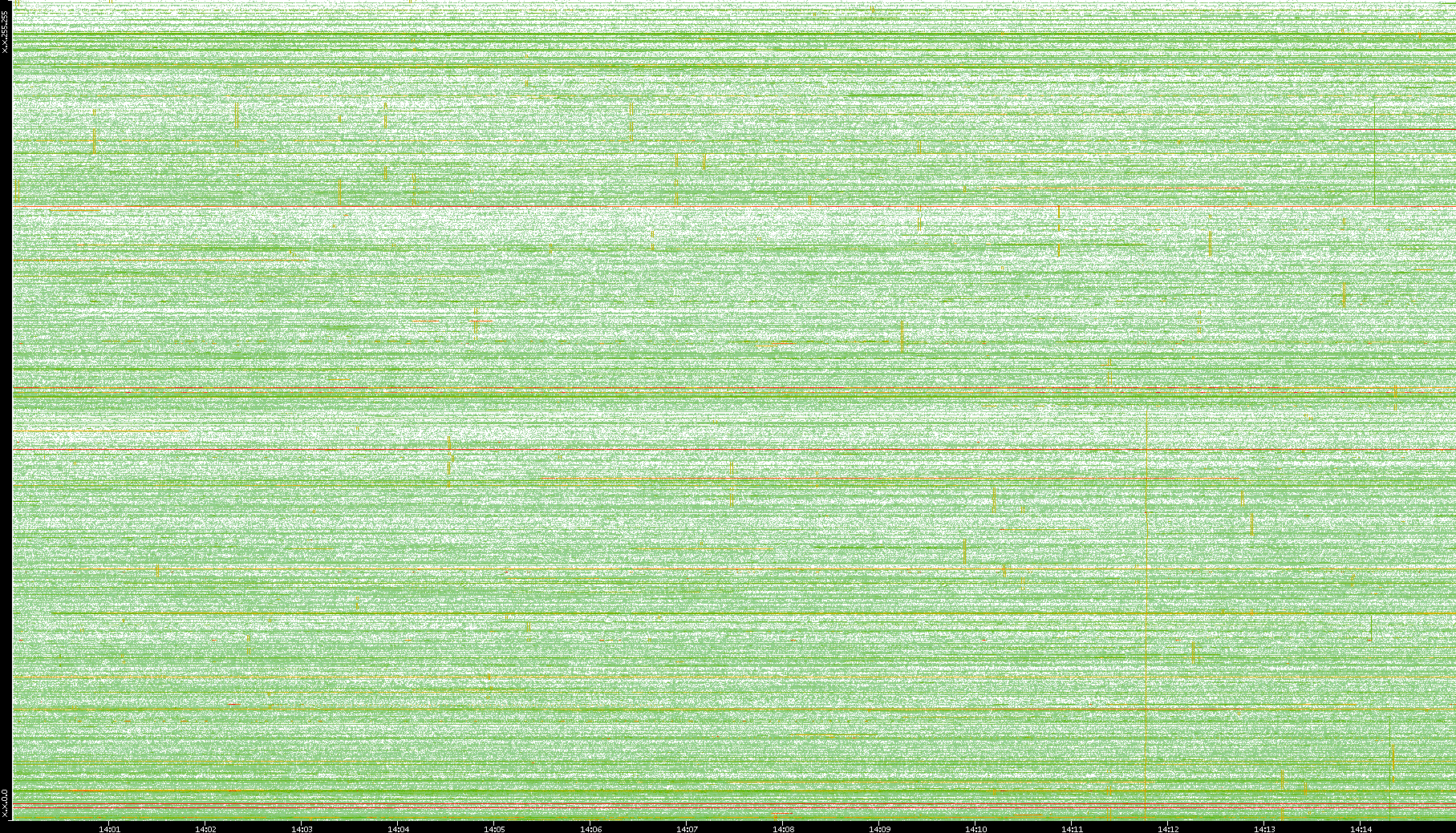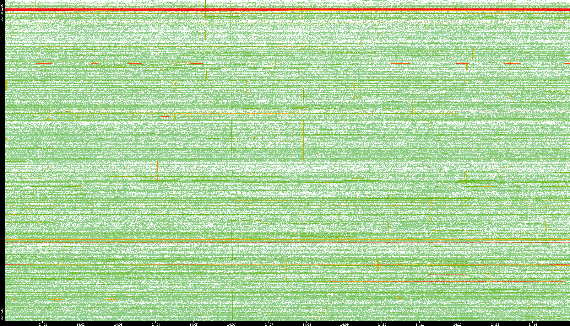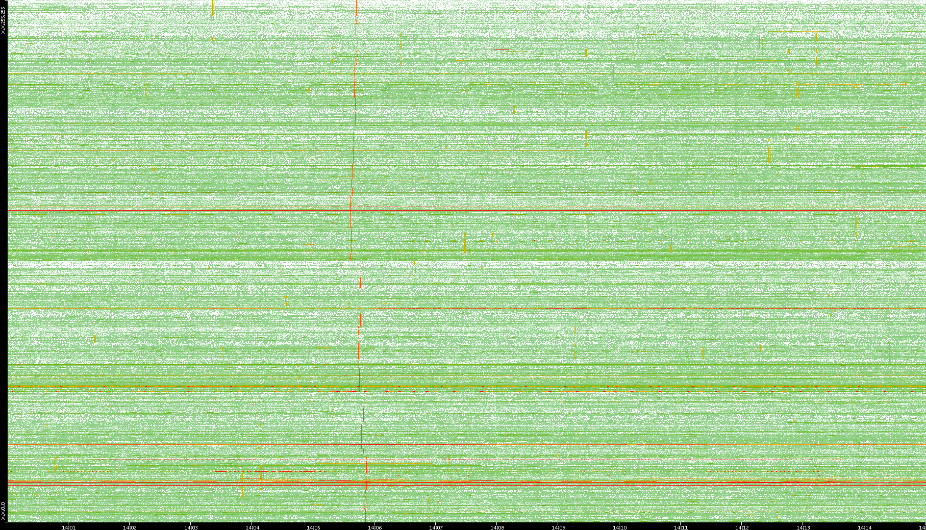 2009/09/14 Dest. IP vs. Time Dest. Port vs. Time Src. IP vs. Time Src. Port vs. Time Nb. of Packets vs. Time Throughput vs. Time Average Packet Size vs. Time Entropy of Port vs. Time