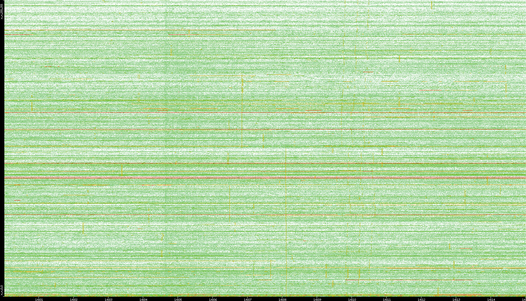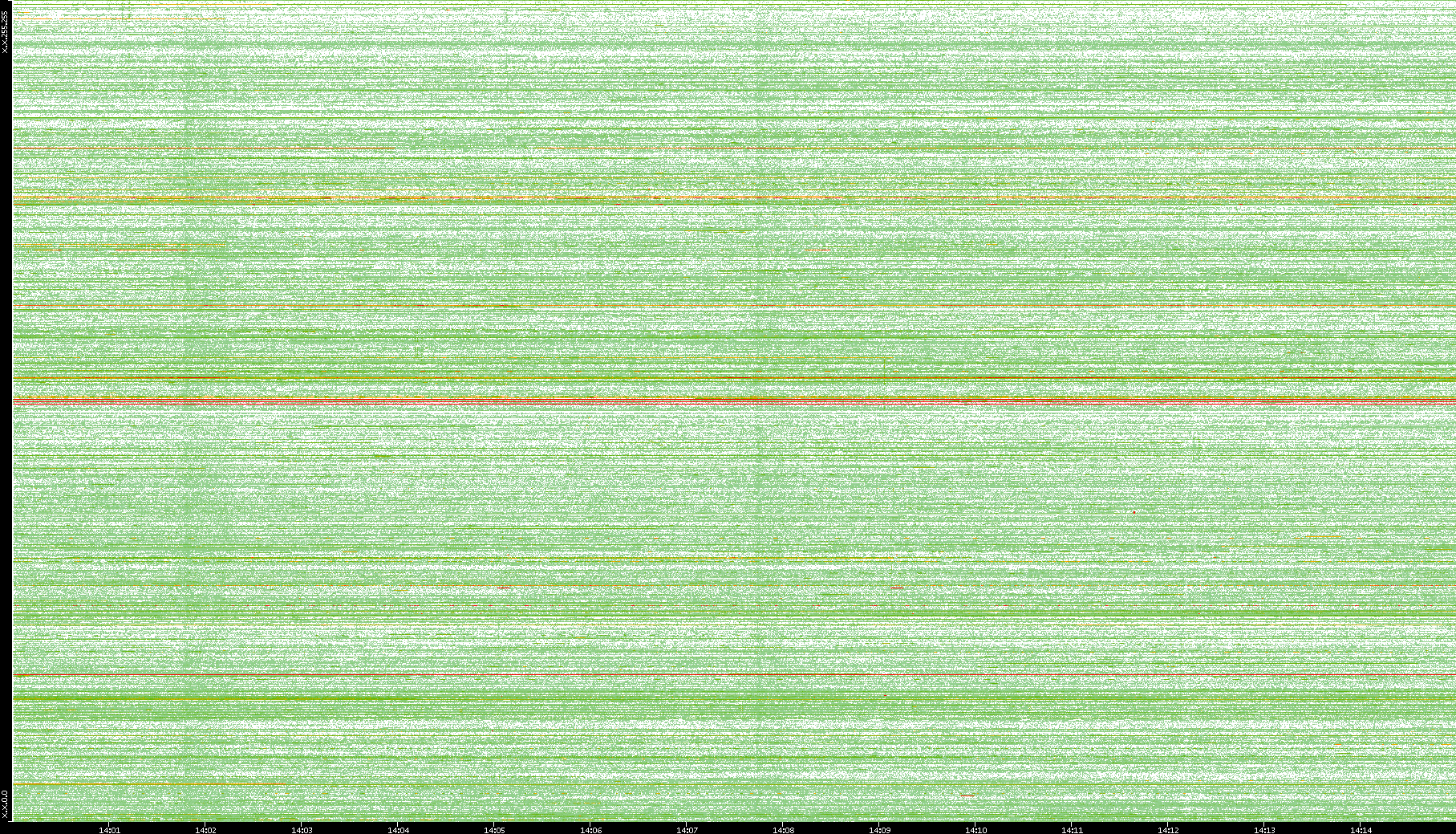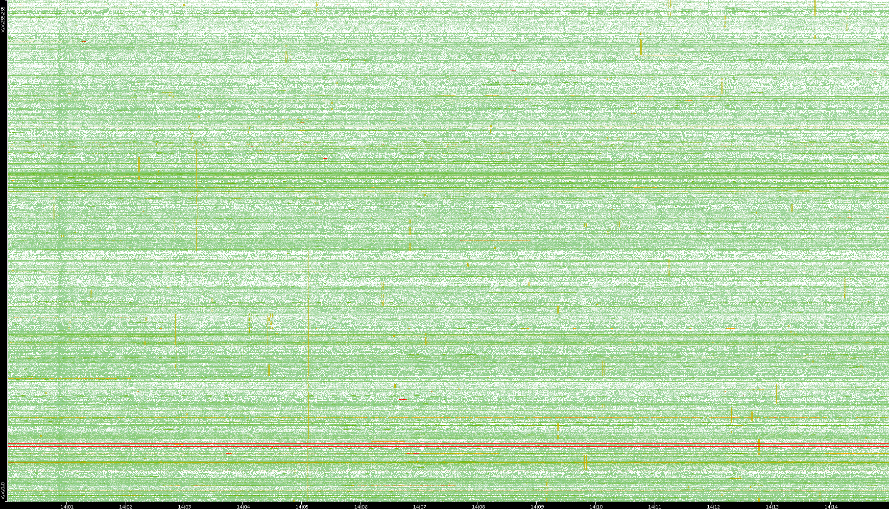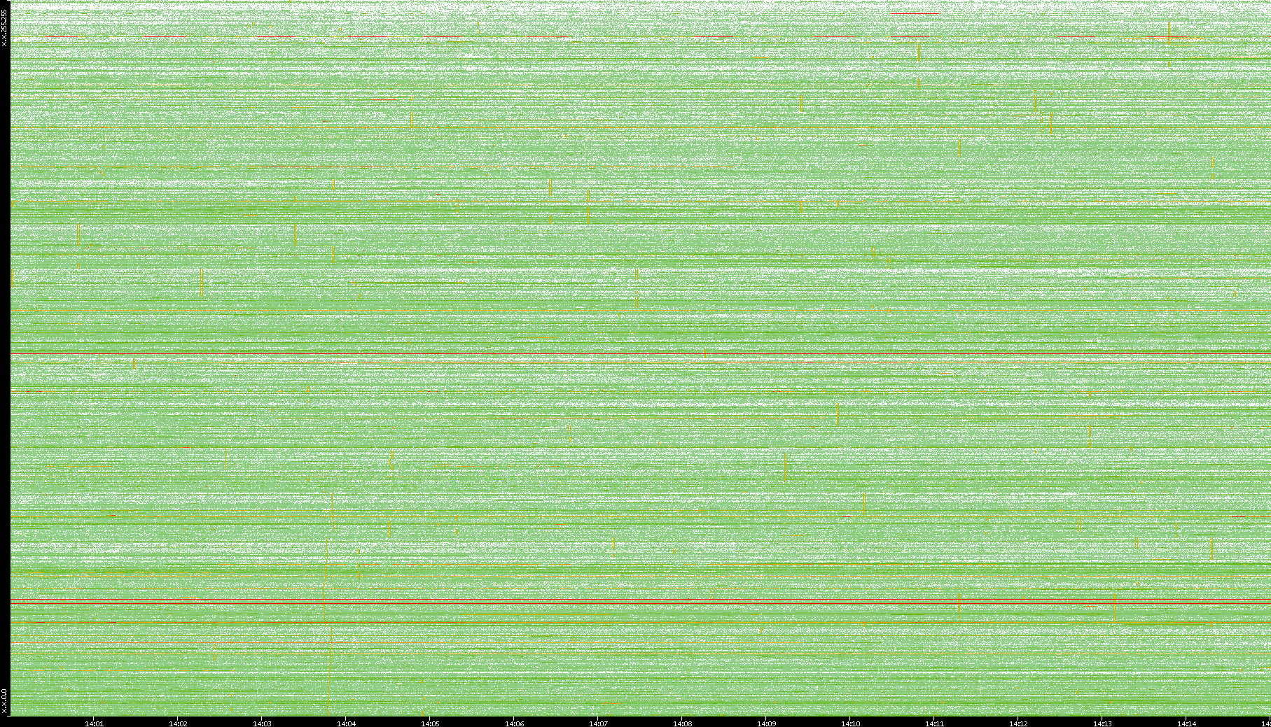 2009/09/14 Dest. IP vs. Time Dest. Port vs. Time Src. IP vs. Time Src. Port vs. Time Nb. of Packets vs. Time Throughput vs. Time Average Packet Size vs. Time Entropy of Port vs. Time