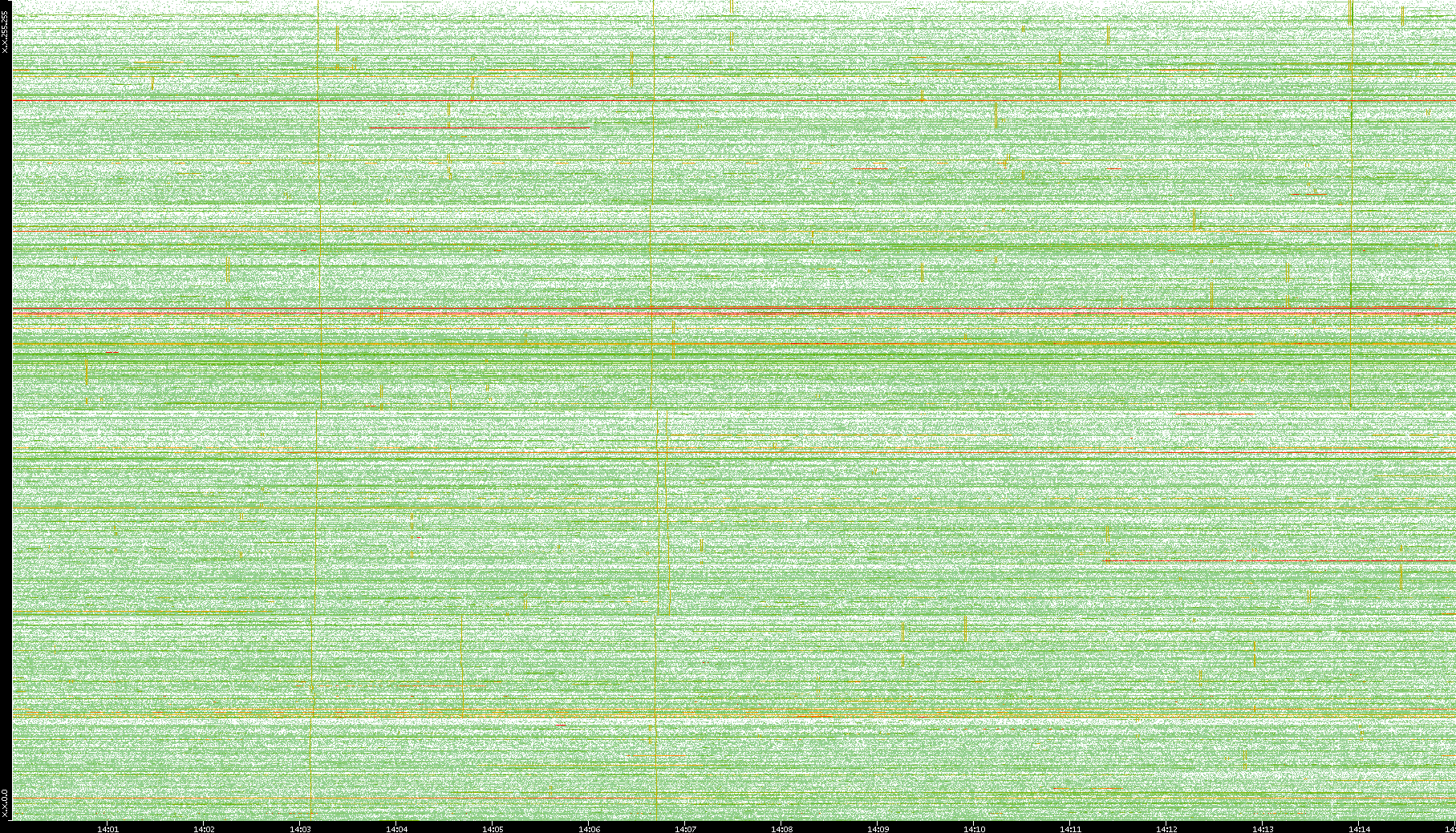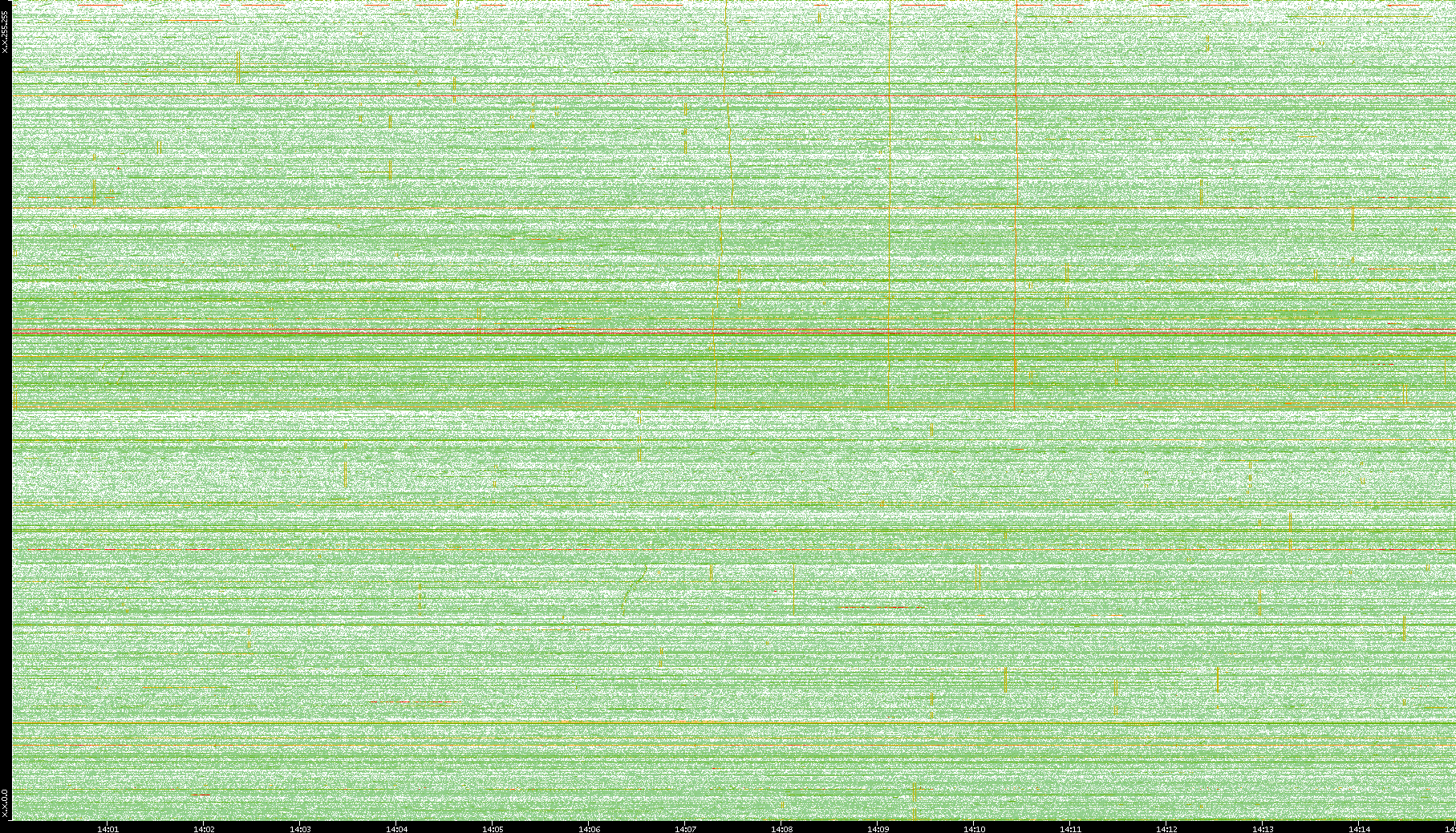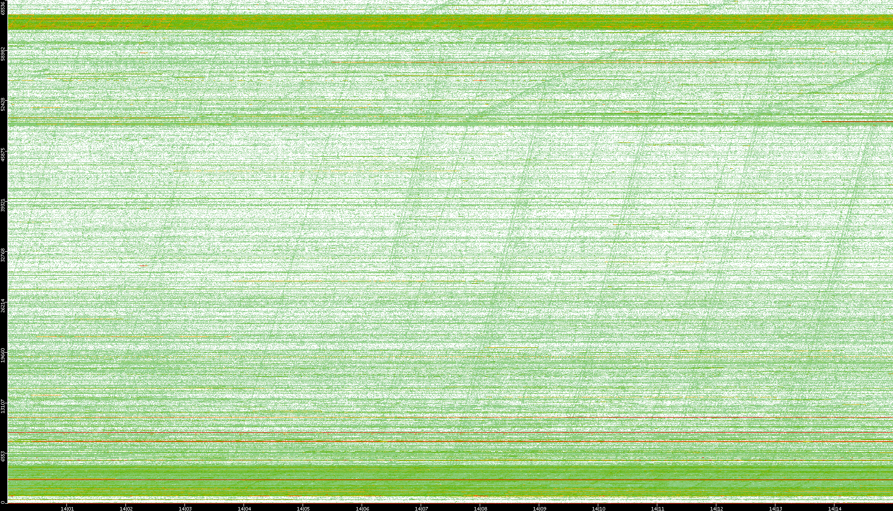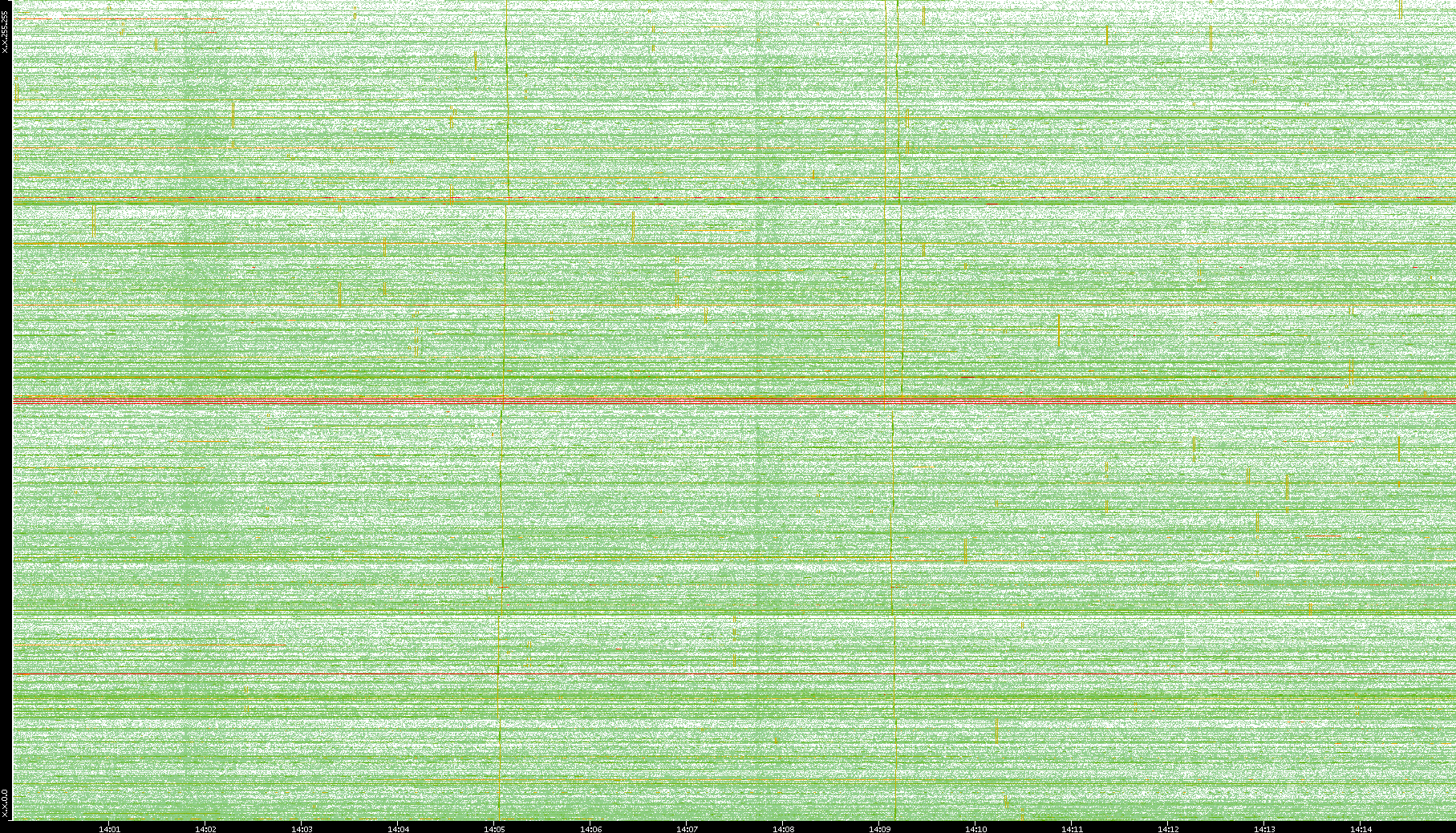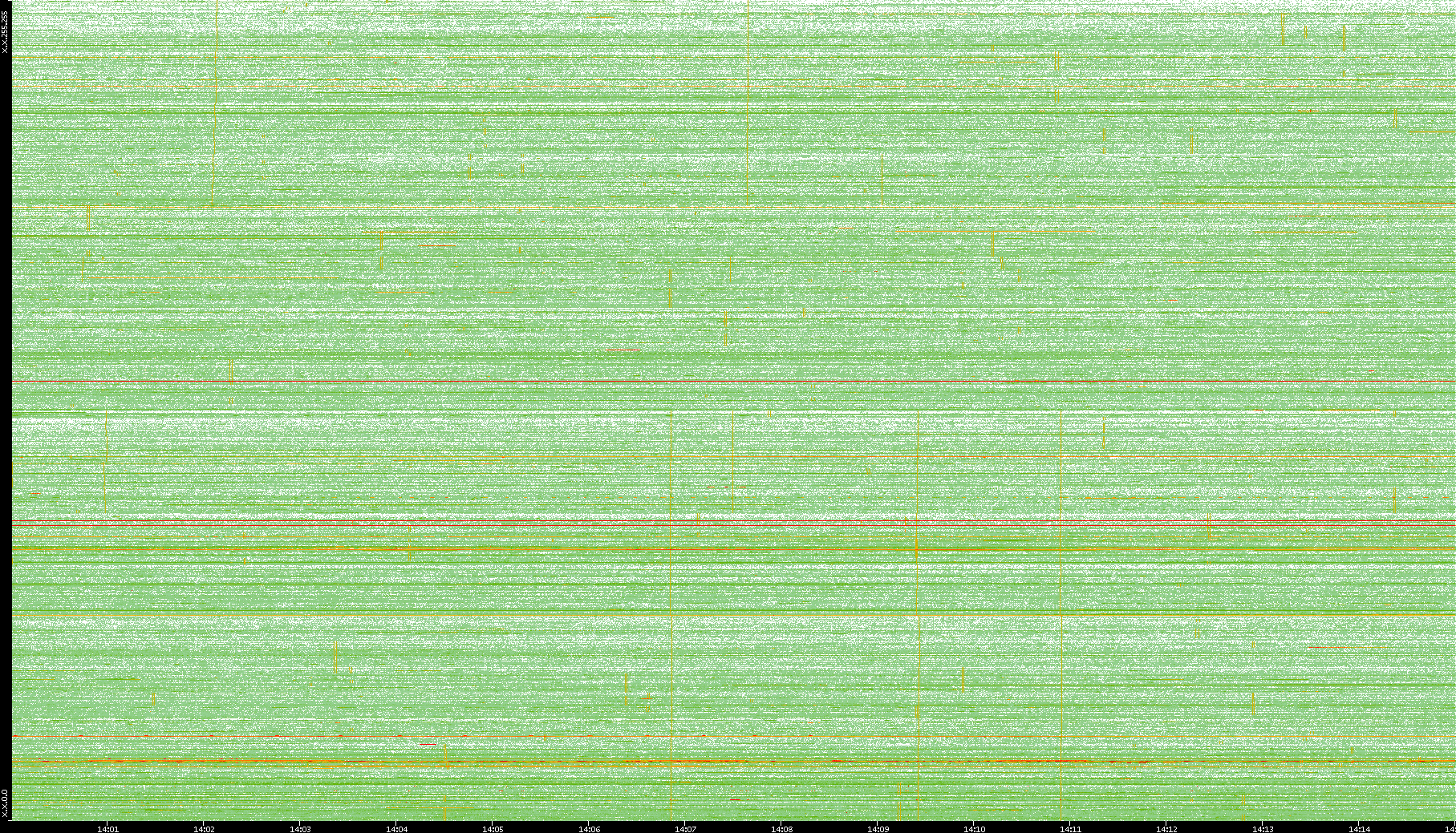 2009/09/14 Dest. IP vs. Time Dest. Port vs. Time Src. IP vs. Time Src. Port vs. Time Nb. of Packets vs. Time Throughput vs. Time Average Packet Size vs. Time Entropy of Port vs. Time