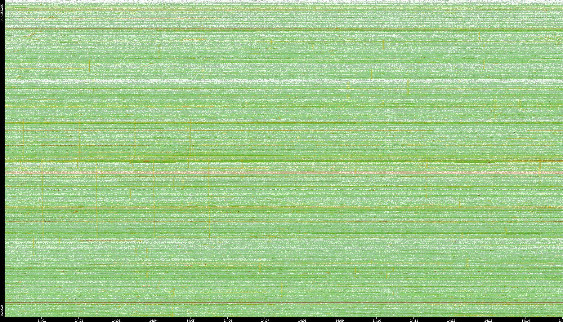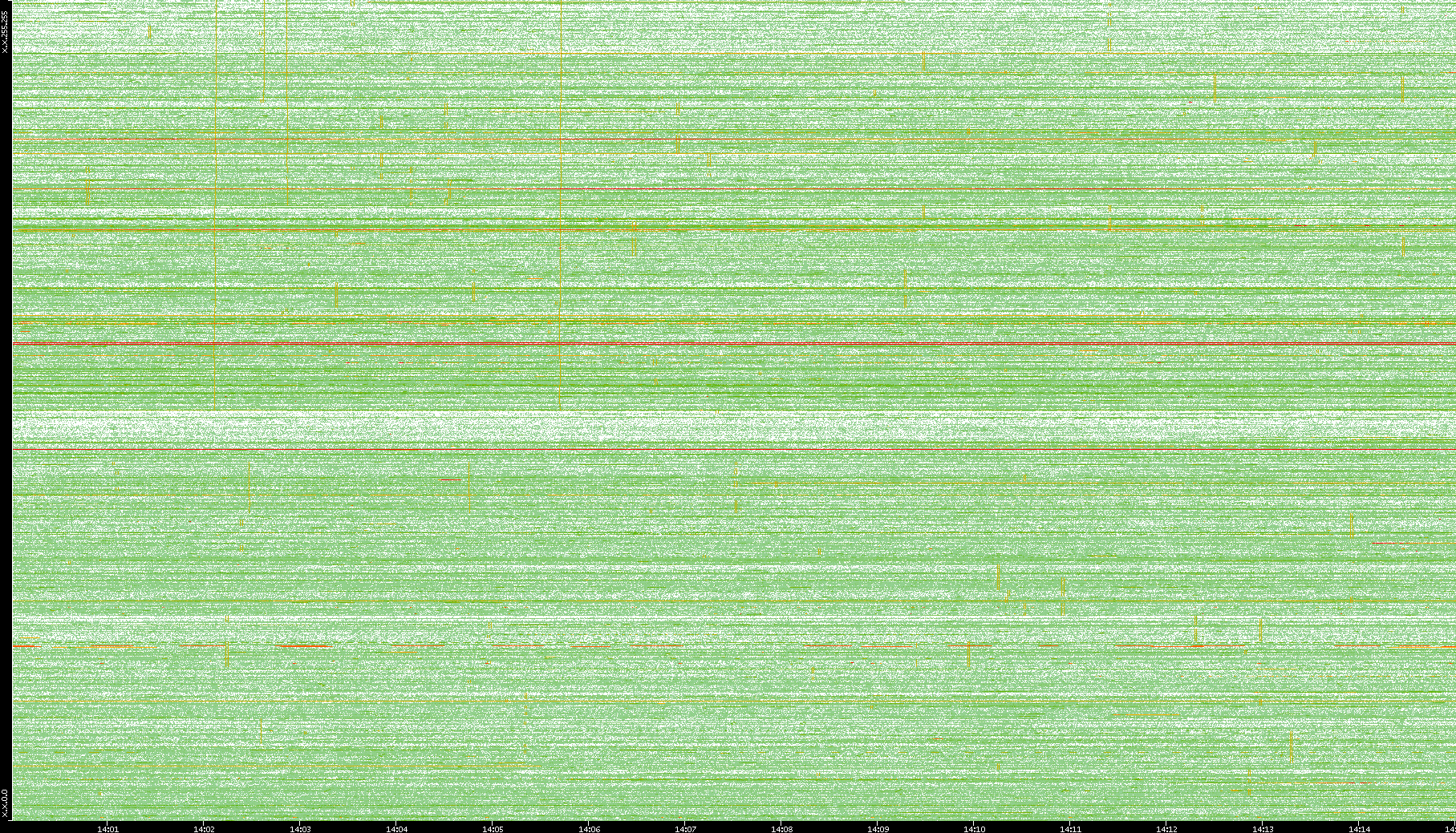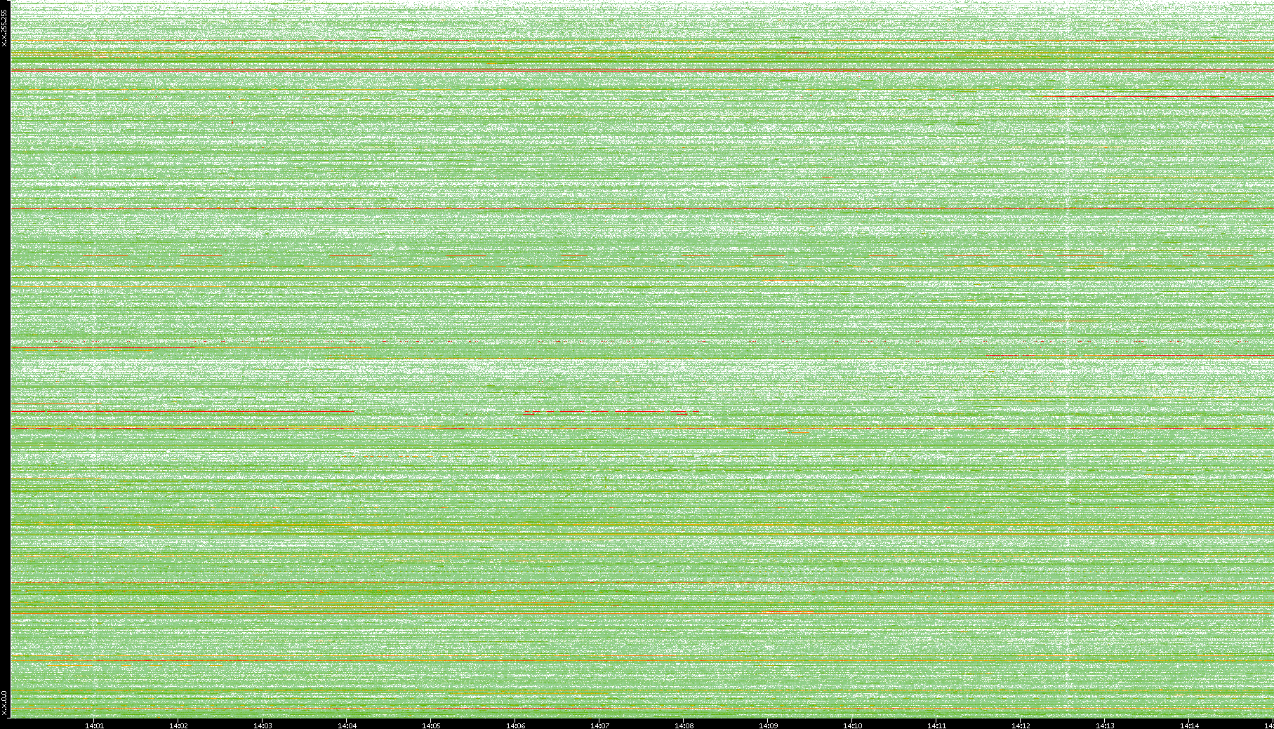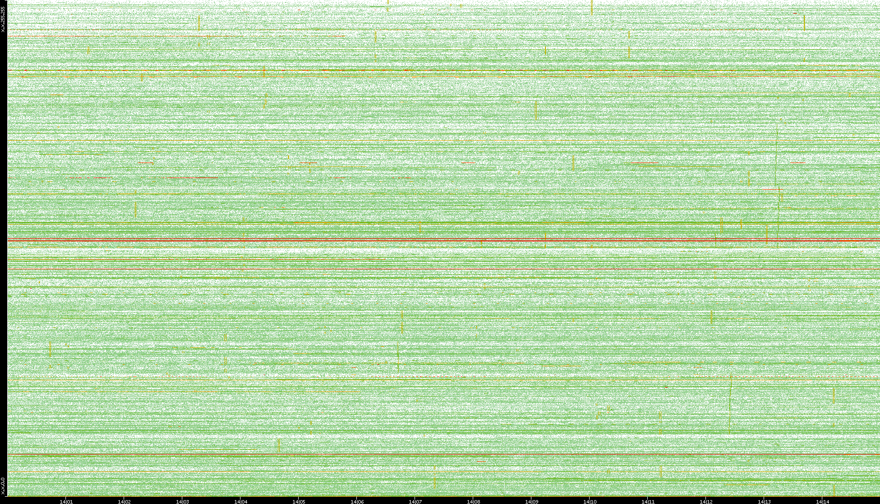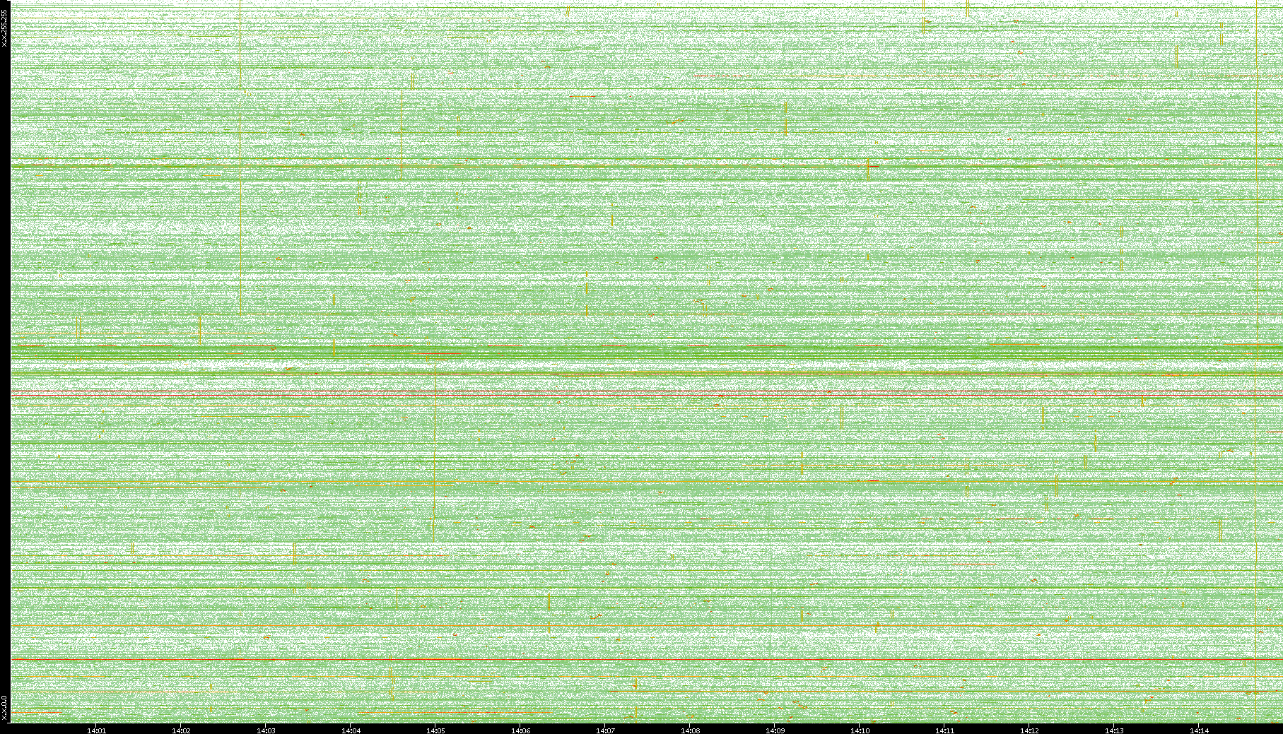 2009/09/14 Dest. IP vs. Time Dest. Port vs. Time Src. IP vs. Time Src. Port vs. Time Nb. of Packets vs. Time Throughput vs. Time Average Packet Size vs. Time Entropy of Port vs. Time