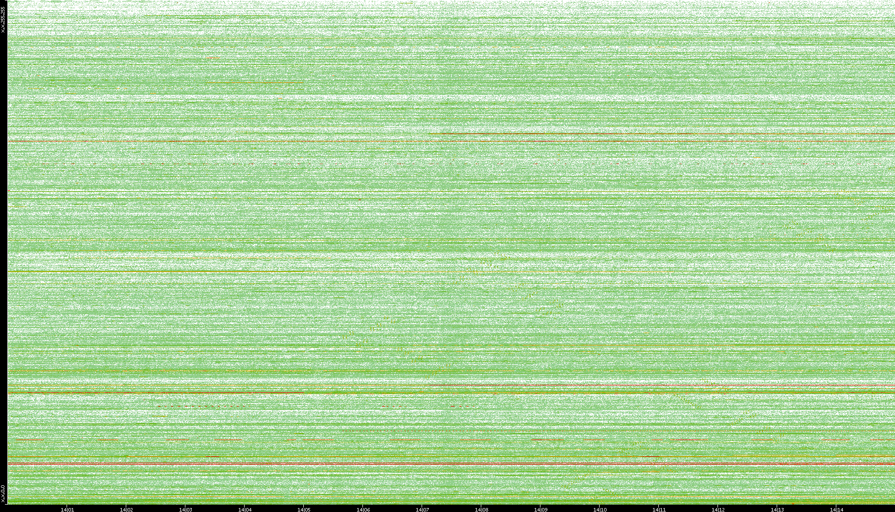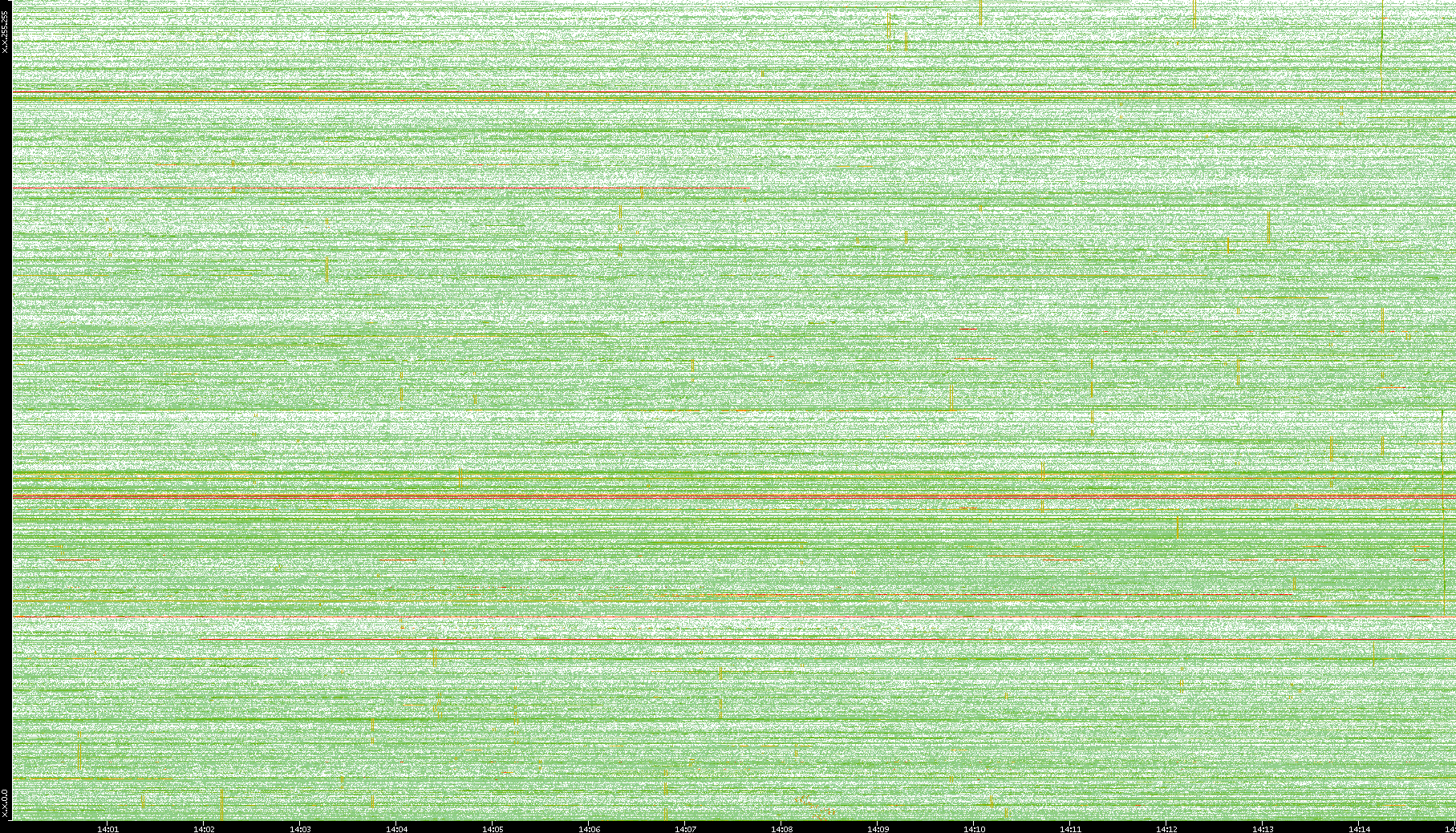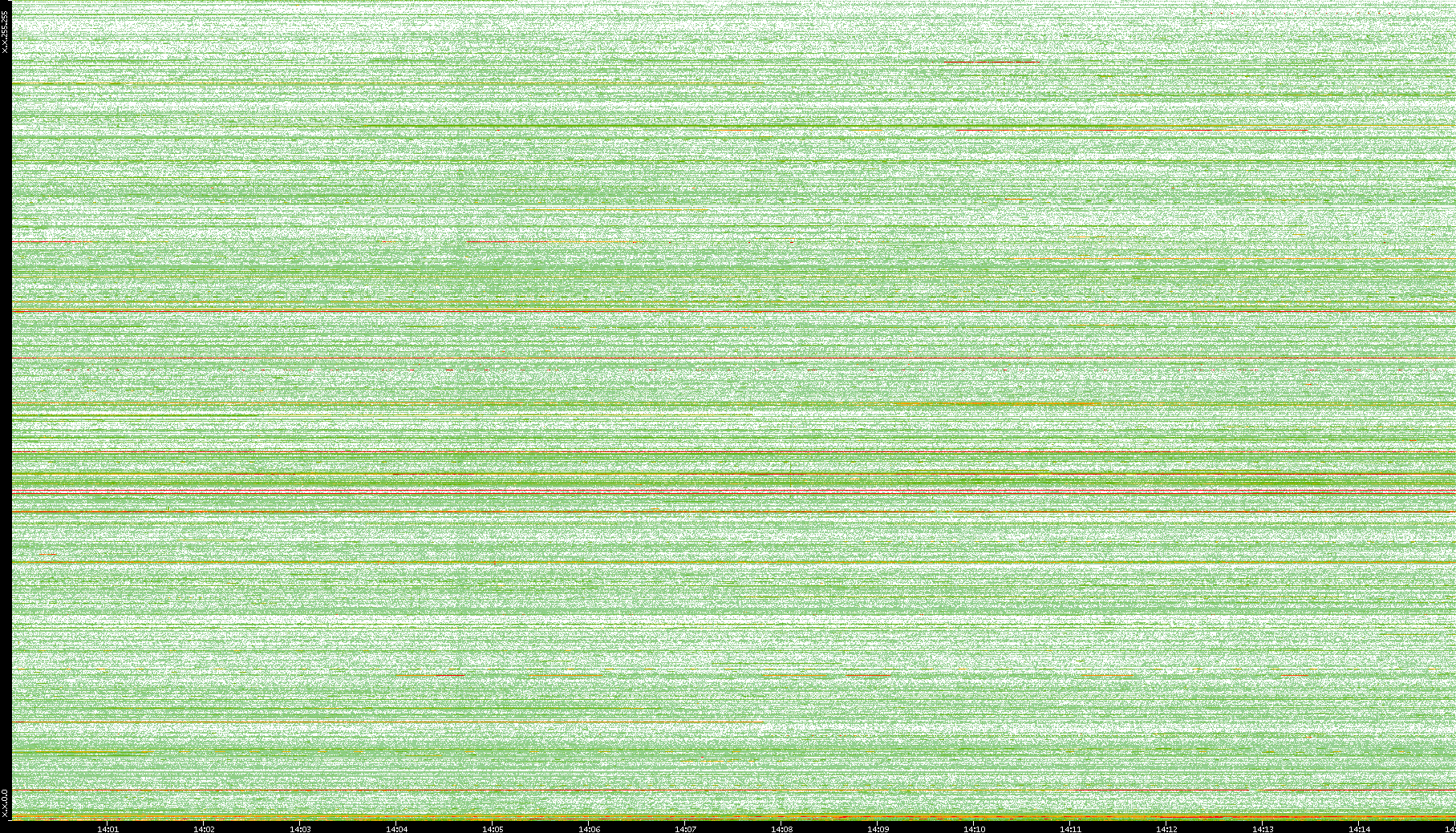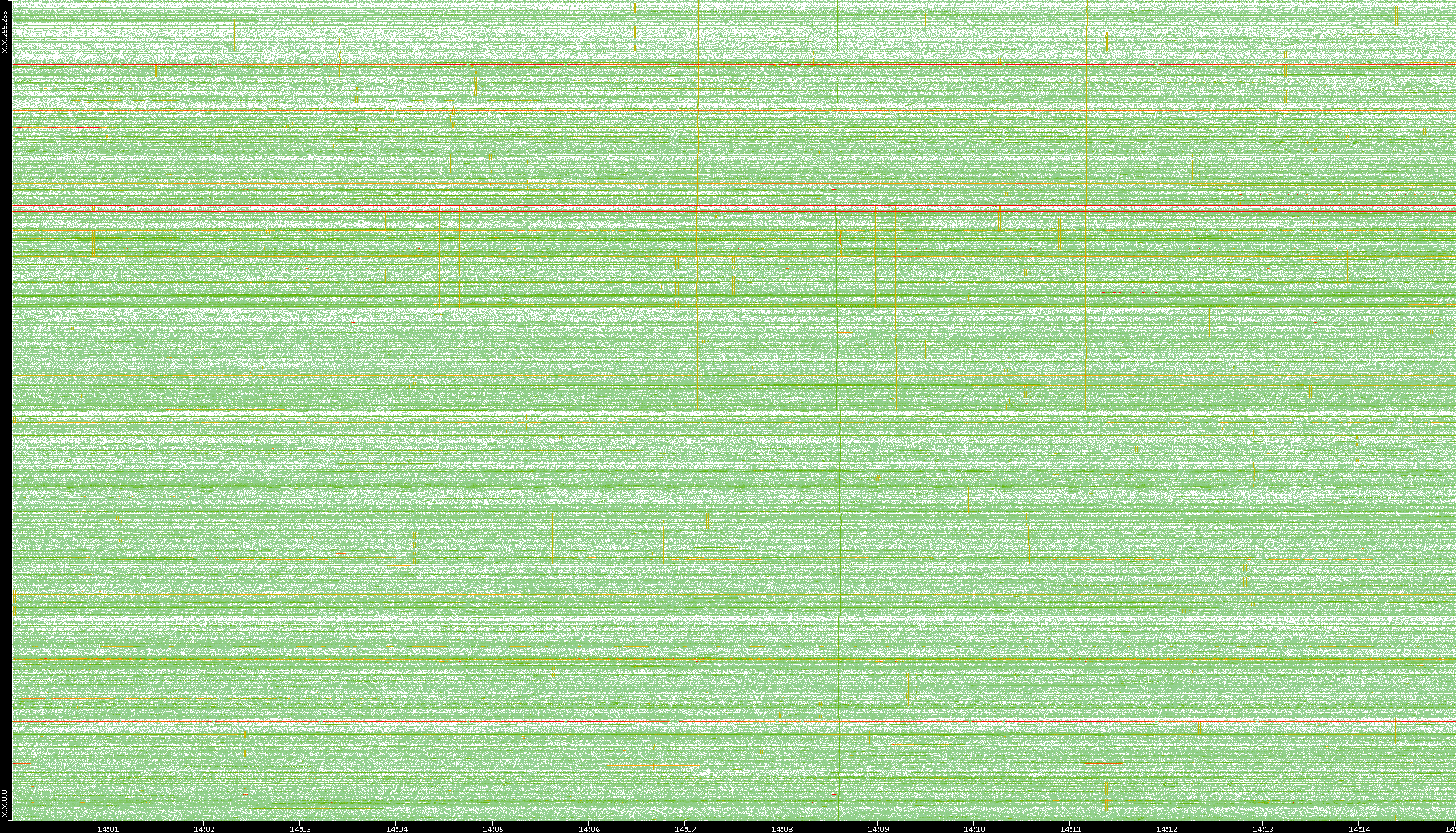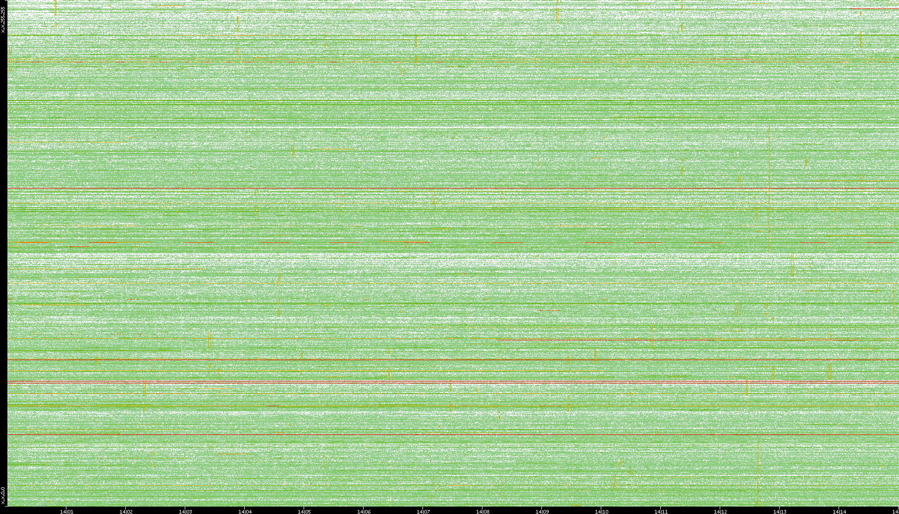 2009/09/14 Dest. IP vs. Time Dest. Port vs. Time Src. IP vs. Time Src. Port vs. Time Nb. of Packets vs. Time Throughput vs. Time Average Packet Size vs. Time Entropy of Port vs. Time