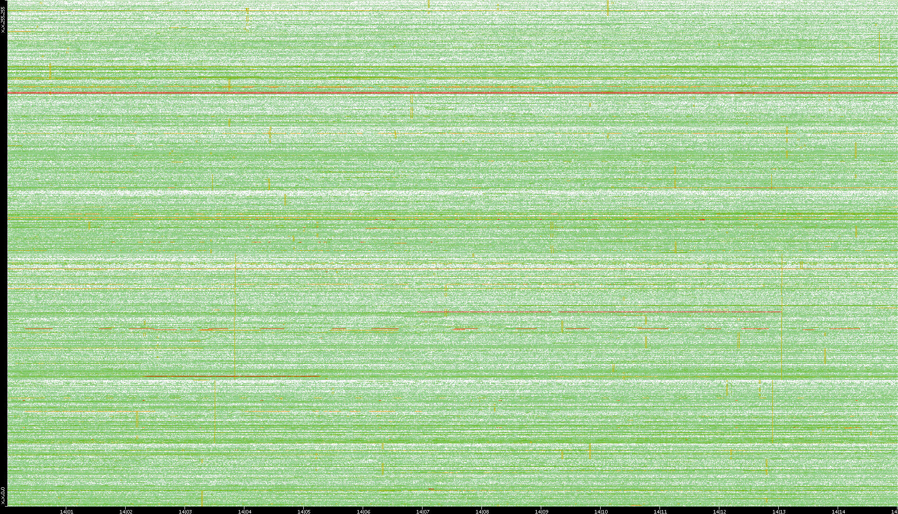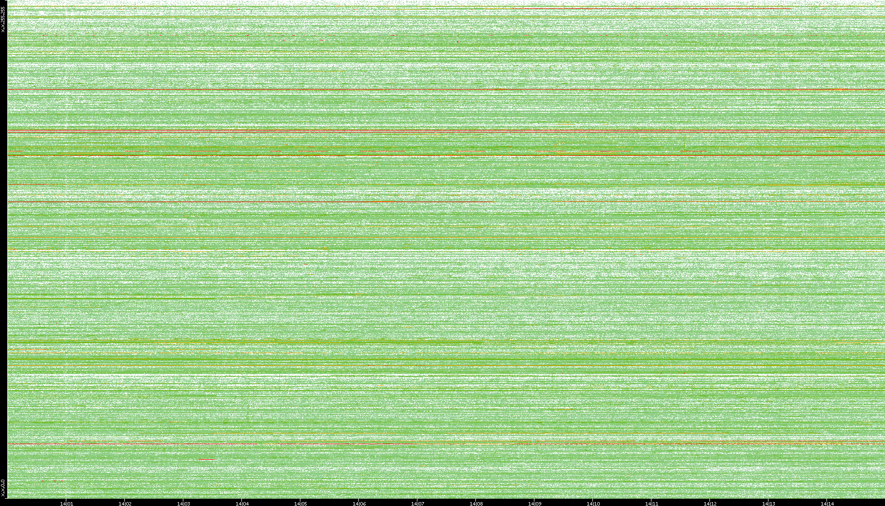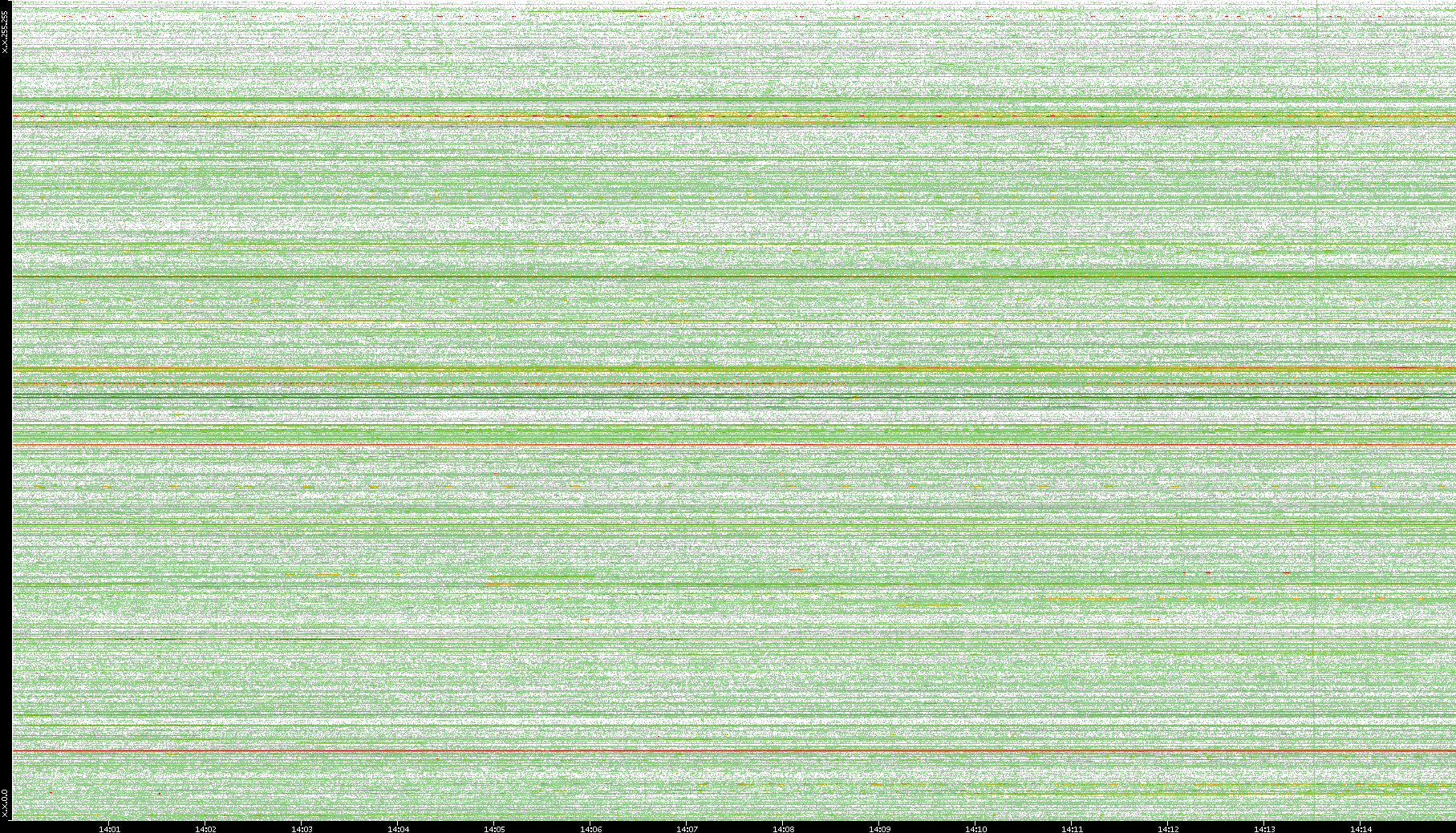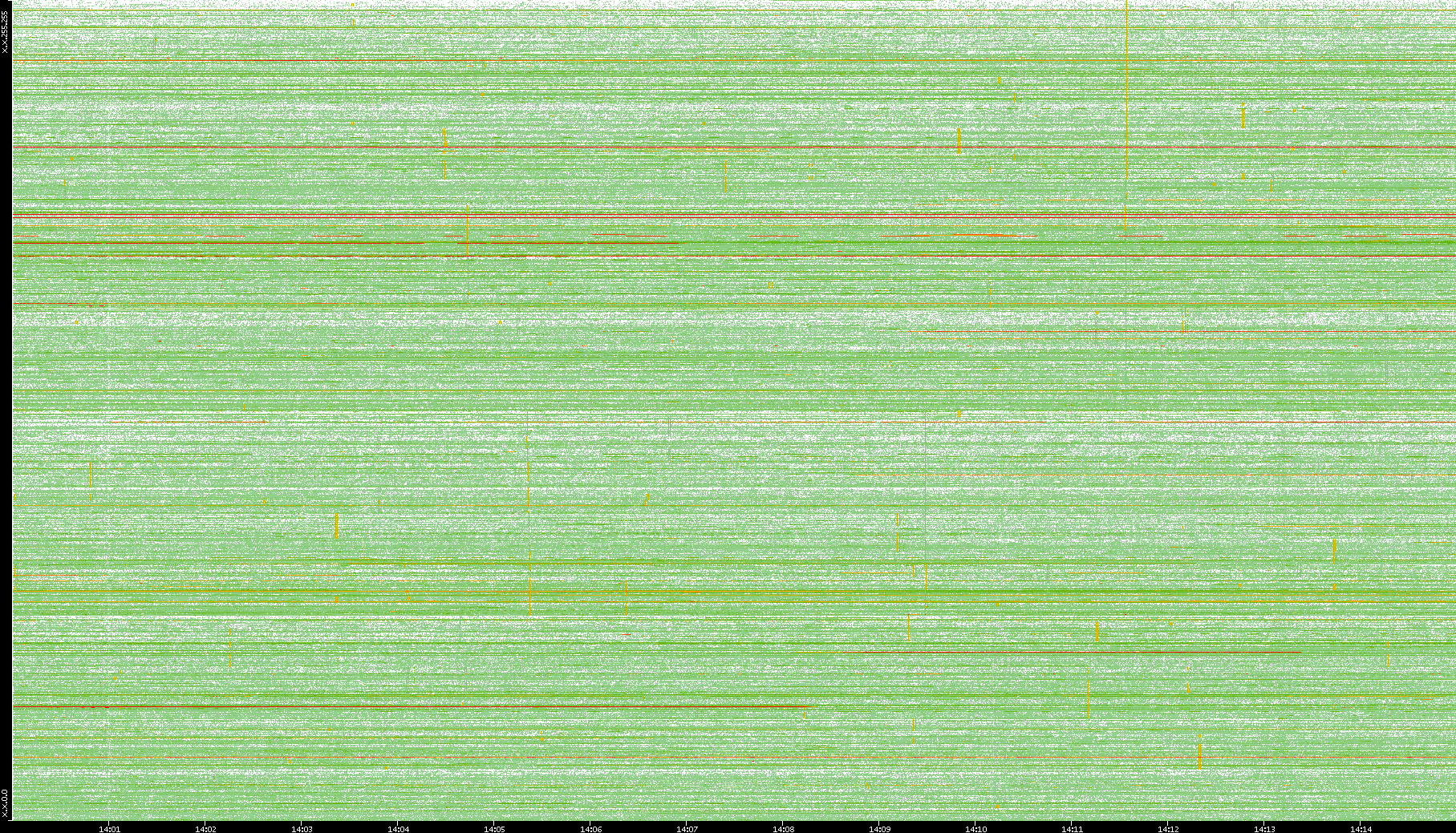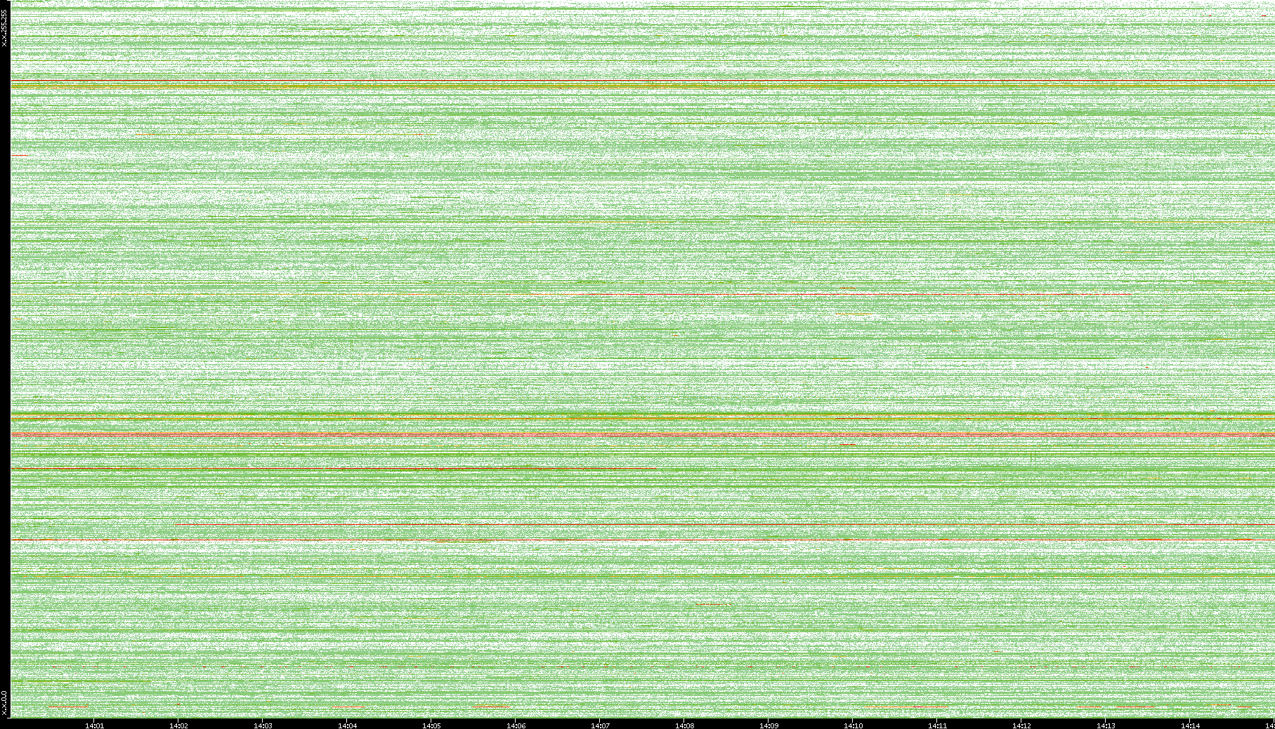 2009/09/14 Dest. IP vs. Time Dest. Port vs. Time Src. IP vs. Time Src. Port vs. Time Nb. of Packets vs. Time Throughput vs. Time Average Packet Size vs. Time Entropy of Port vs. Time