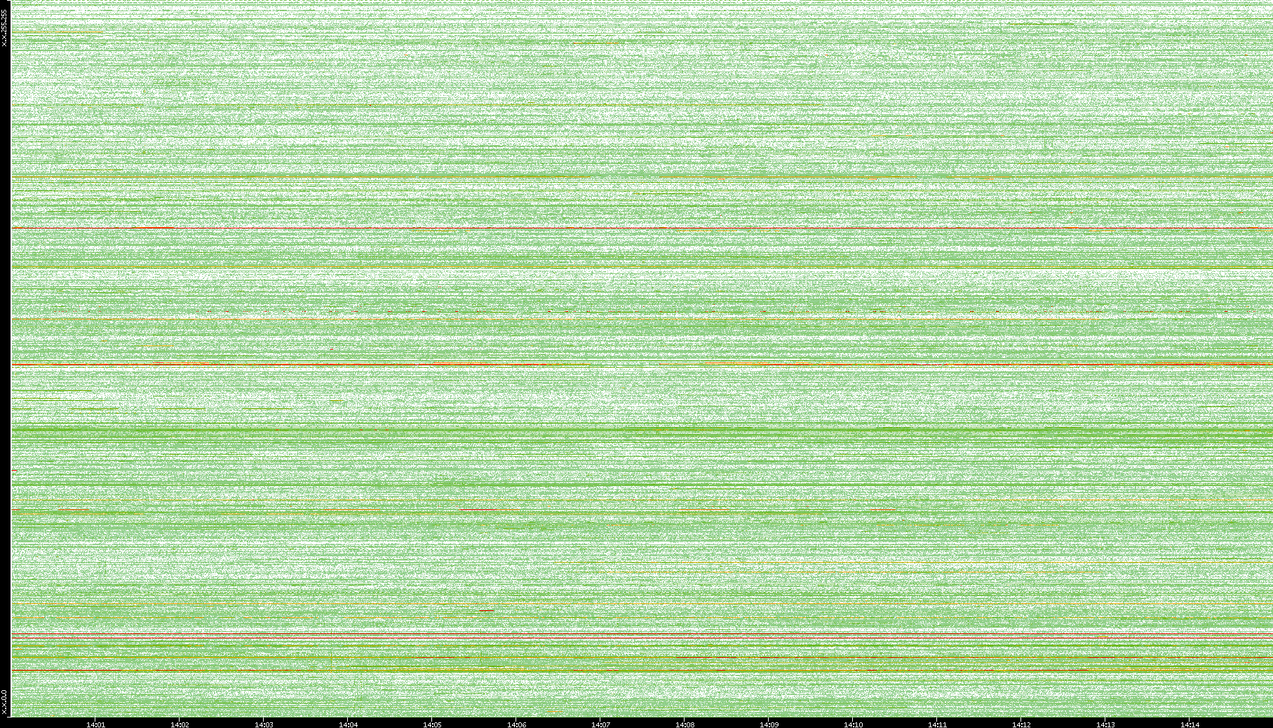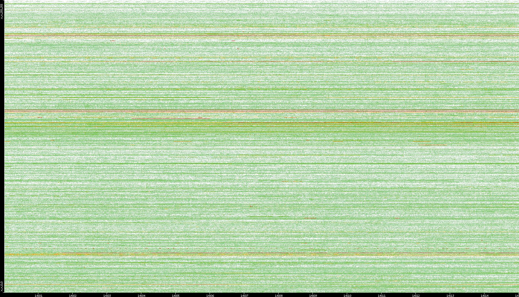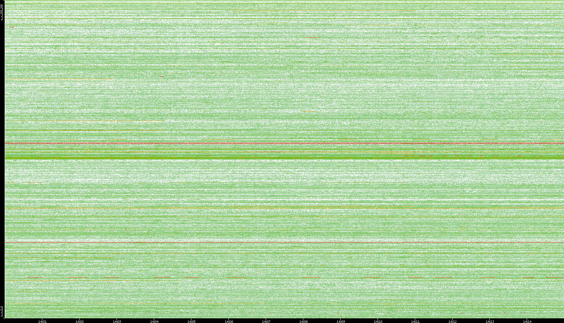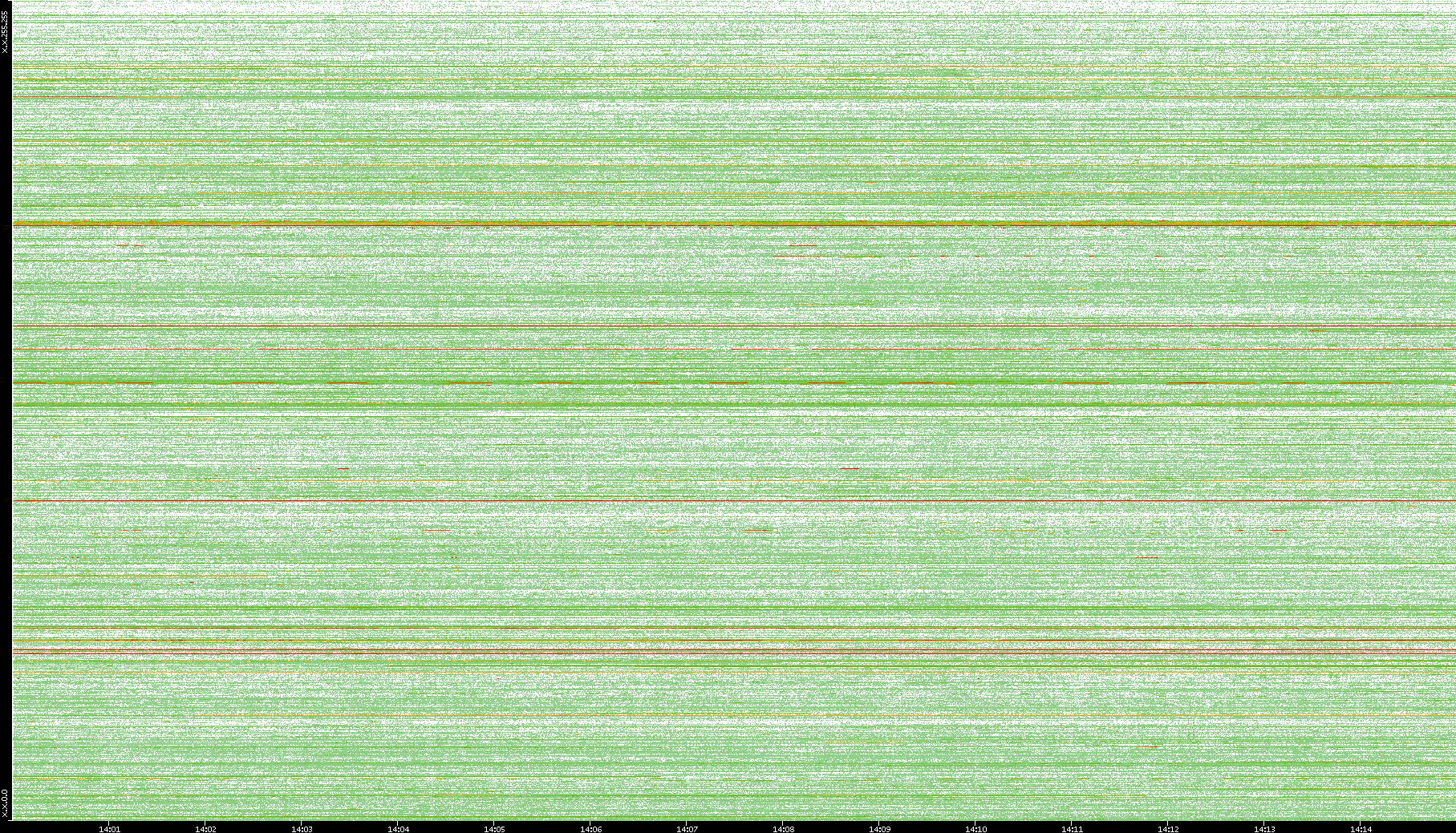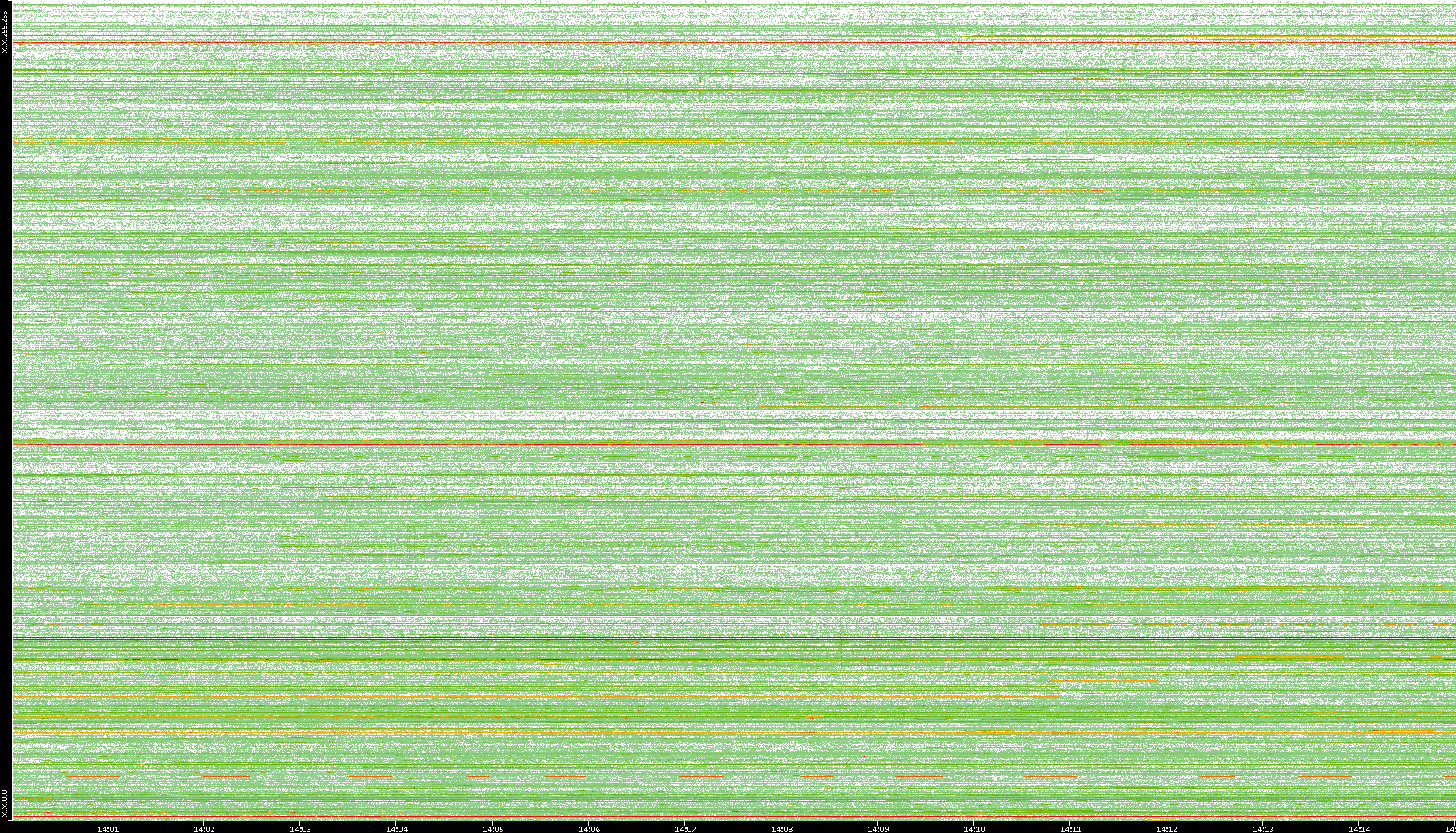 2009/09/14 Dest. IP vs. Time Dest. Port vs. Time Src. IP vs. Time Src. Port vs. Time Nb. of Packets vs. Time Throughput vs. Time Average Packet Size vs. Time Entropy of Port vs. Time