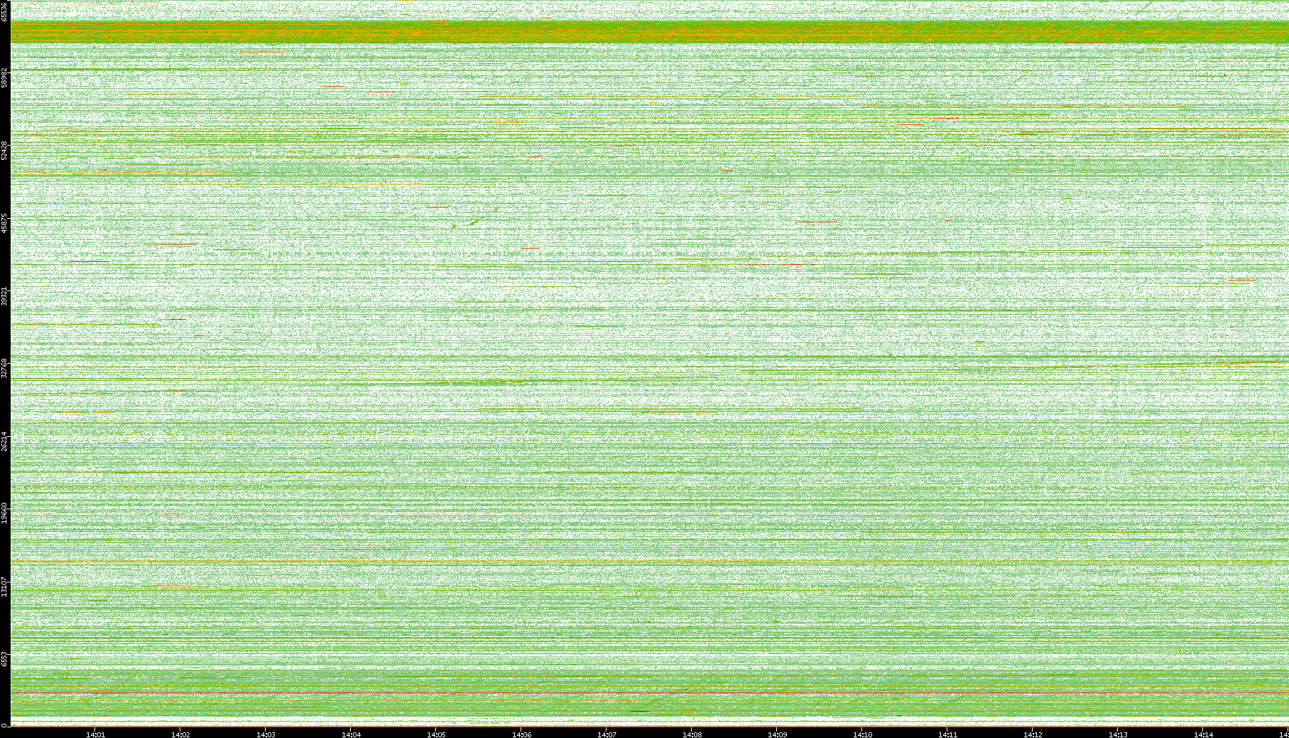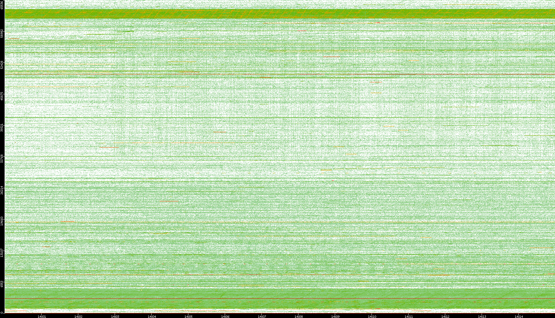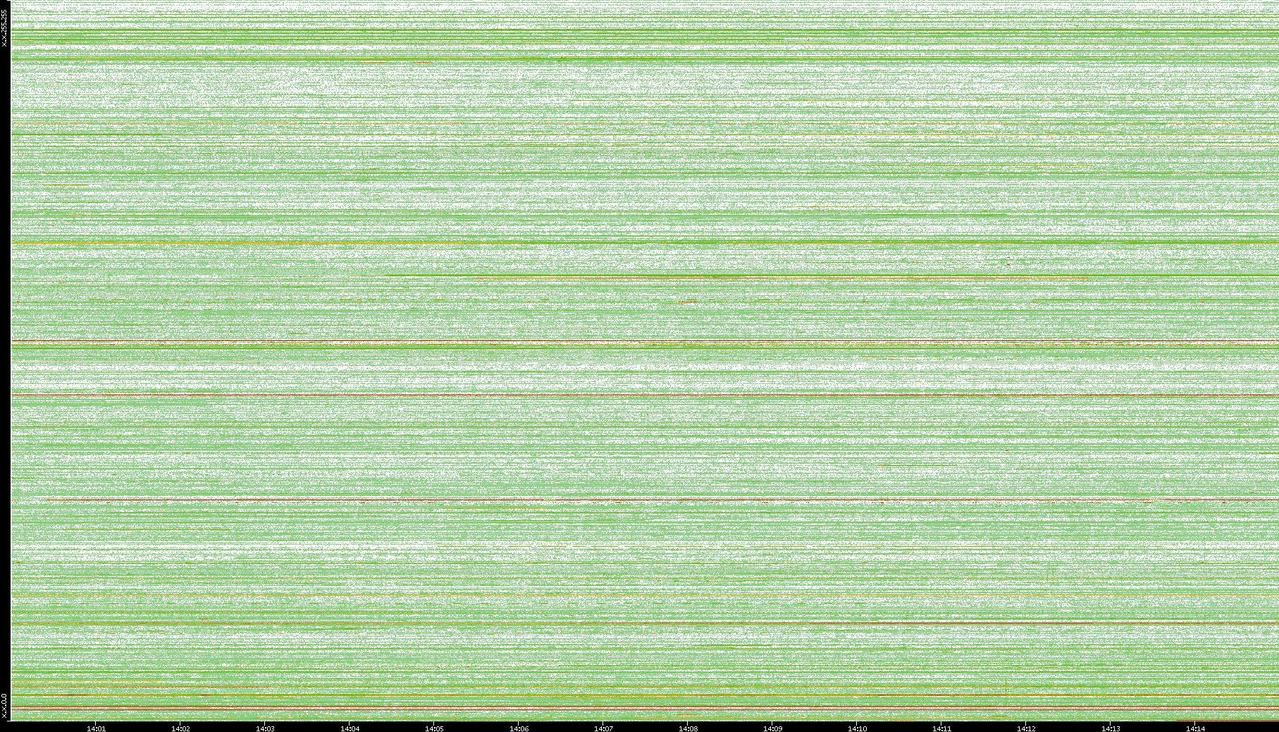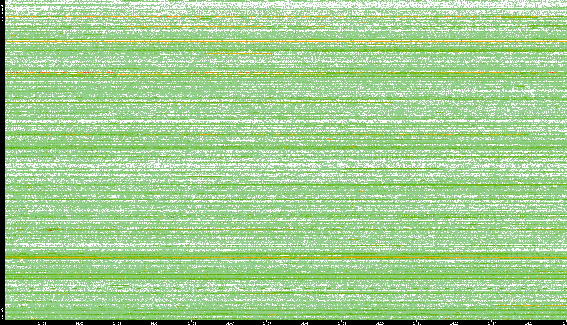 2009/09/14 Dest. IP vs. Time Dest. Port vs. Time Src. IP vs. Time Src. Port vs. Time Nb. of Packets vs. Time Throughput vs. Time Average Packet Size vs. Time Entropy of Port vs. Time
