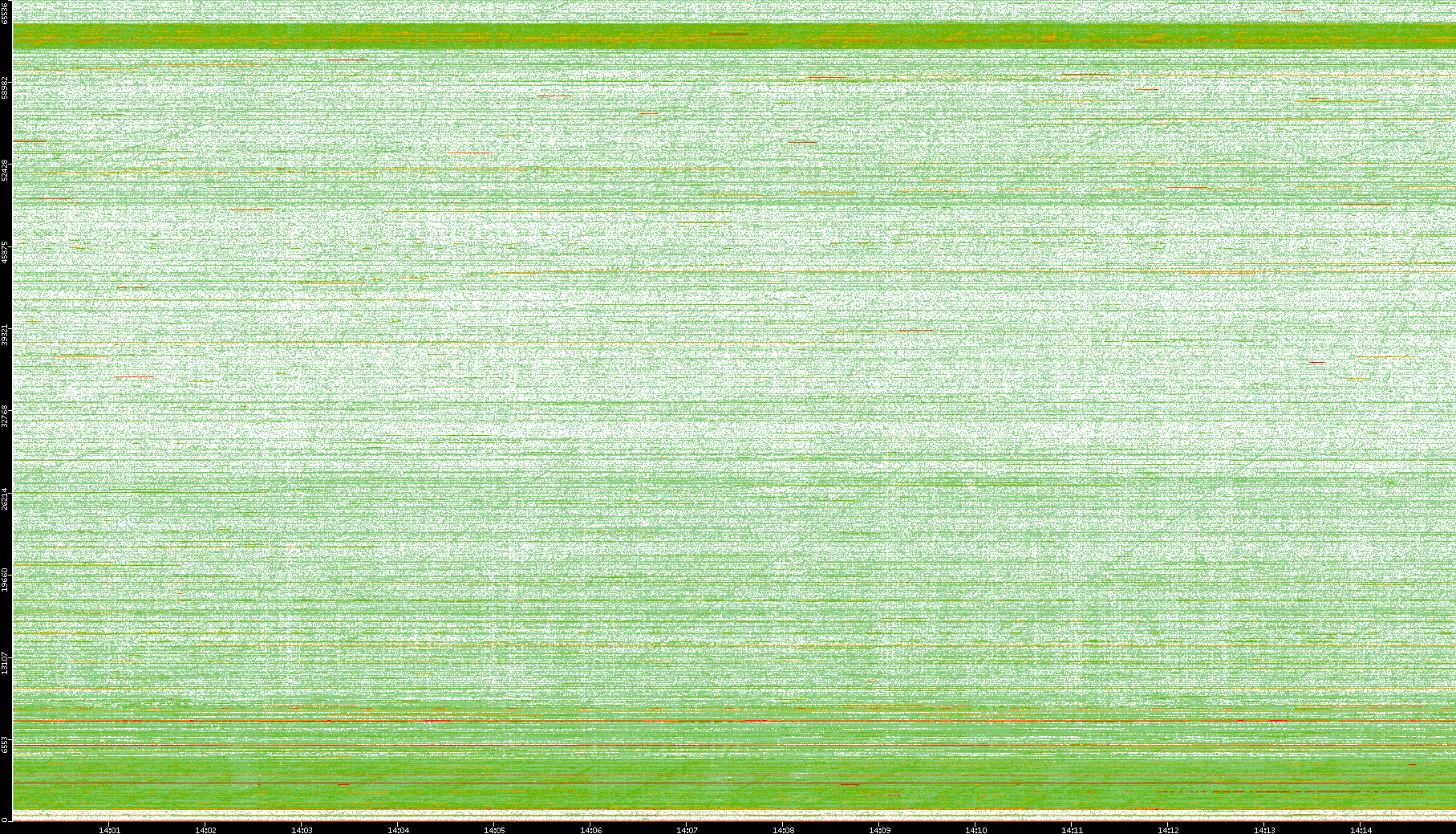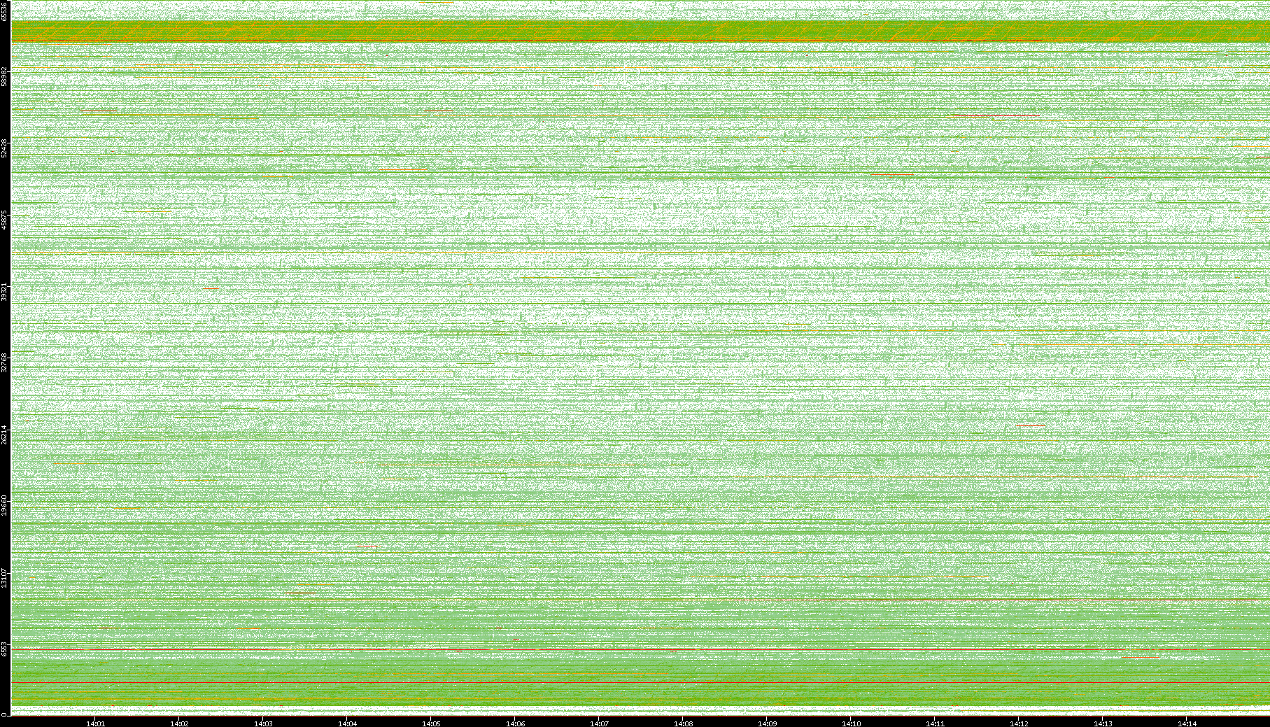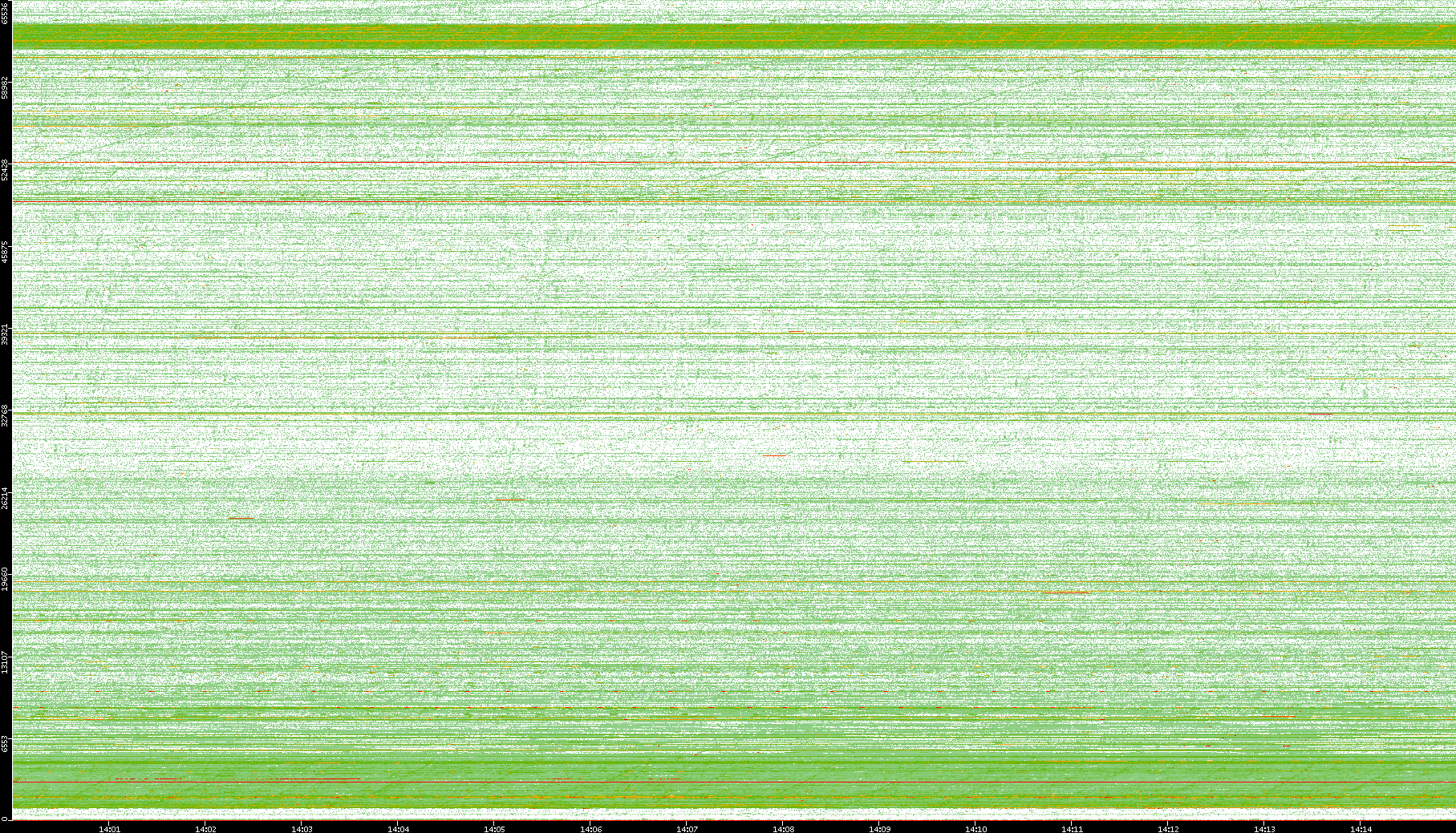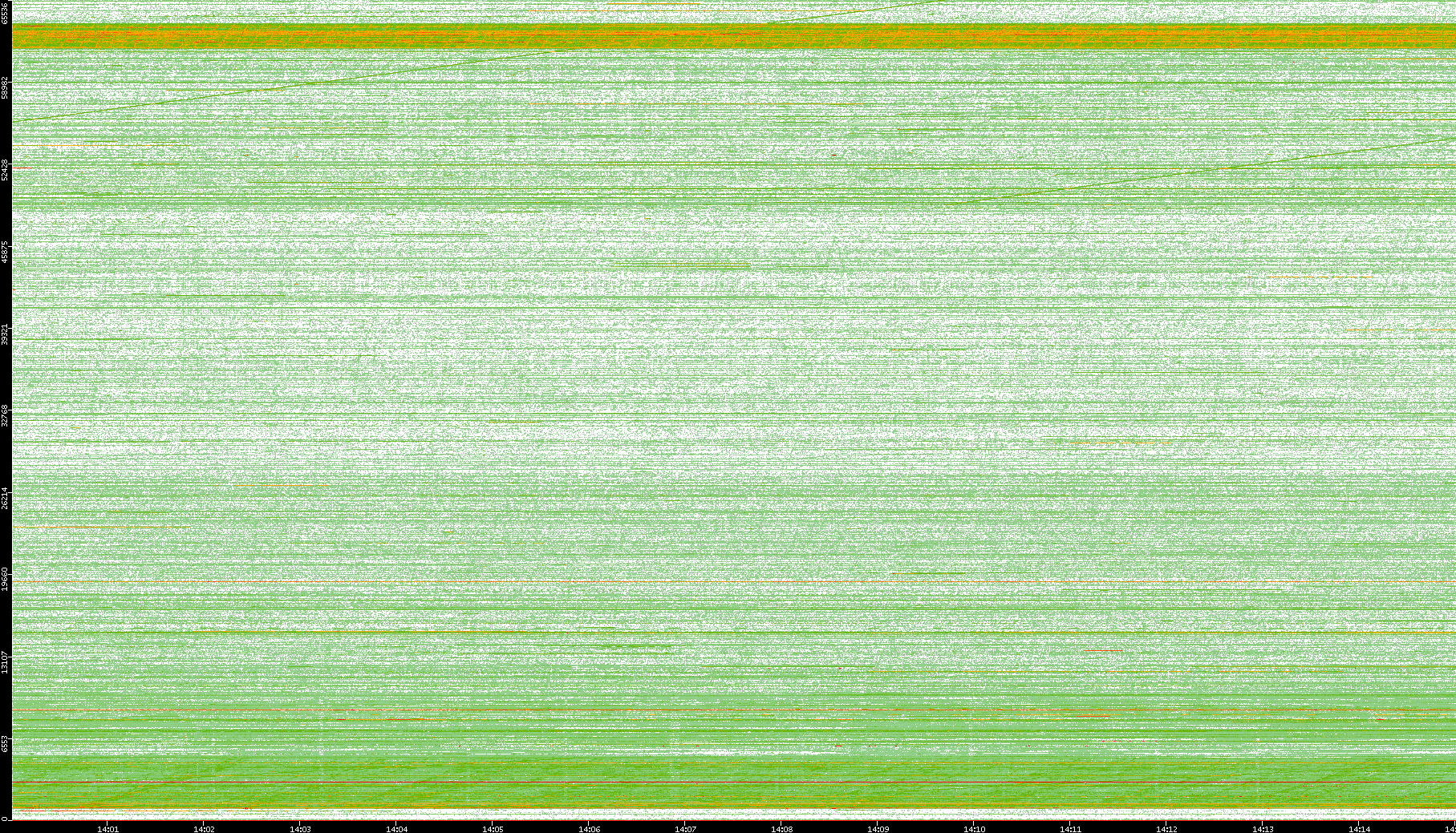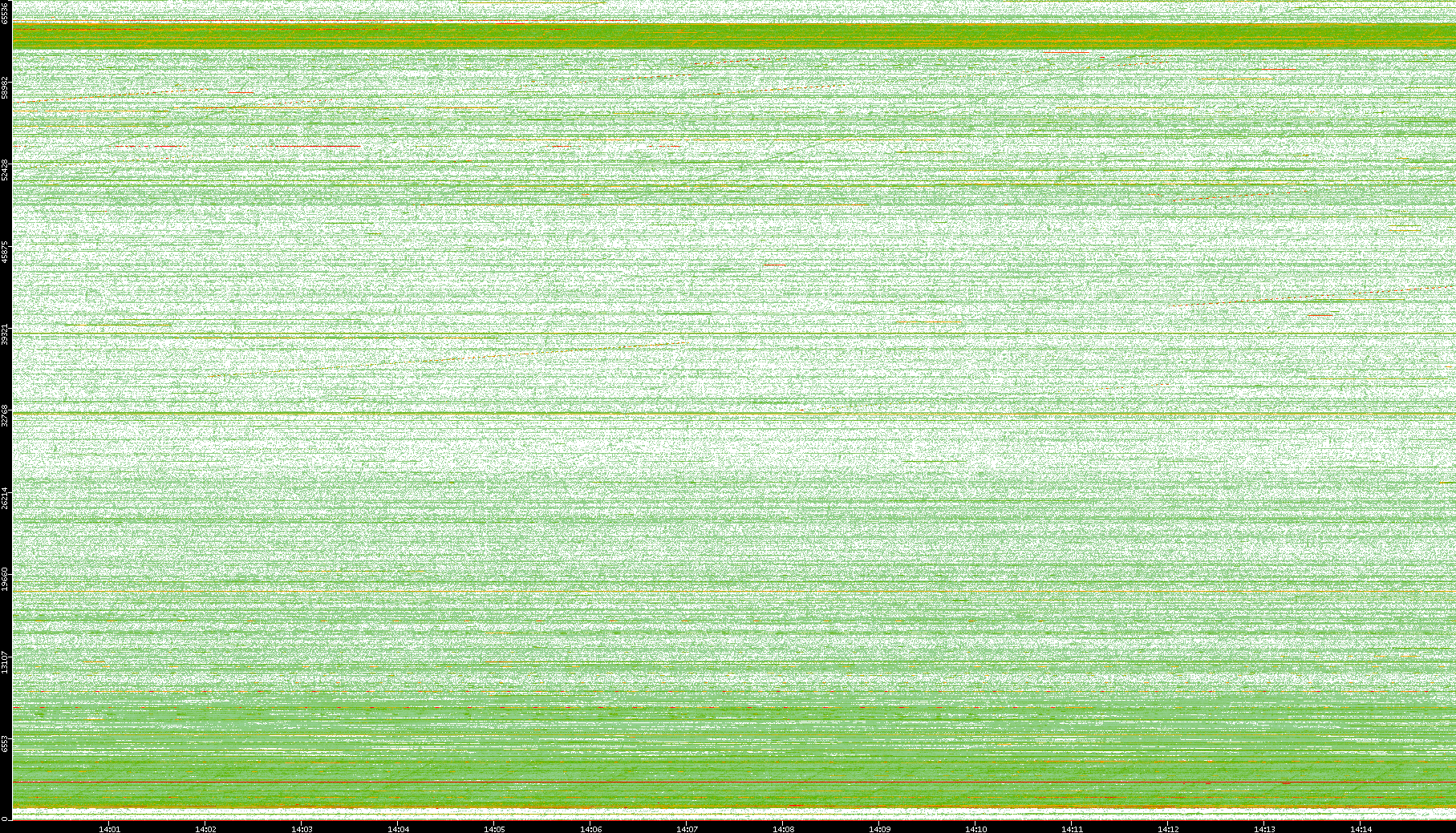 2009/09/14 Dest. IP vs. Time Dest. Port vs. Time Src. IP vs. Time Src. Port vs. Time Nb. of Packets vs. Time Throughput vs. Time Average Packet Size vs. Time Entropy of Port vs. Time