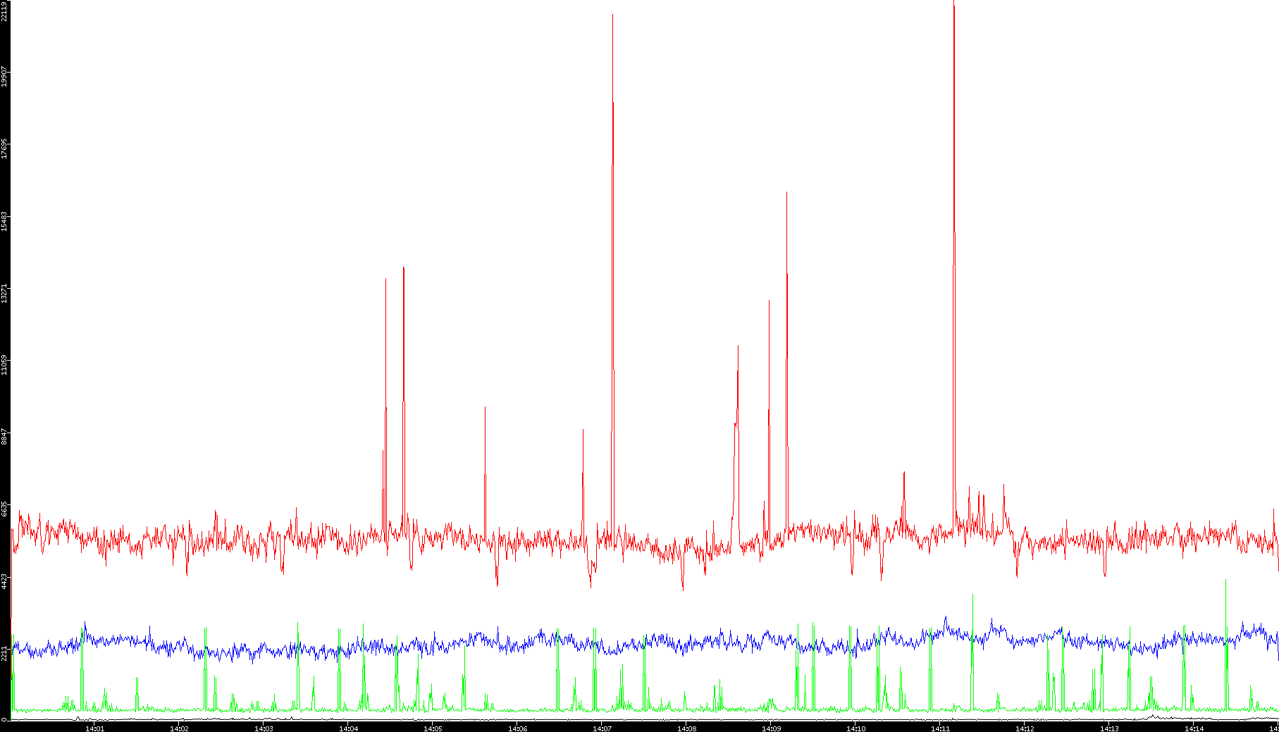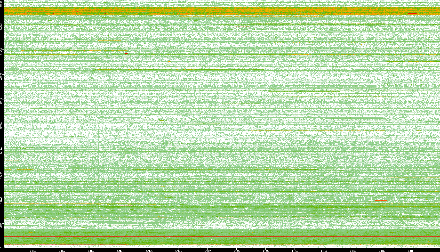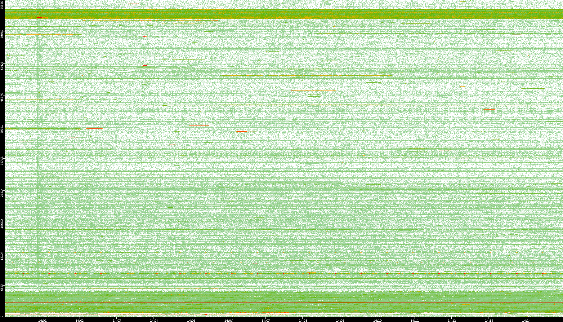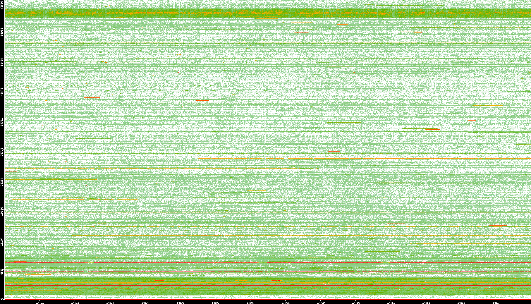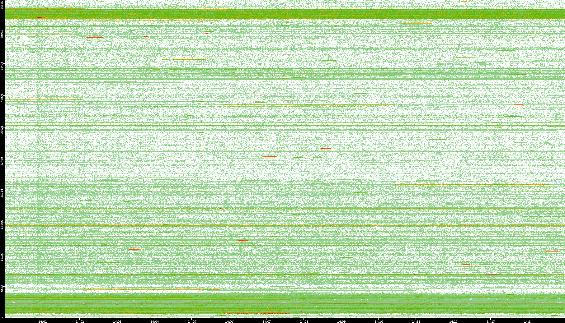 2009/09/14 Dest. IP vs. Time Dest. Port vs. Time Src. IP vs. Time Src. Port vs. Time Nb. of Packets vs. Time Throughput vs. Time Average Packet Size vs. Time Entropy of Port vs. Time