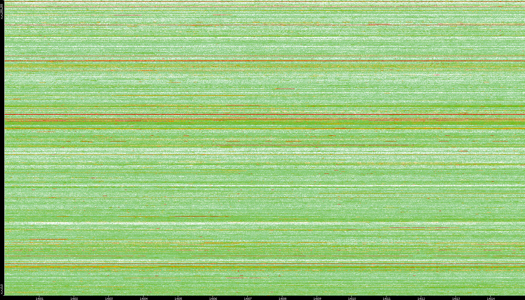 | Date | Dest. IP vs. Time | Dest. Port vs. Time | Src. IP vs. Time | Src. Port vs. Time | Nb. of Packets vs. Time | Throughput vs. Time | Average Packet Size vs. Time | Entropy of Port vs. Time |