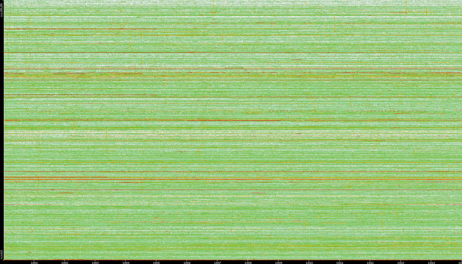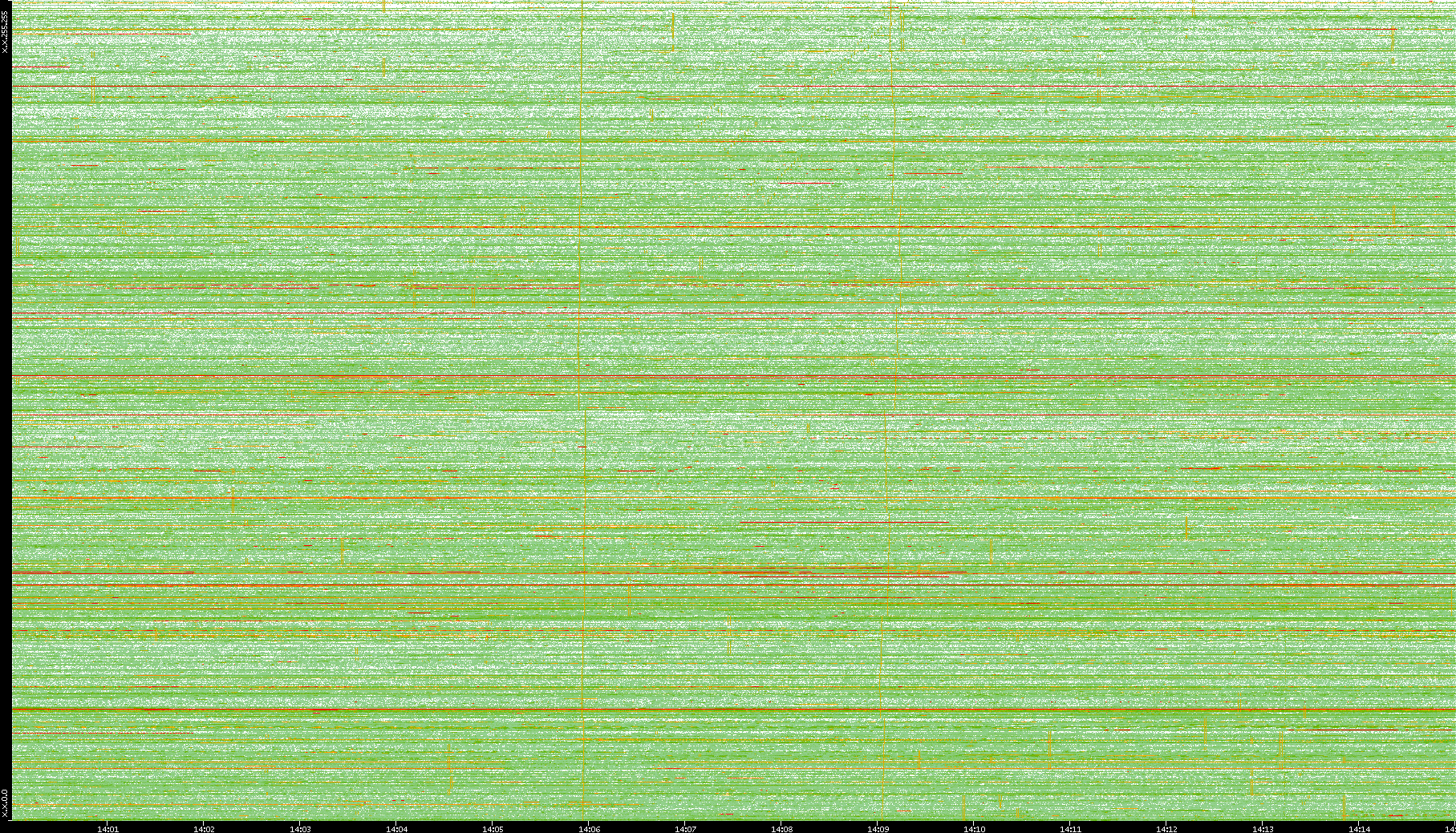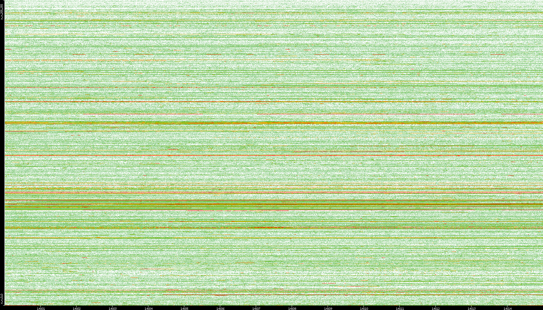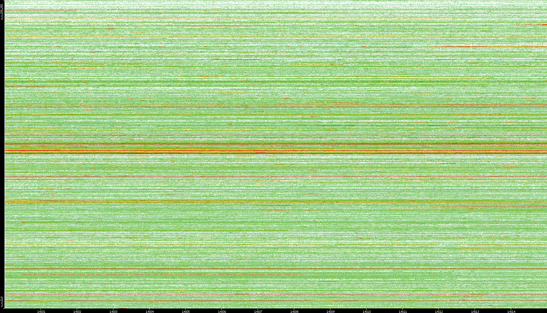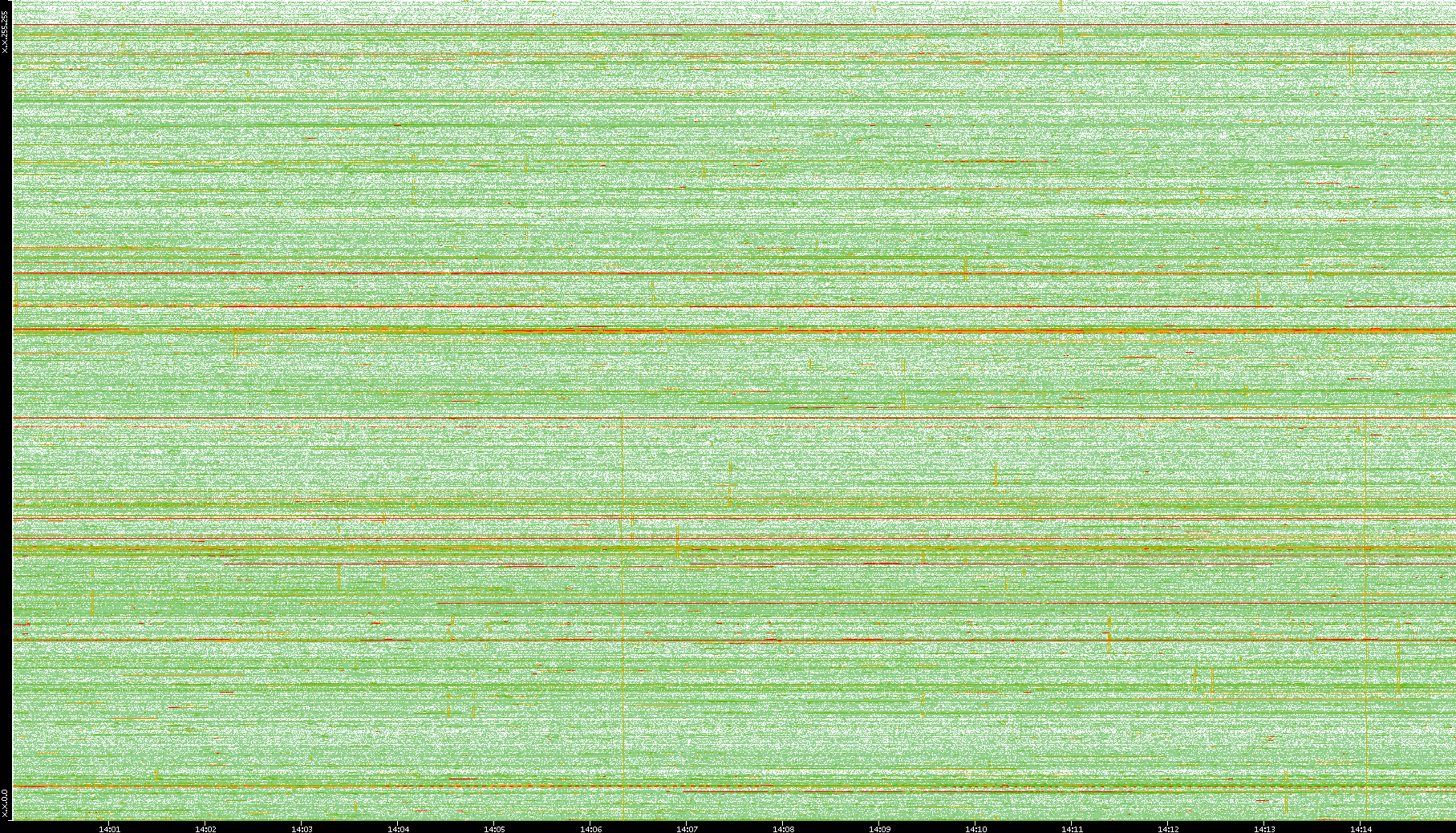 | Date | Dest. IP vs. Time | Dest. Port vs. Time | Src. IP vs. Time | Src. Port vs. Time | Nb. of Packets vs. Time | Throughput vs. Time | Average Packet Size vs. Time | Entropy of Port vs. Time |