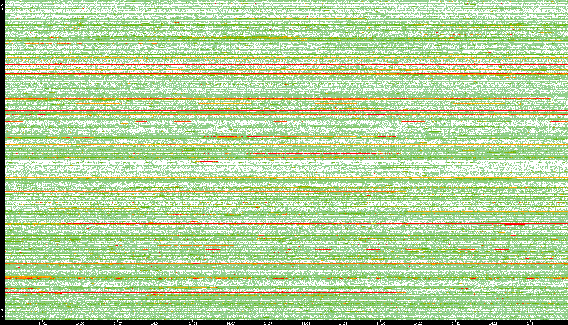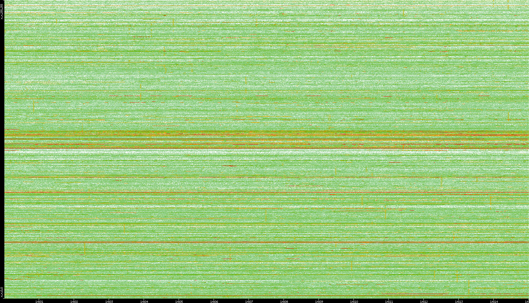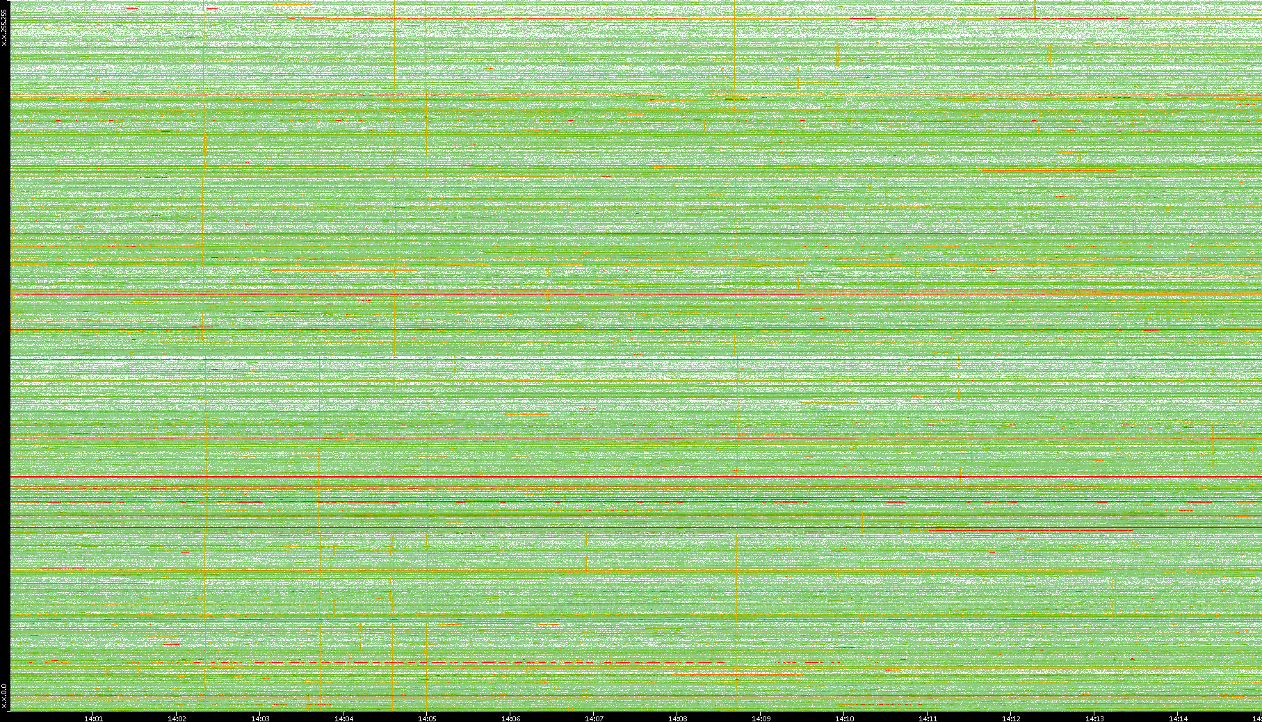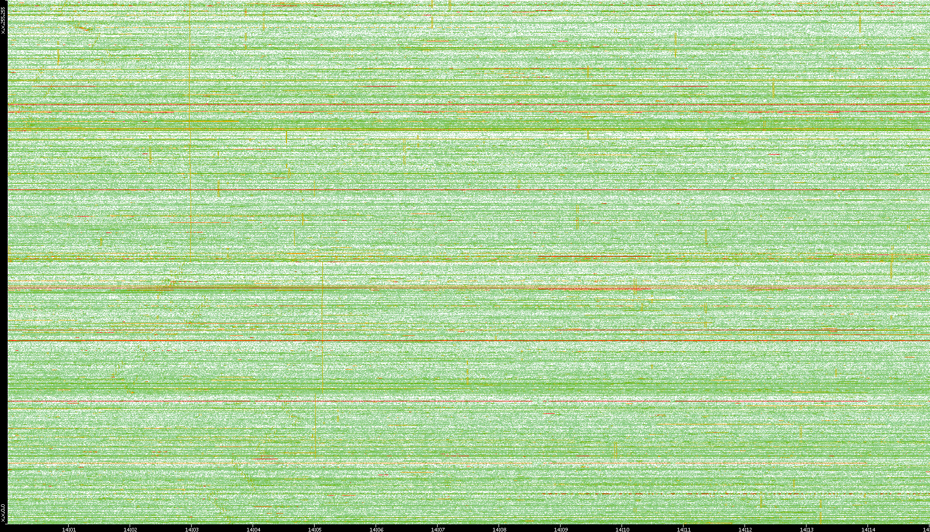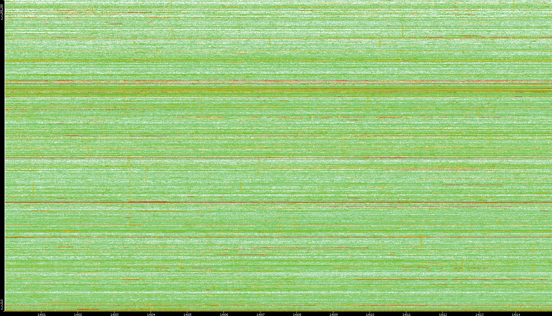 | Date | Dest. IP vs. Time | Dest. Port vs. Time | Src. IP vs. Time | Src. Port vs. Time | Nb. of Packets vs. Time | Throughput vs. Time | Average Packet Size vs. Time | Entropy of Port vs. Time |