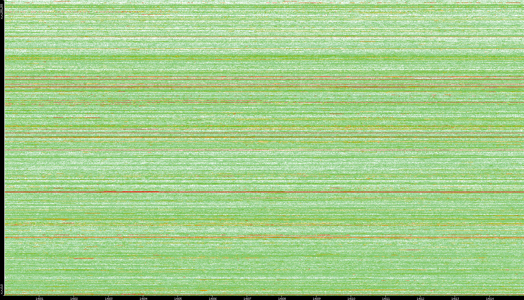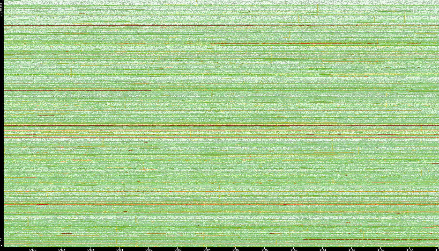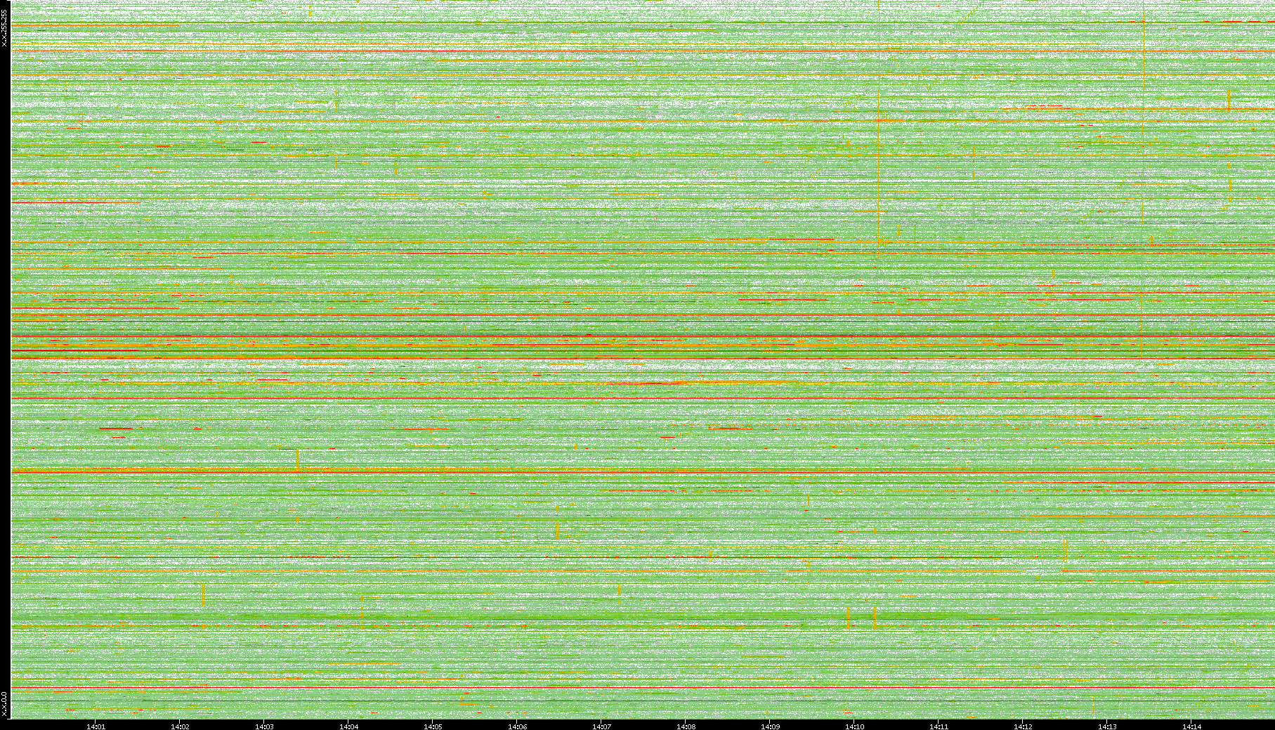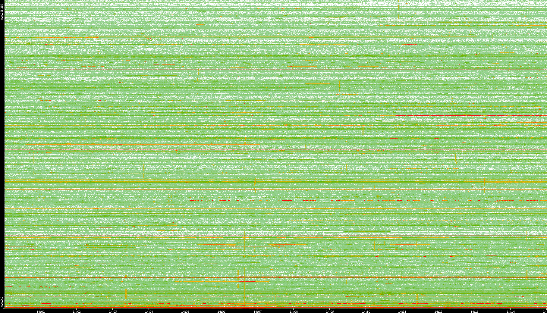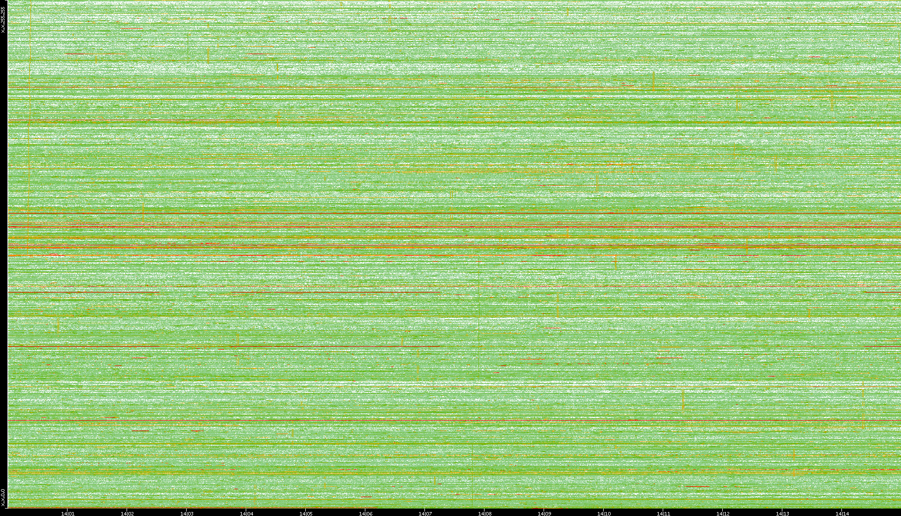 | Date | Dest. IP vs. Time | Dest. Port vs. Time | Src. IP vs. Time | Src. Port vs. Time | Nb. of Packets vs. Time | Throughput vs. Time | Average Packet Size vs. Time | Entropy of Port vs. Time |