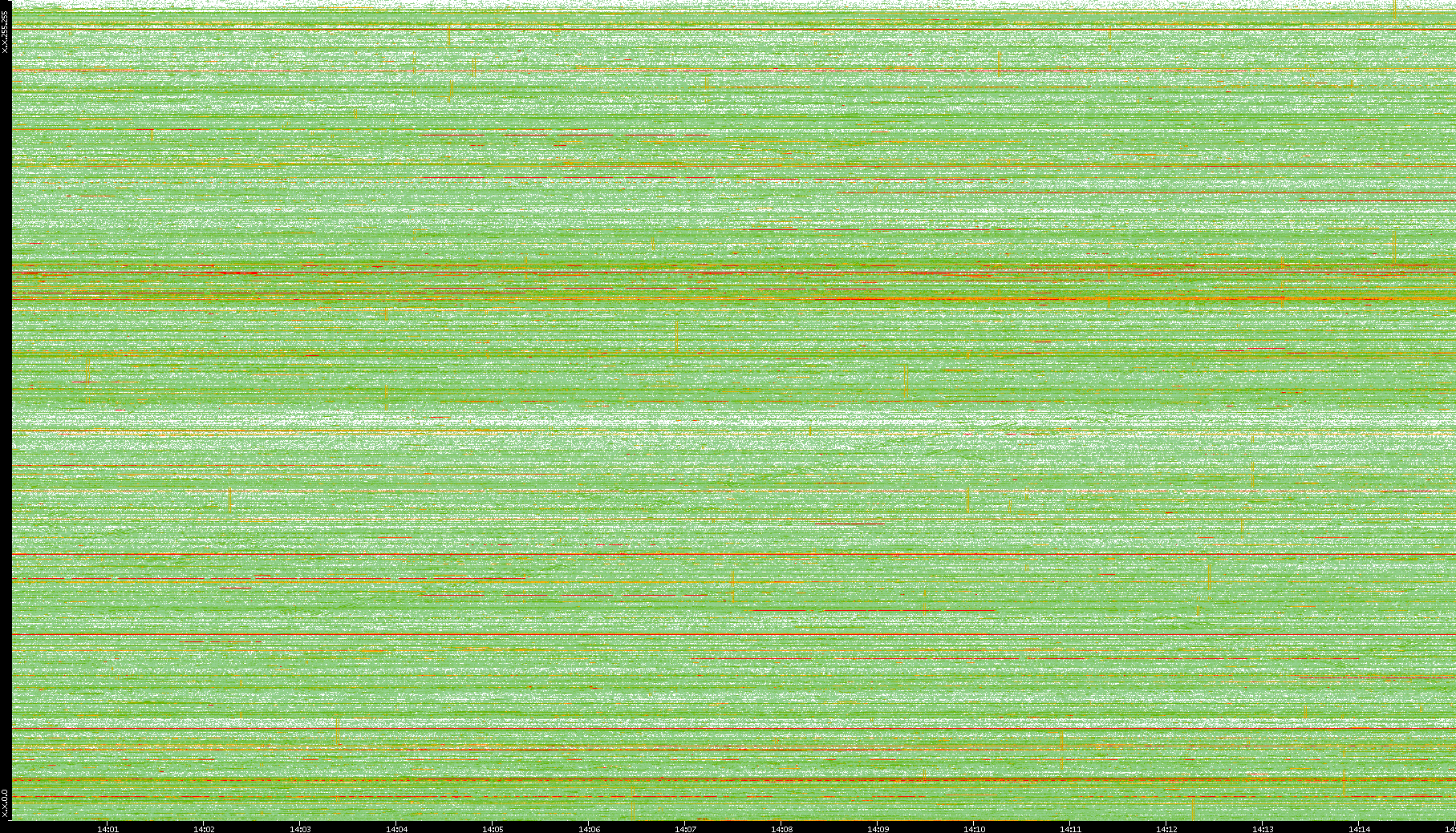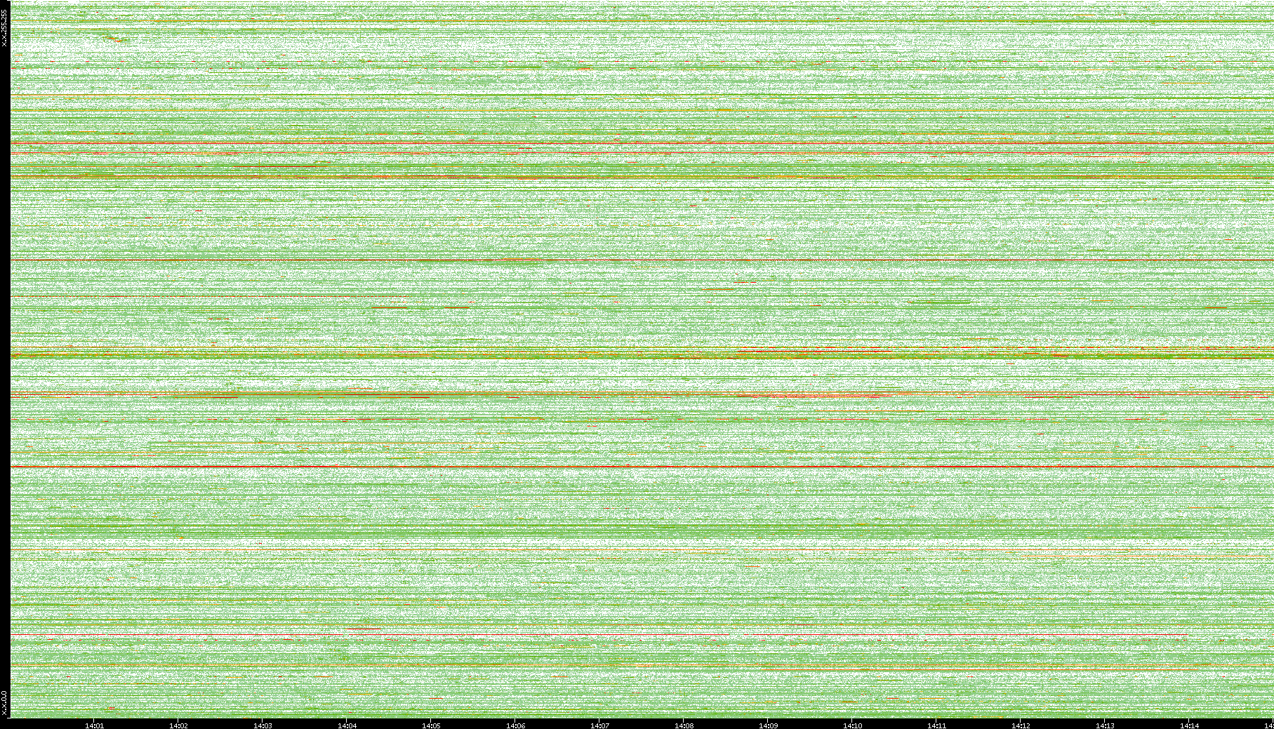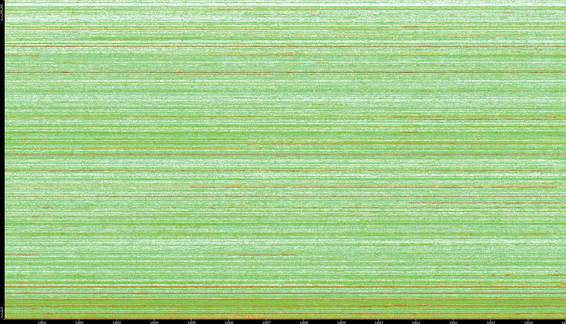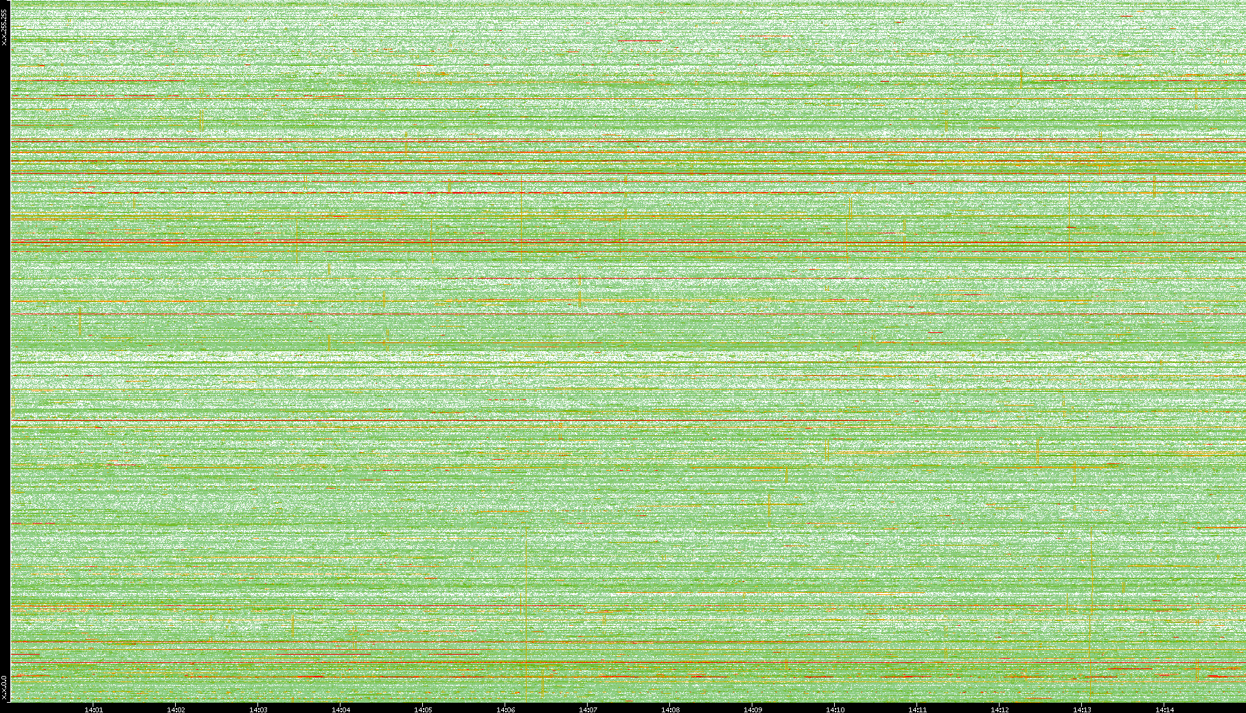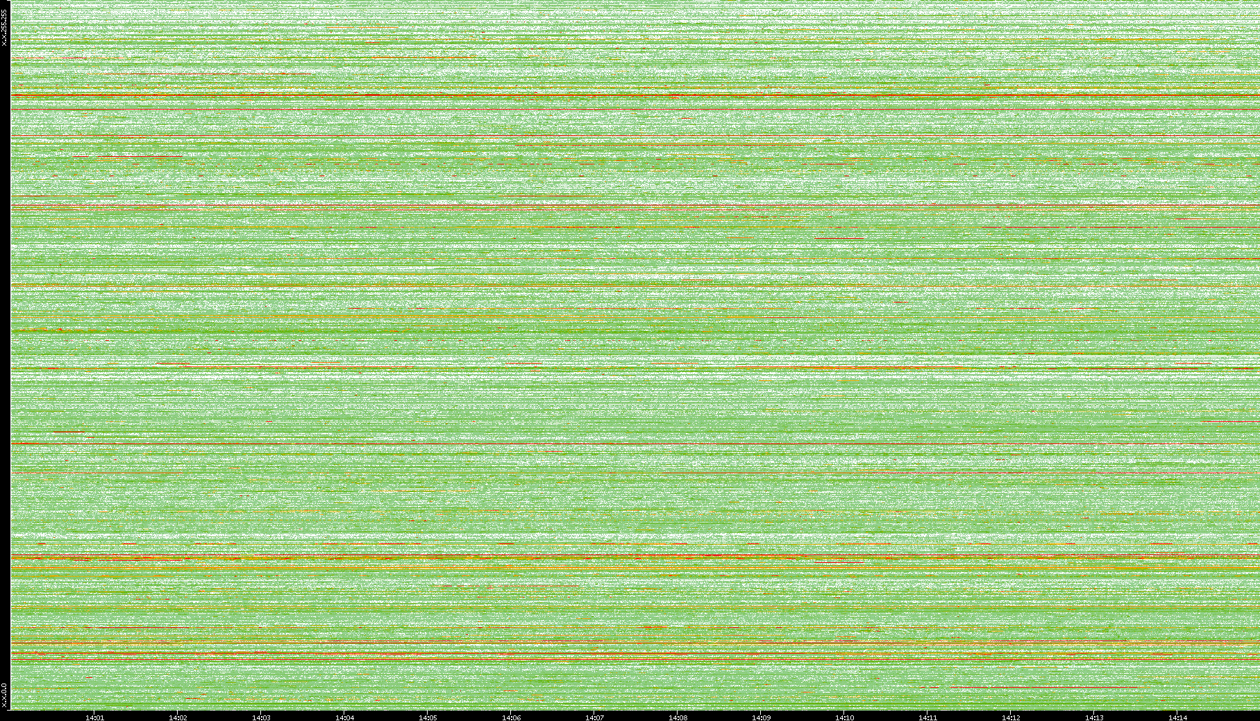 | Date | Dest. IP vs. Time | Dest. Port vs. Time | Src. IP vs. Time | Src. Port vs. Time | Nb. of Packets vs. Time | Throughput vs. Time | Average Packet Size vs. Time | Entropy of Port vs. Time |