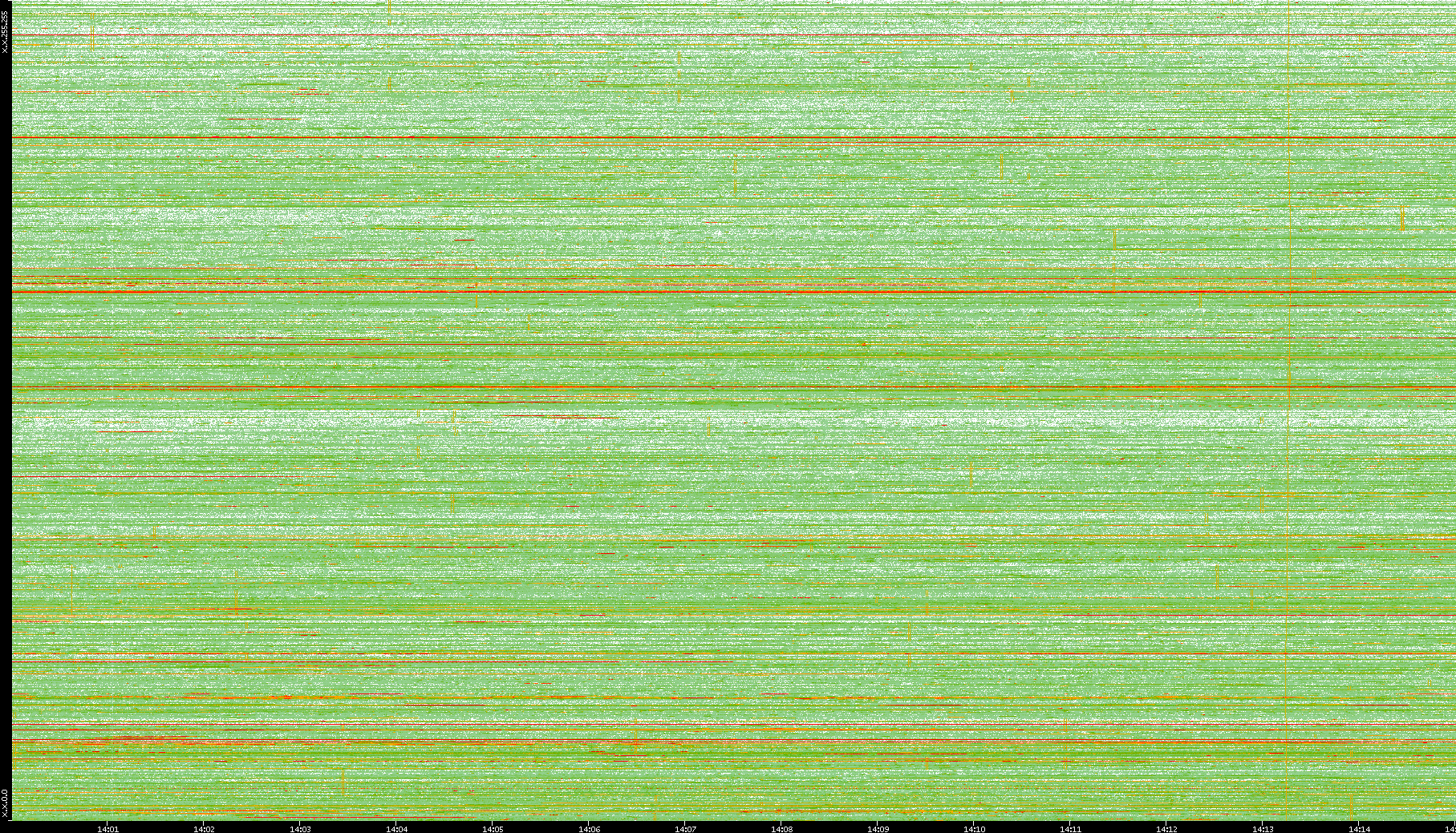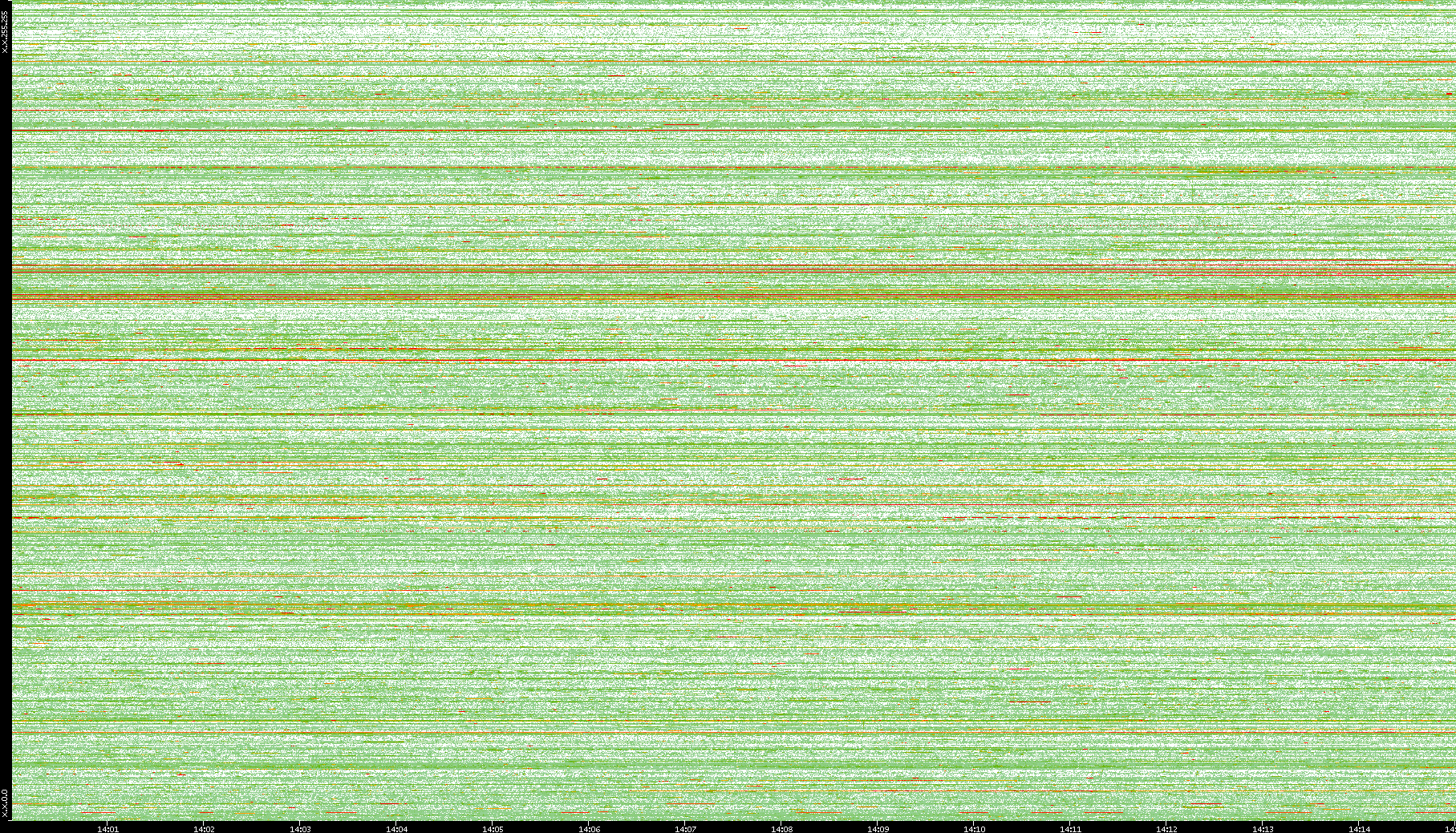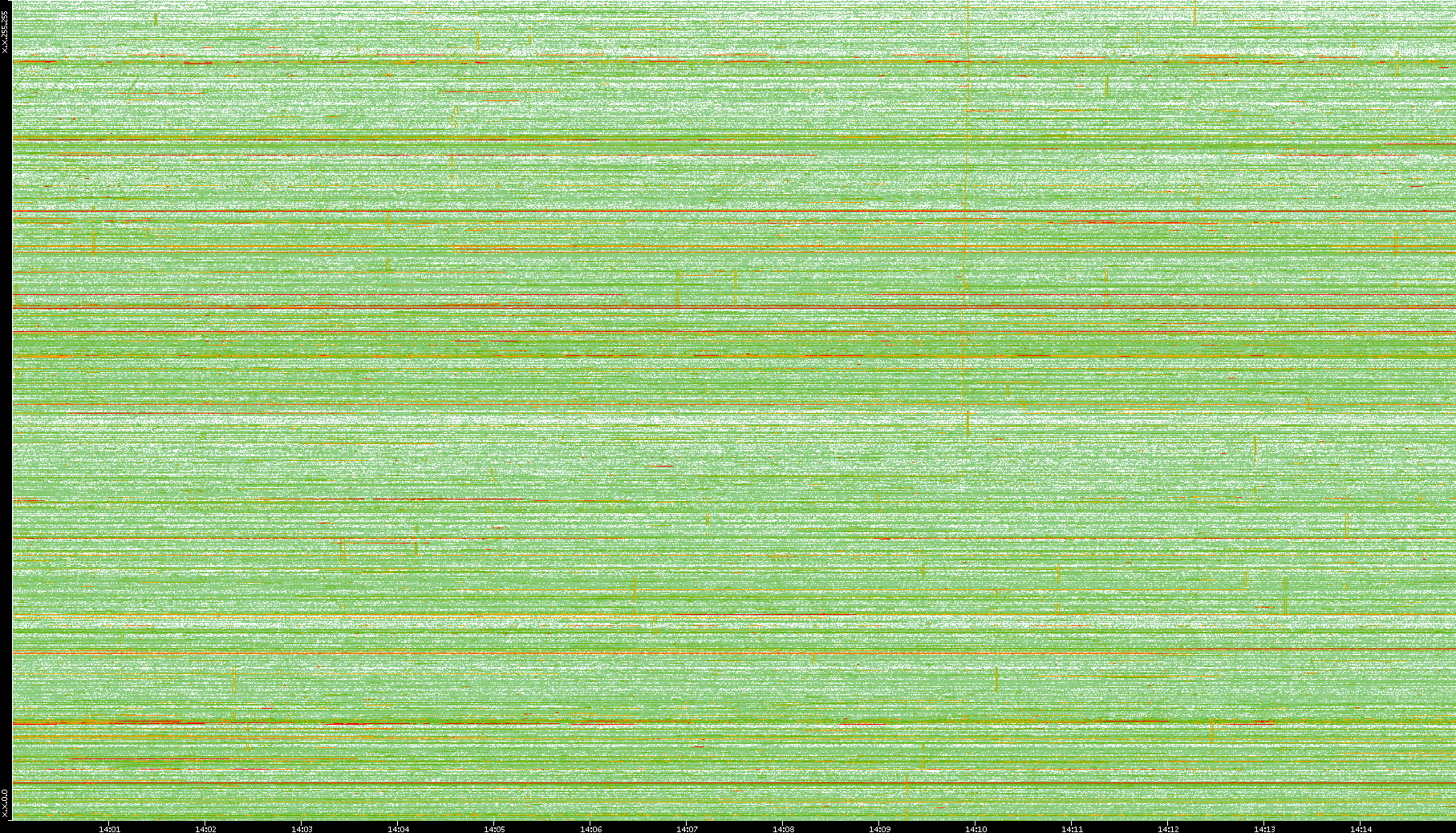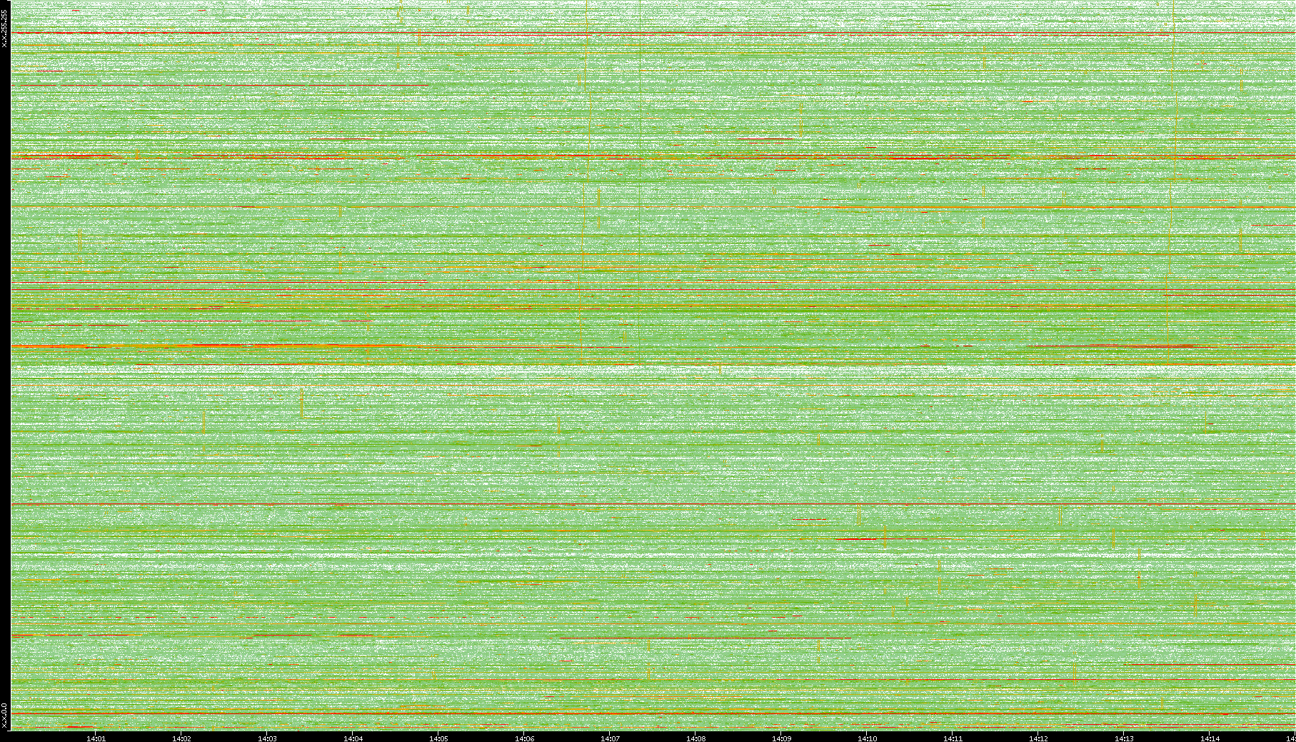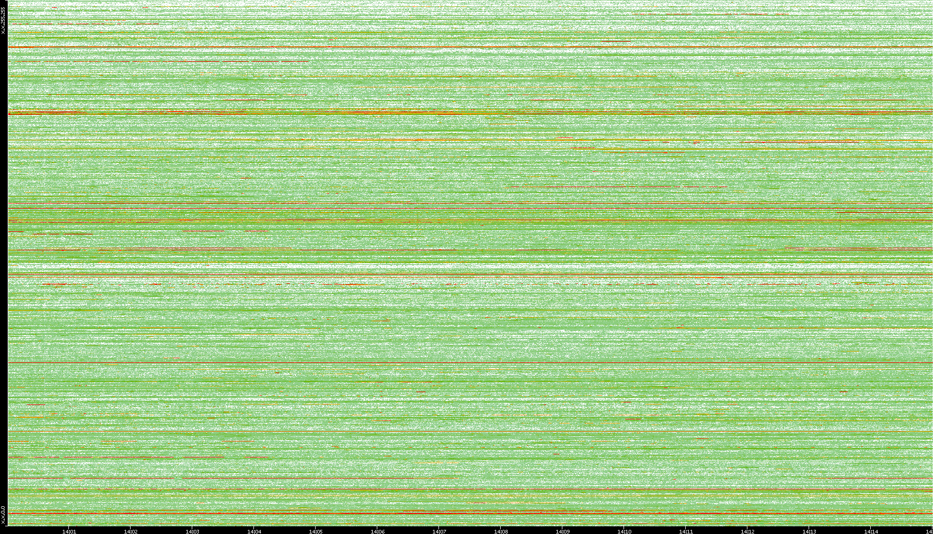 | Date | Dest. IP vs. Time | Dest. Port vs. Time | Src. IP vs. Time | Src. Port vs. Time | Nb. of Packets vs. Time | Throughput vs. Time | Average Packet Size vs. Time | Entropy of Port vs. Time |