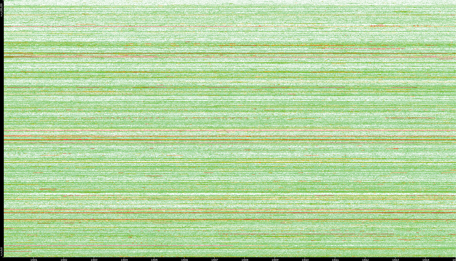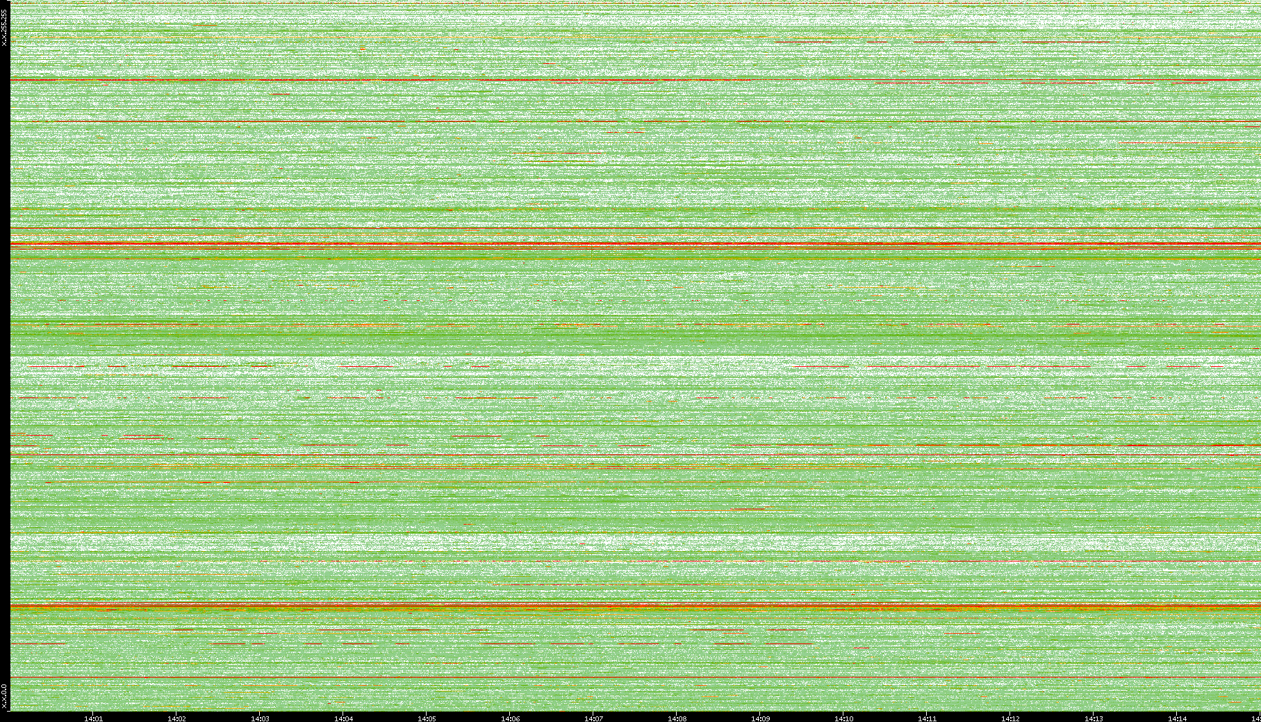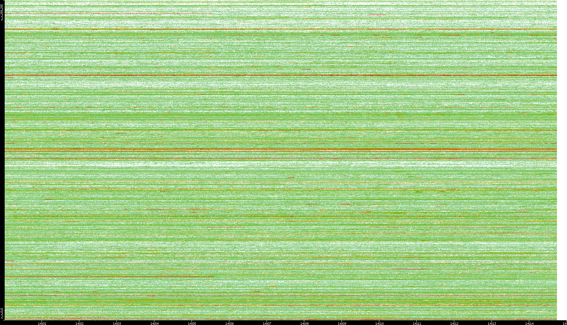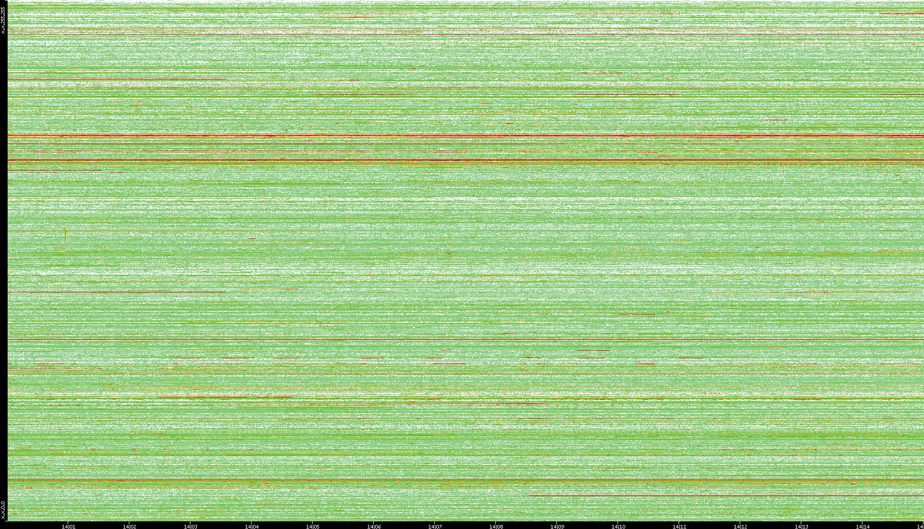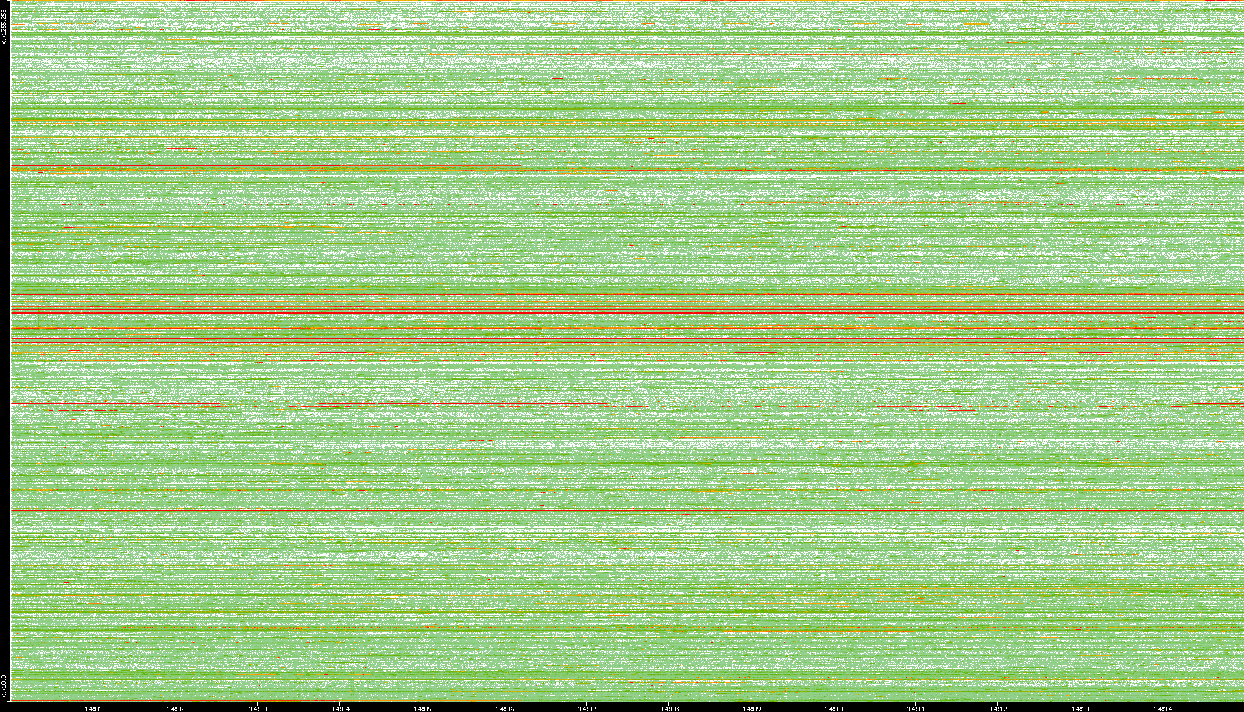 | Date | Dest. IP vs. Time | Dest. Port vs. Time | Src. IP vs. Time | Src. Port vs. Time | Nb. of Packets vs. Time | Throughput vs. Time | Average Packet Size vs. Time | Entropy of Port vs. Time |