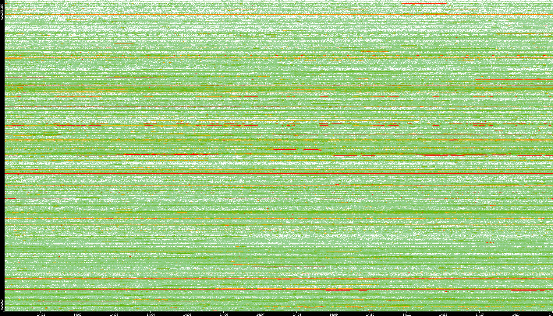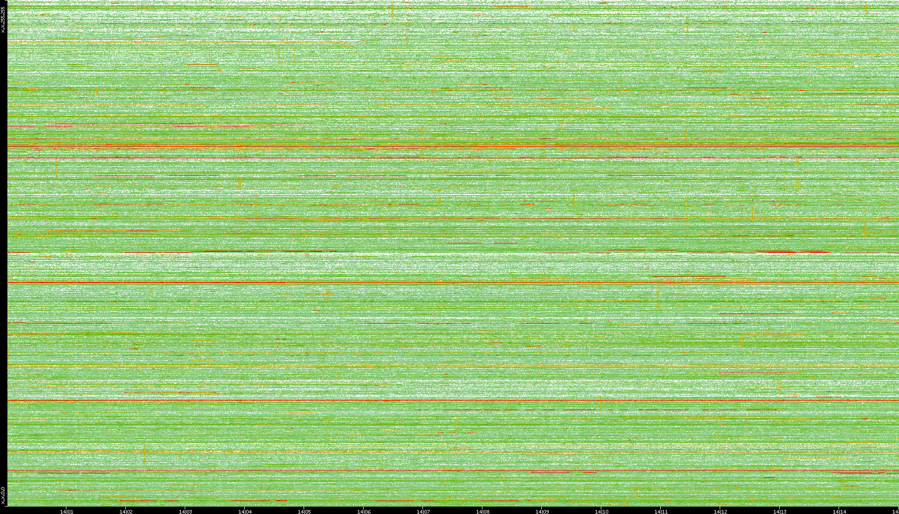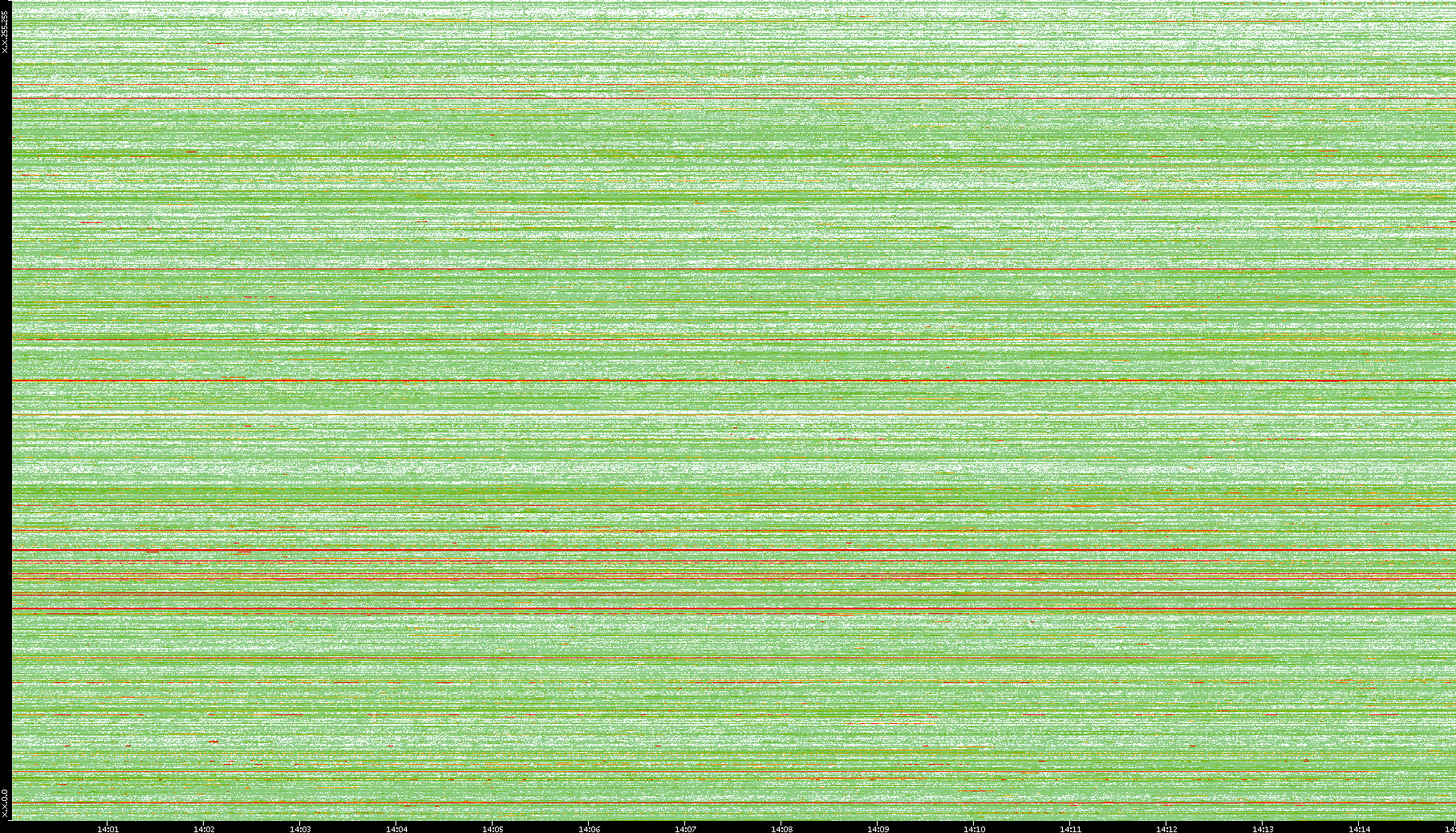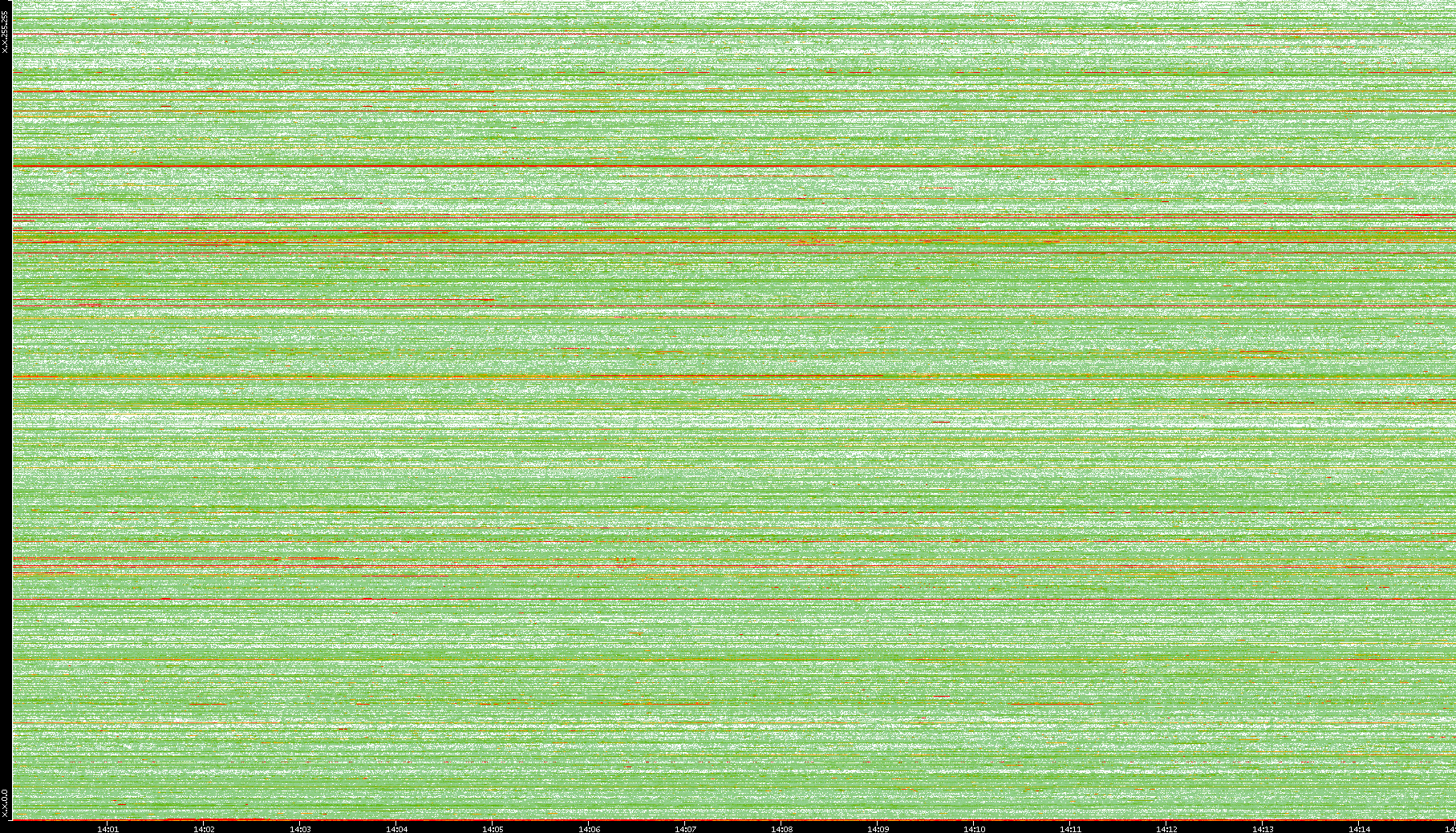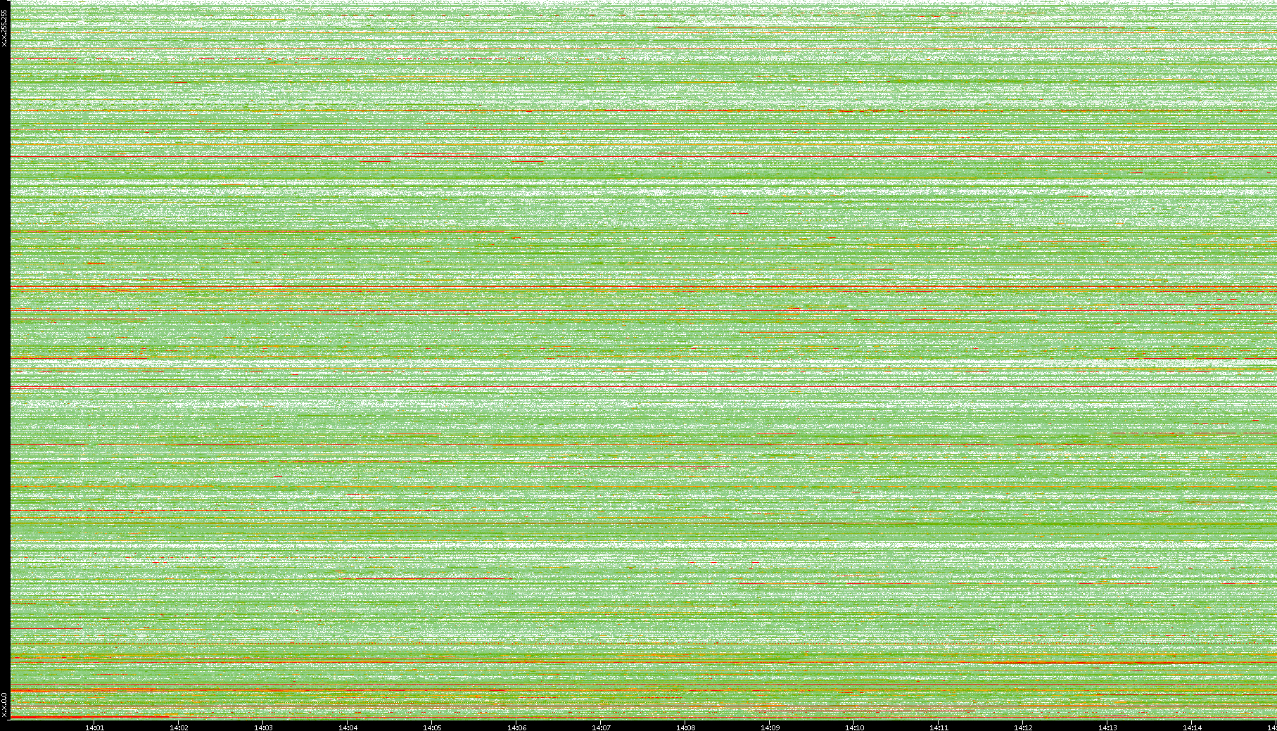 | Date | Dest. IP vs. Time | Dest. Port vs. Time | Src. IP vs. Time | Src. Port vs. Time | Nb. of Packets vs. Time | Throughput vs. Time | Average Packet Size vs. Time | Entropy of Port vs. Time |