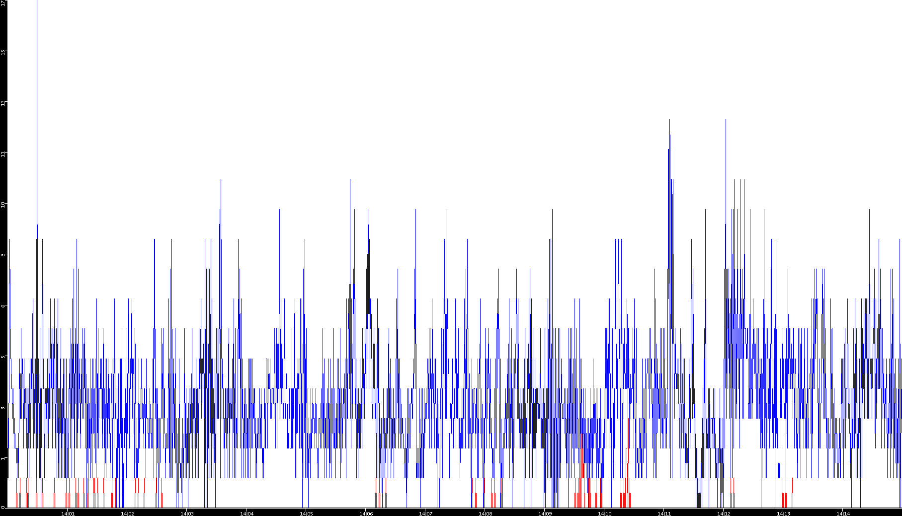 2001/04/14 Dest. IP vs. Time Dest. Port vs. Time Src. IP vs. Time Src. Port vs. Time Nb. of Packets vs. Time Throughput vs. Time Average Packet Size vs. Time Entropy of Port vs. Time