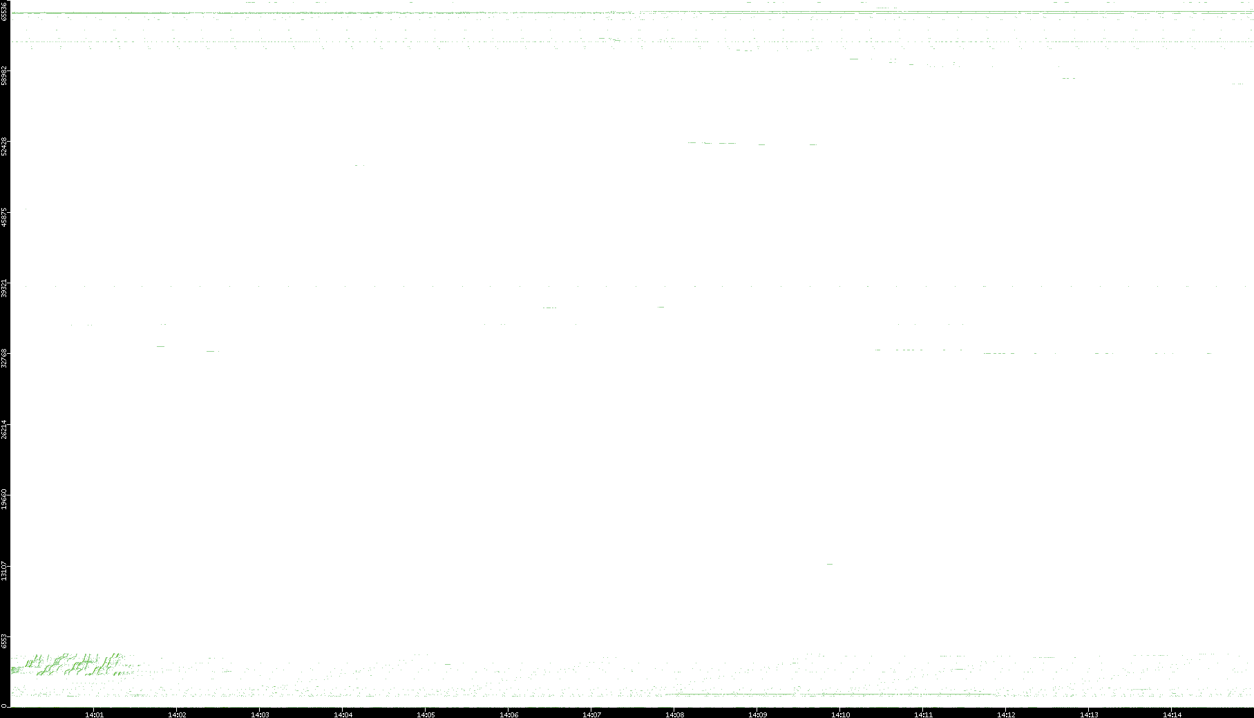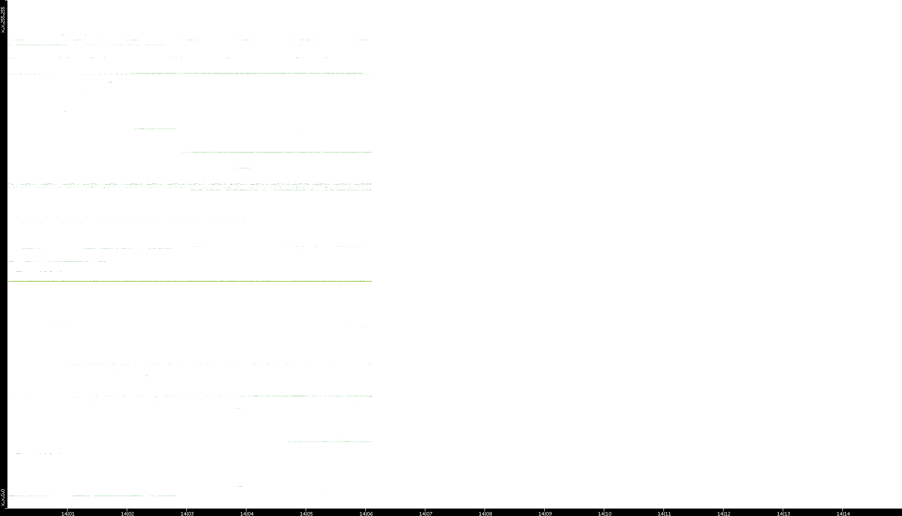 2002/02/14 Dest. IP vs. Time Dest. Port vs. Time Src. IP vs. Time Src. Port vs. Time Nb. of Packets vs. Time Throughput vs. Time Average Packet Size vs. Time Entropy of Port vs. Time
