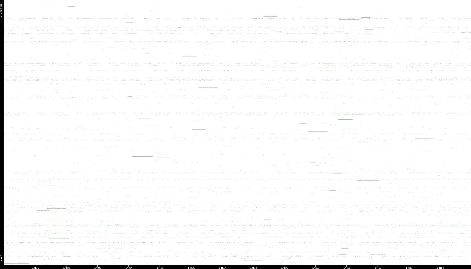 2005/02/13 Dest. IP vs. Time Dest. Port vs. Time Src. IP vs. Time Src. Port vs. Time Nb. of Packets vs. Time Throughput vs. Time Average Packet Size vs. Time Entropy of Port vs. Time