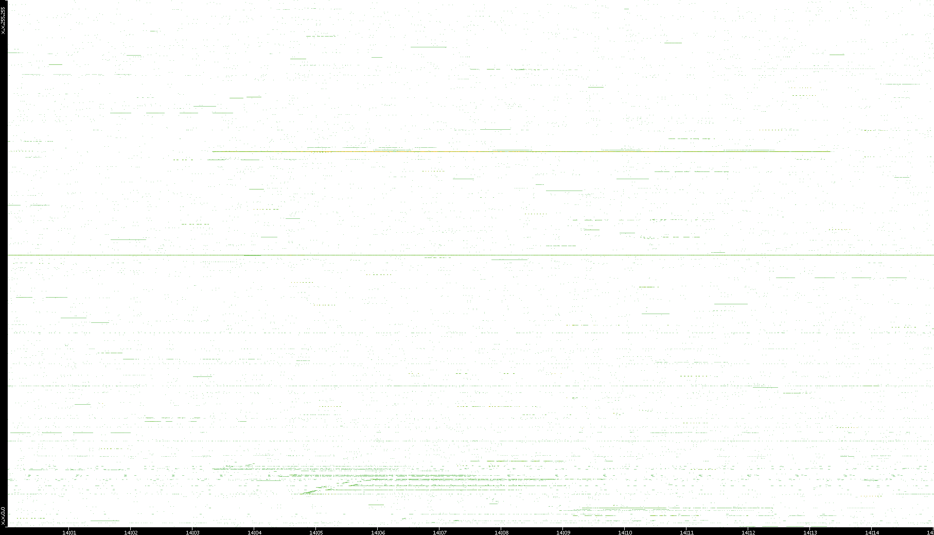 2006/02/16 Dest. IP vs. Time Dest. Port vs. Time Src. IP vs. Time Src. Port vs. Time Nb. of Packets vs. Time Throughput vs. Time Average Packet Size vs. Time Entropy of Port vs. Time