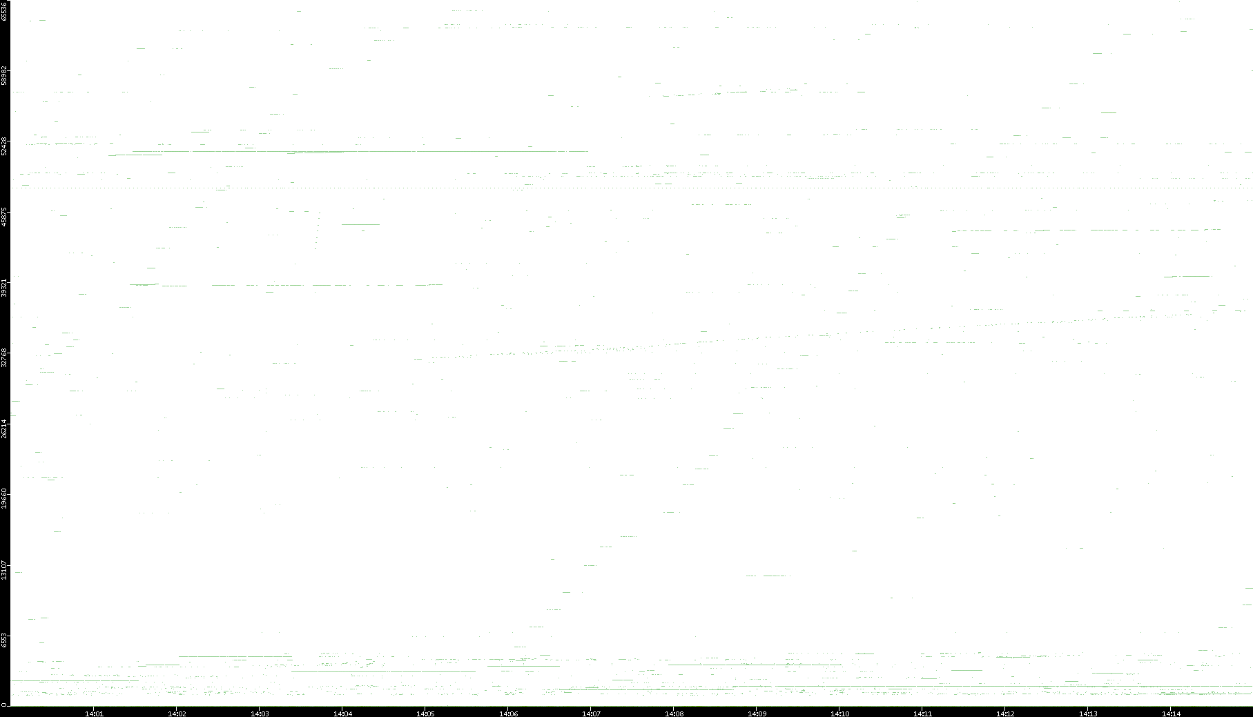2008/11/14 Dest. IP vs. Time Dest. Port vs. Time Src. IP vs. Time Src. Port vs. Time Nb. of Packets vs. Time Throughput vs. Time Average Packet Size vs. Time Entropy of Port vs. Time