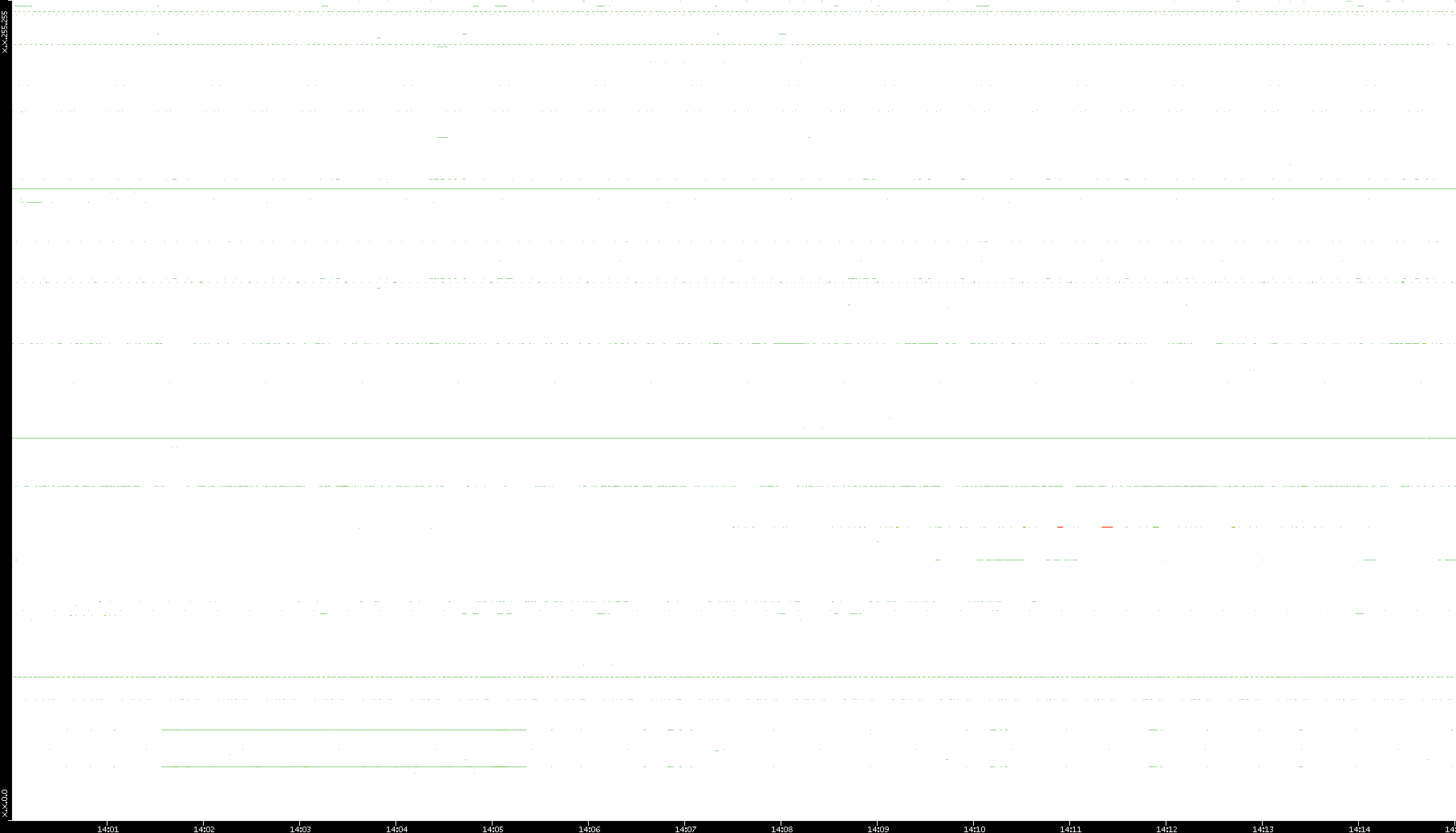 2009/05/14 Dest. IP vs. Time Dest. Port vs. Time Src. IP vs. Time Src. Port vs. Time Nb. of Packets vs. Time Throughput vs. Time Average Packet Size vs. Time Entropy of Port vs. Time