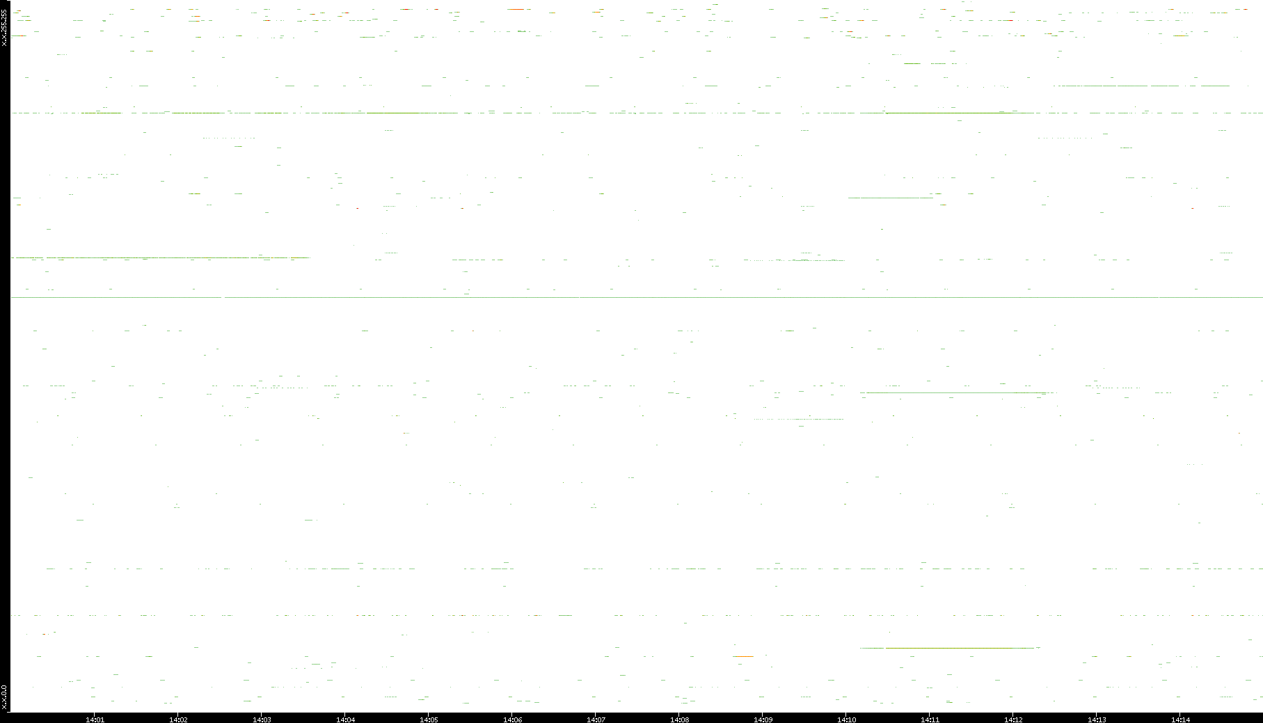 2010/03/14 Dest. IP vs. Time Dest. Port vs. Time Src. IP vs. Time Src. Port vs. Time Nb. of Packets vs. Time Throughput vs. Time Average Packet Size vs. Time Entropy of Port vs. Time