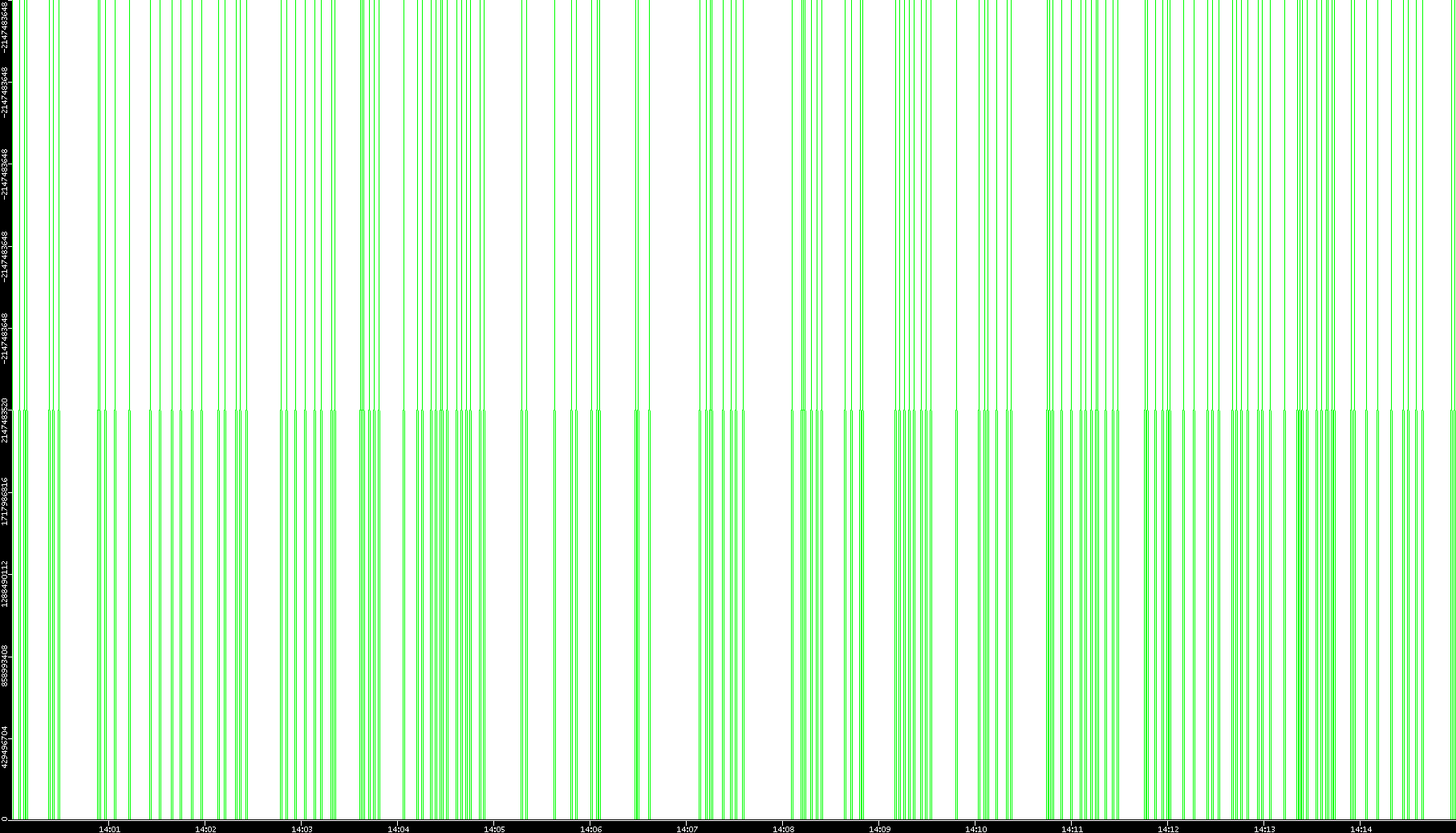2010/04/14 Dest. IP vs. Time Dest. Port vs. Time Src. IP vs. Time Src. Port vs. Time Nb. of Packets vs. Time Throughput vs. Time Average Packet Size vs. Time Entropy of Port vs. Time